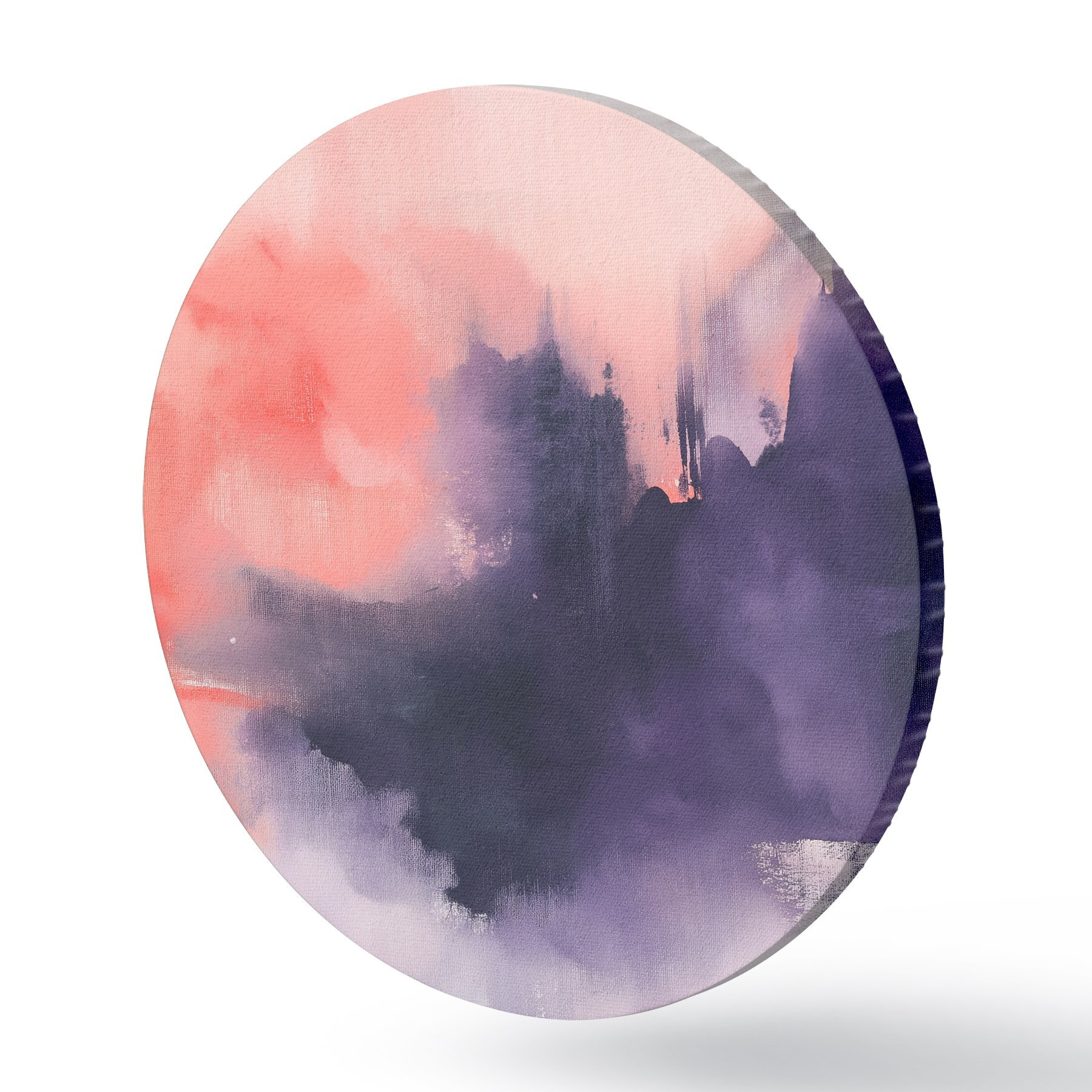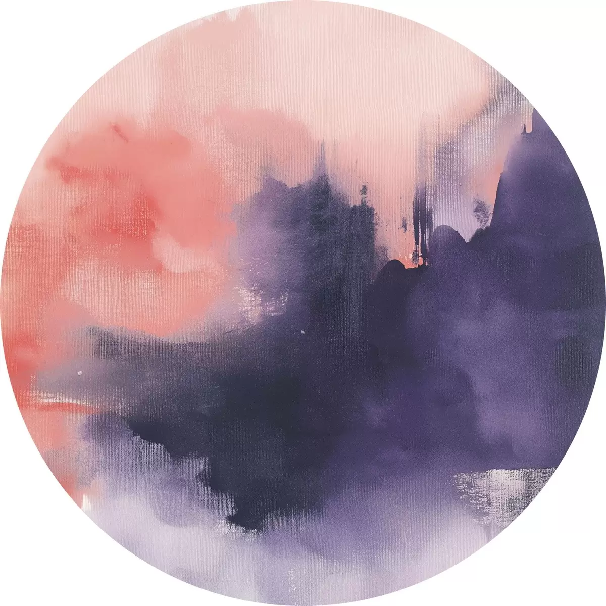 Runde Gemälde Abstraktion im Acrylstil, Pinselstriche, lila und rosa r44507