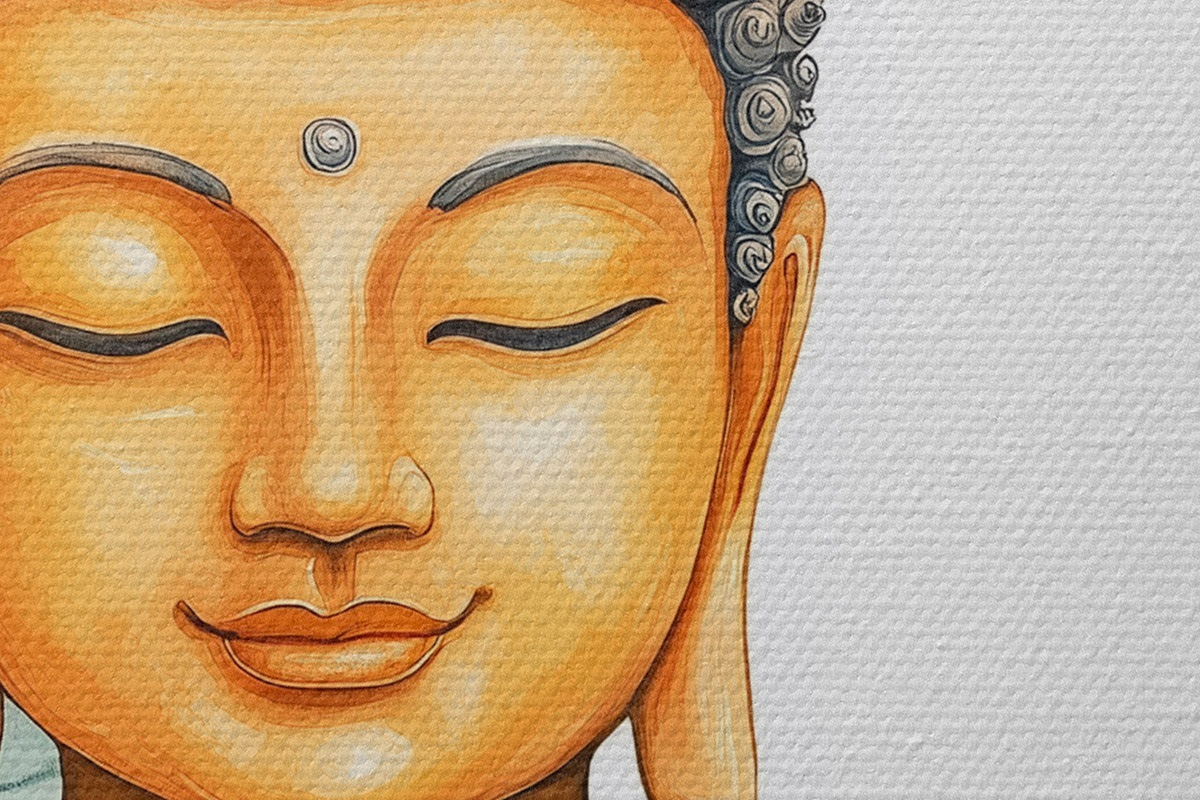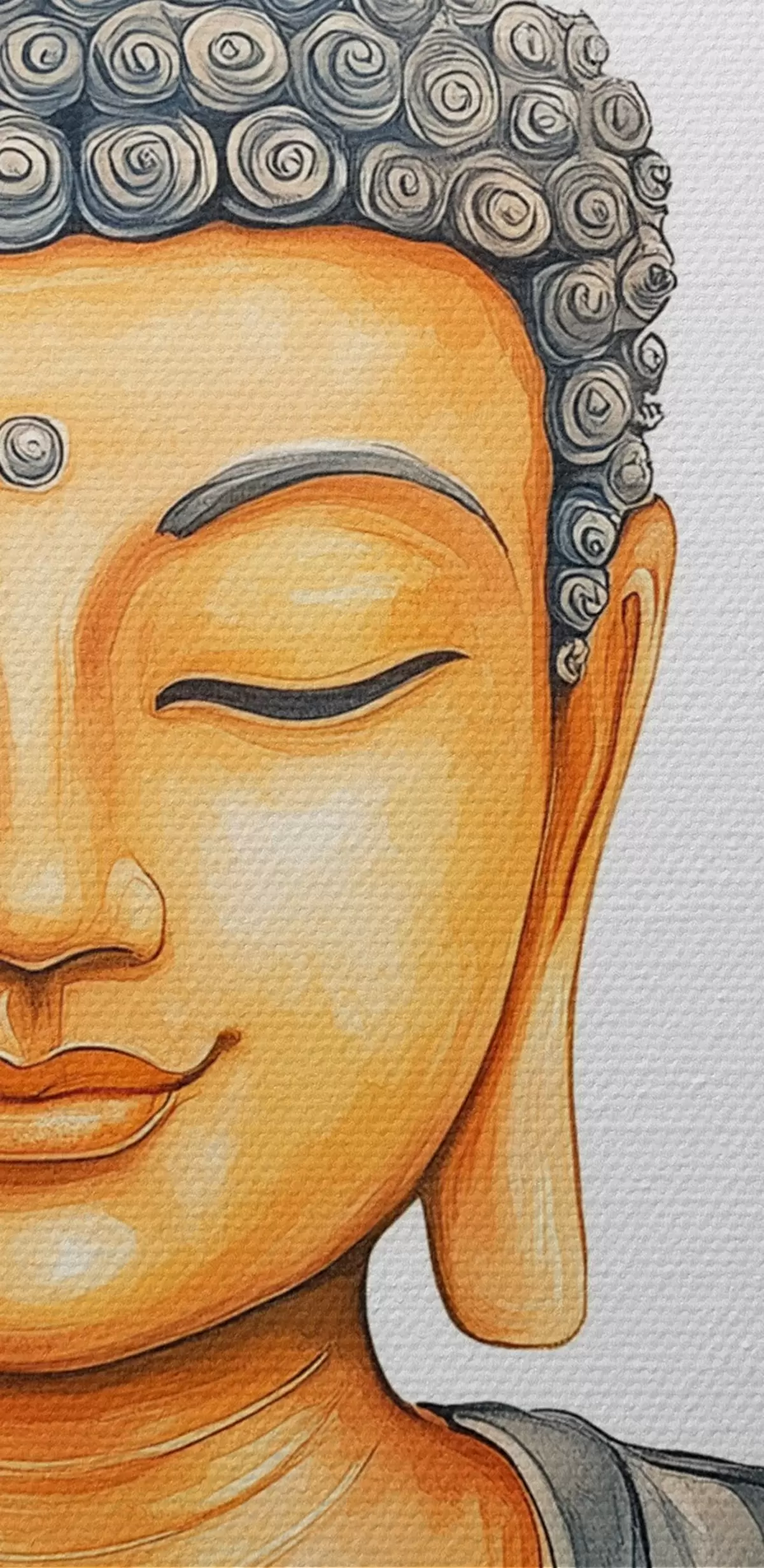 Bild Buddha umgeben von orangefarbenen Blumen, Aquarellstil Nr r44508