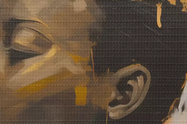 Um die Leinwand auf Keilrahmen zu spannen, ohne das Bild zu beschädigen, verwenden wir ein gespiegeltes Bild.