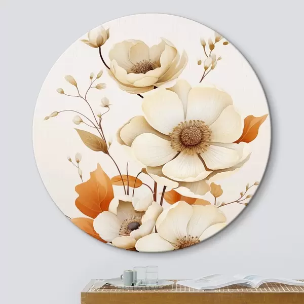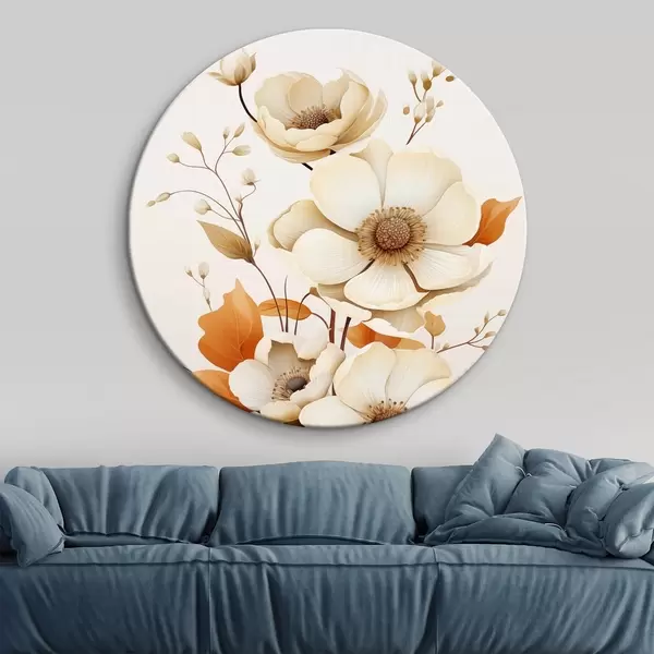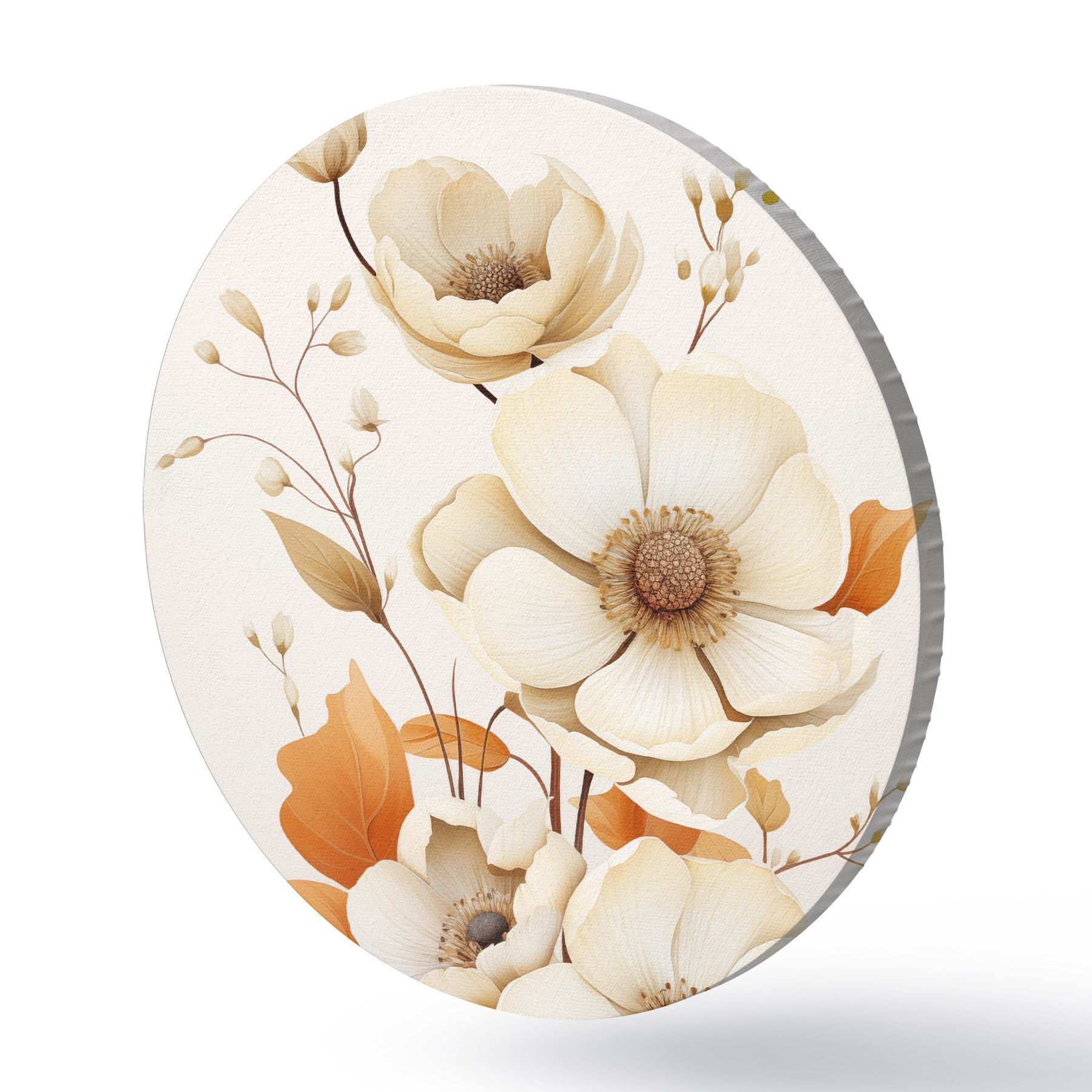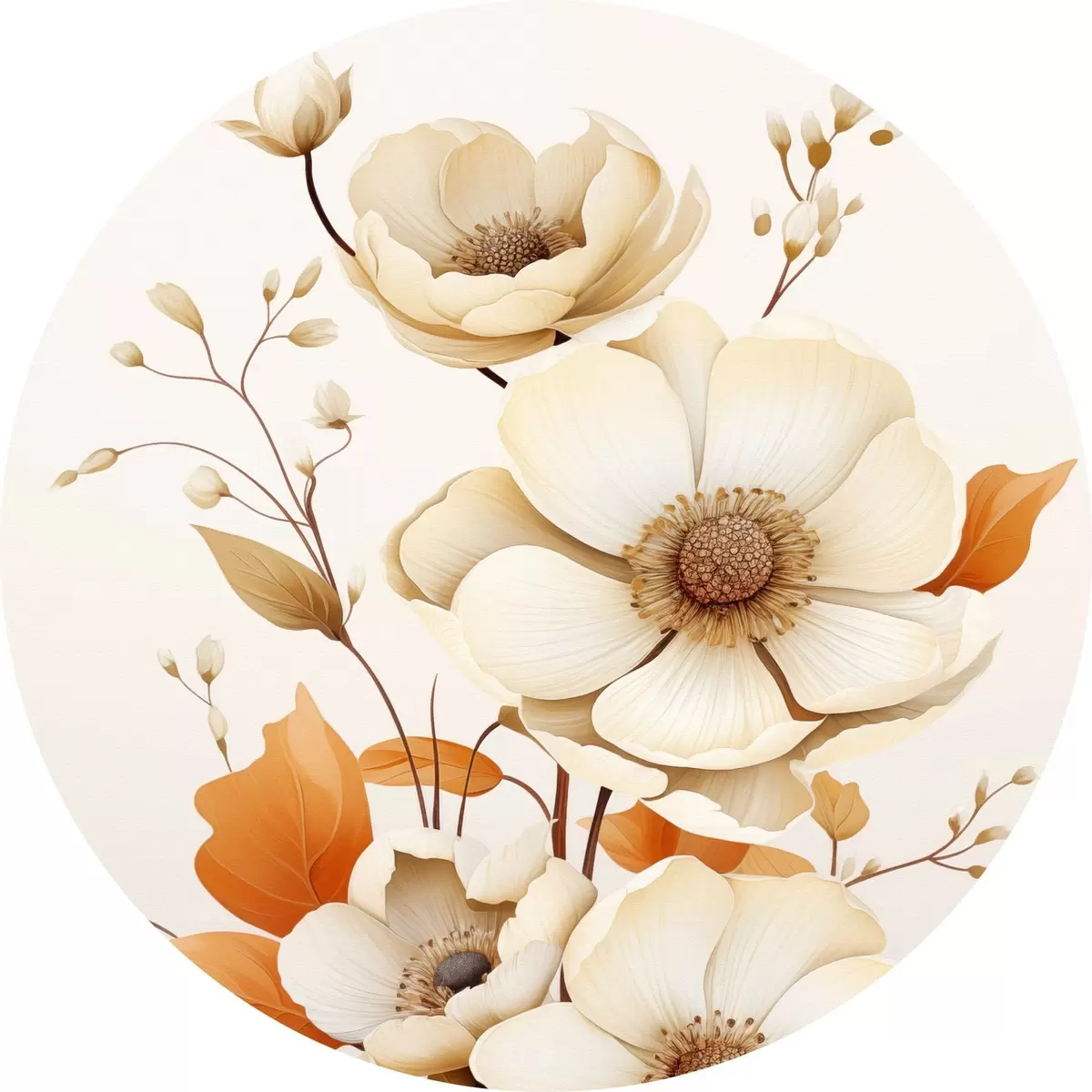 Runde Gemälde Helle Blumen auf beigem Hintergrund r44549