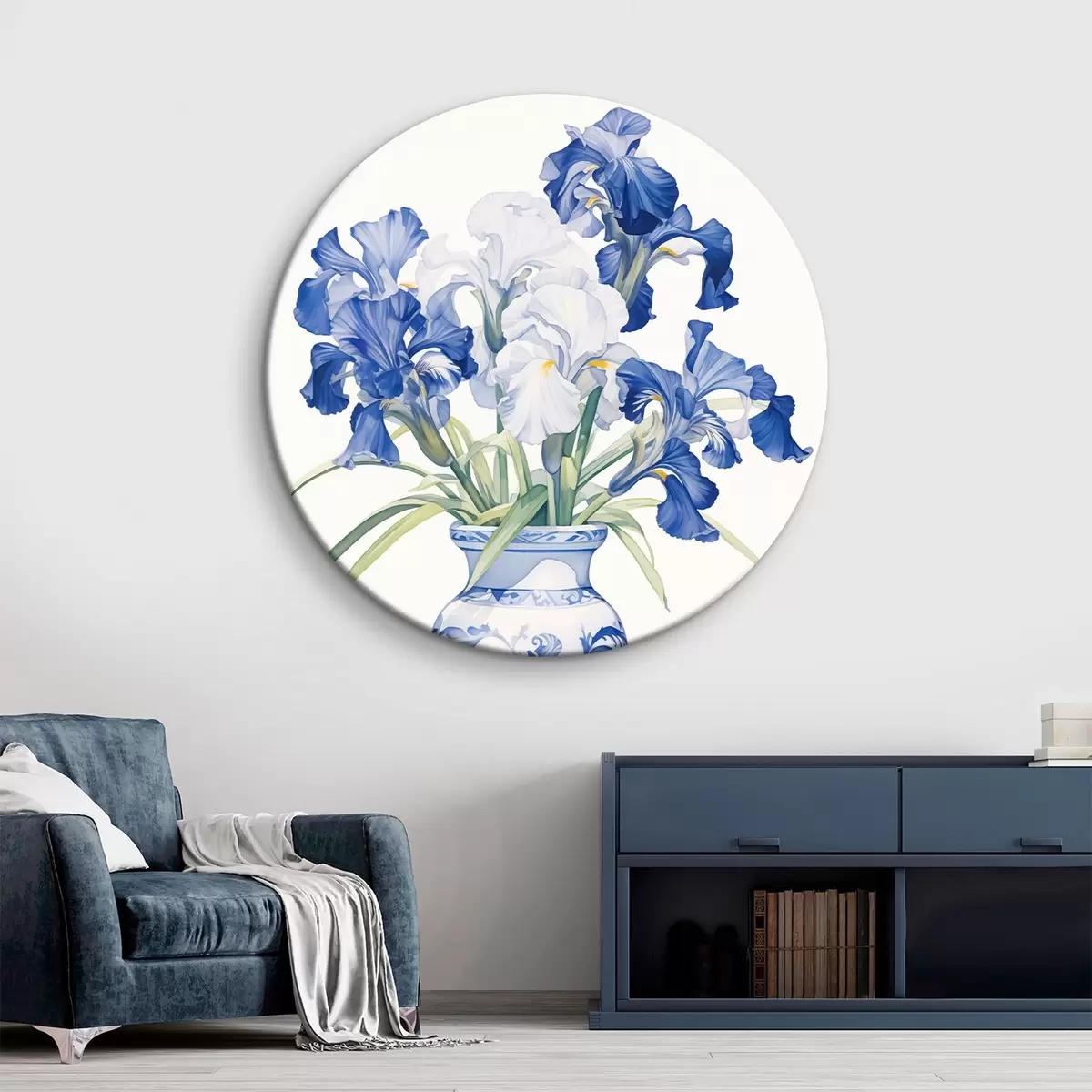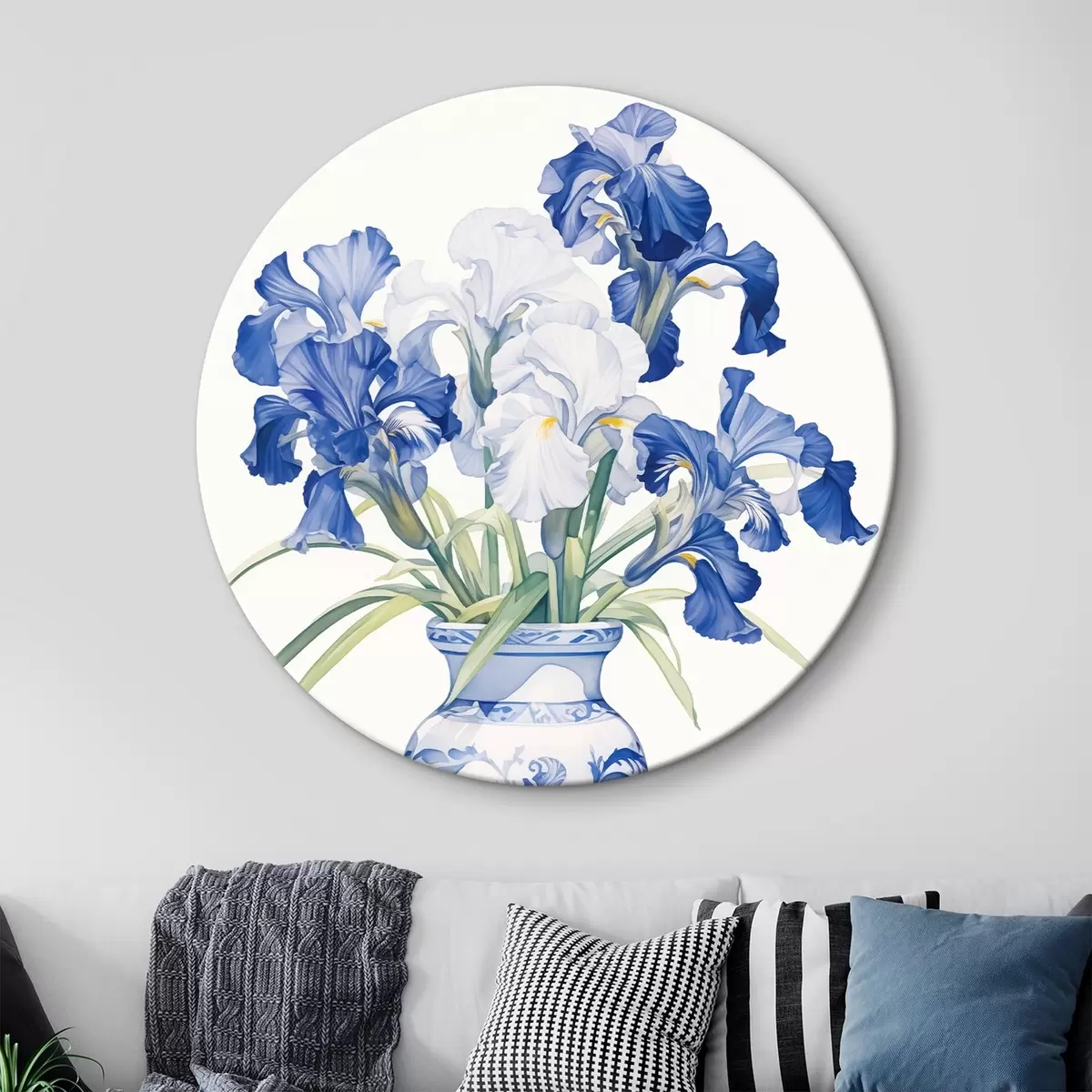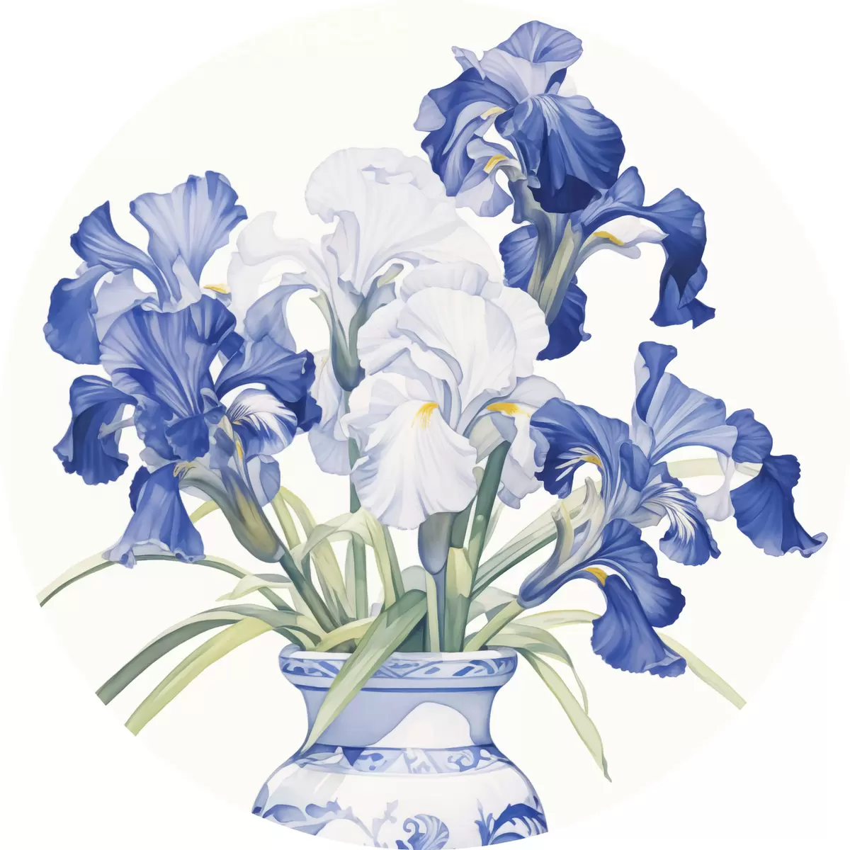 Runde Gemälde Schwertlilien in einer Vase r44596