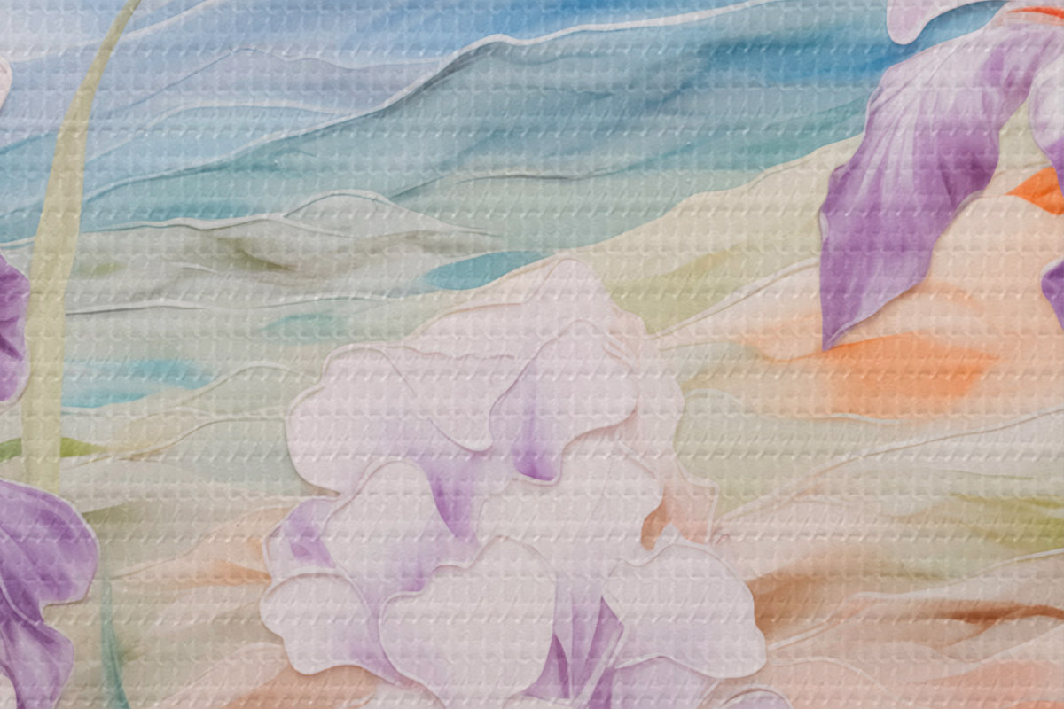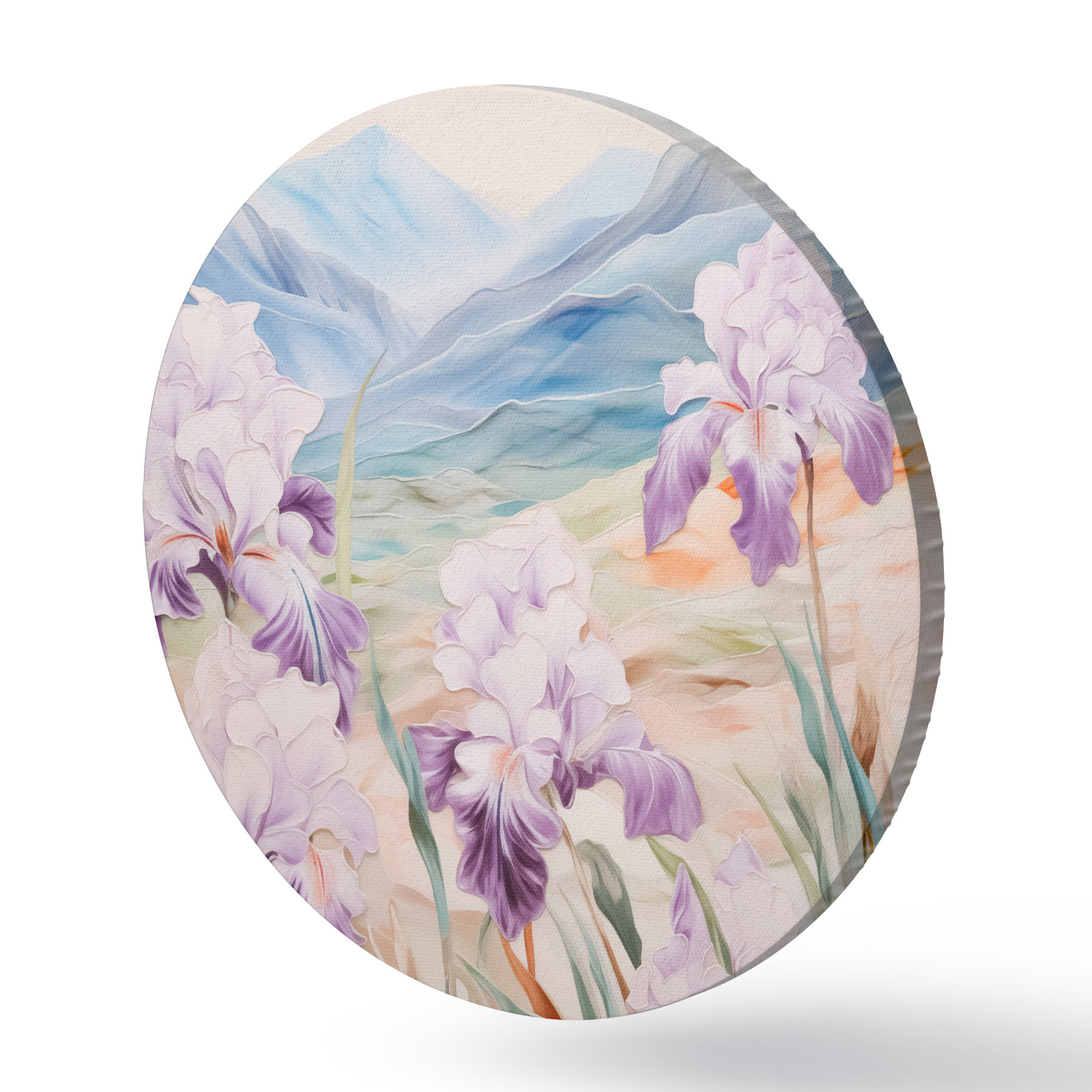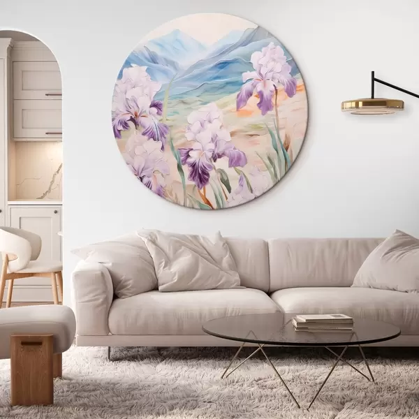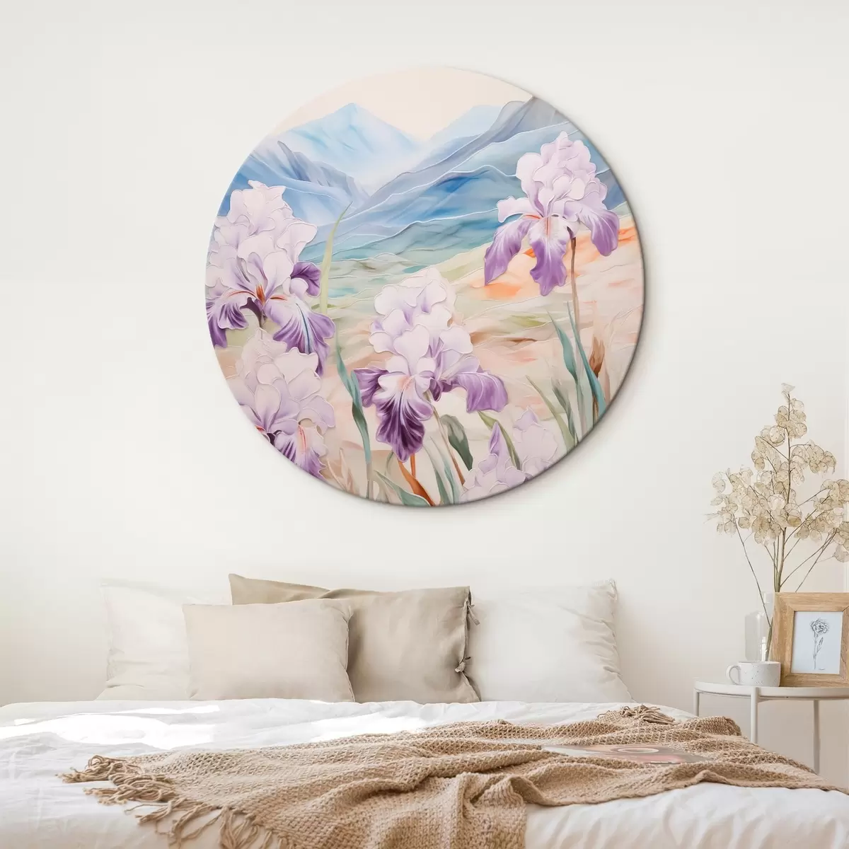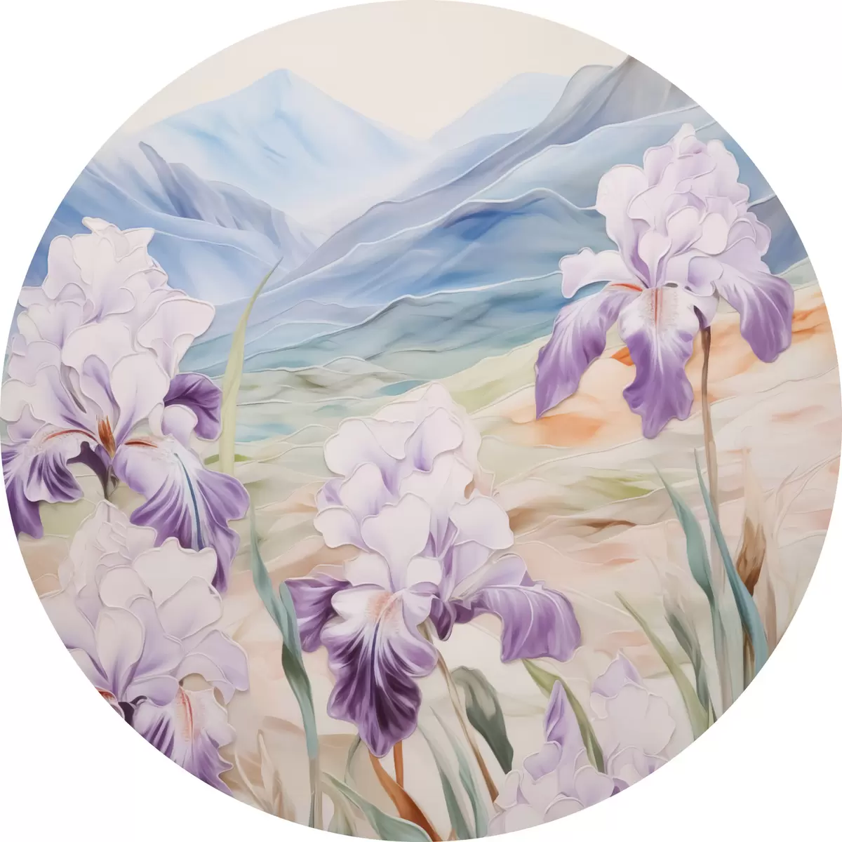 Runde Gemälde Schwertlilien vor der Kulisse der Berge r44599