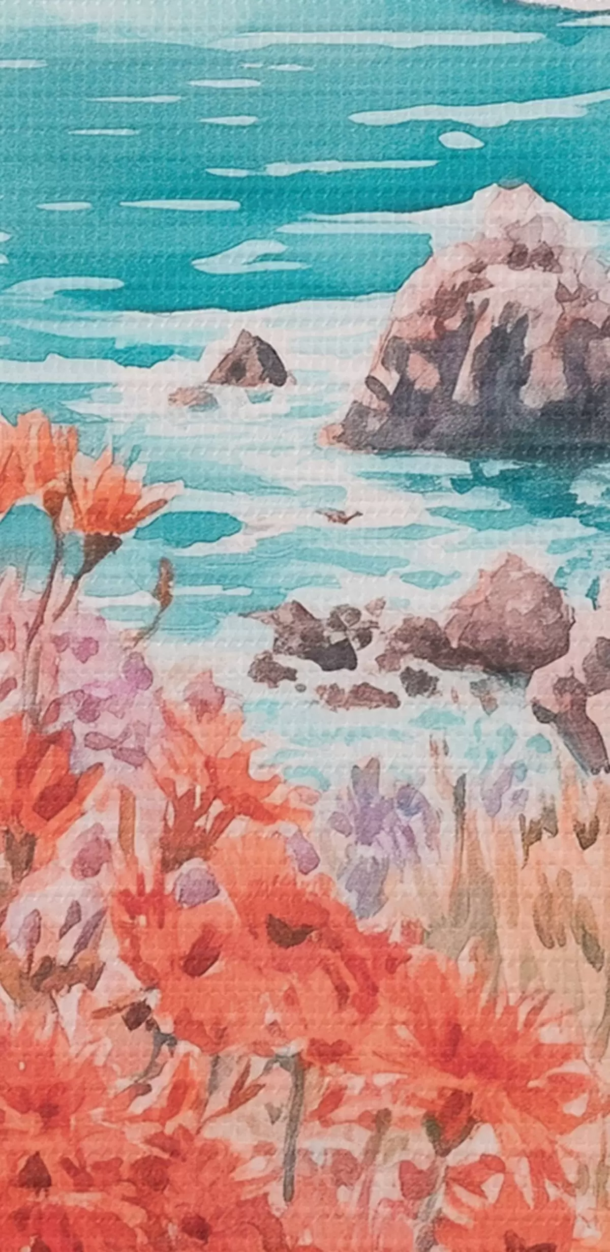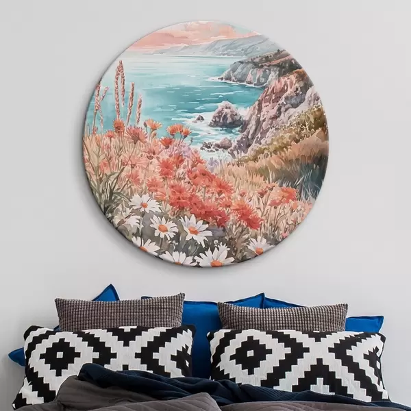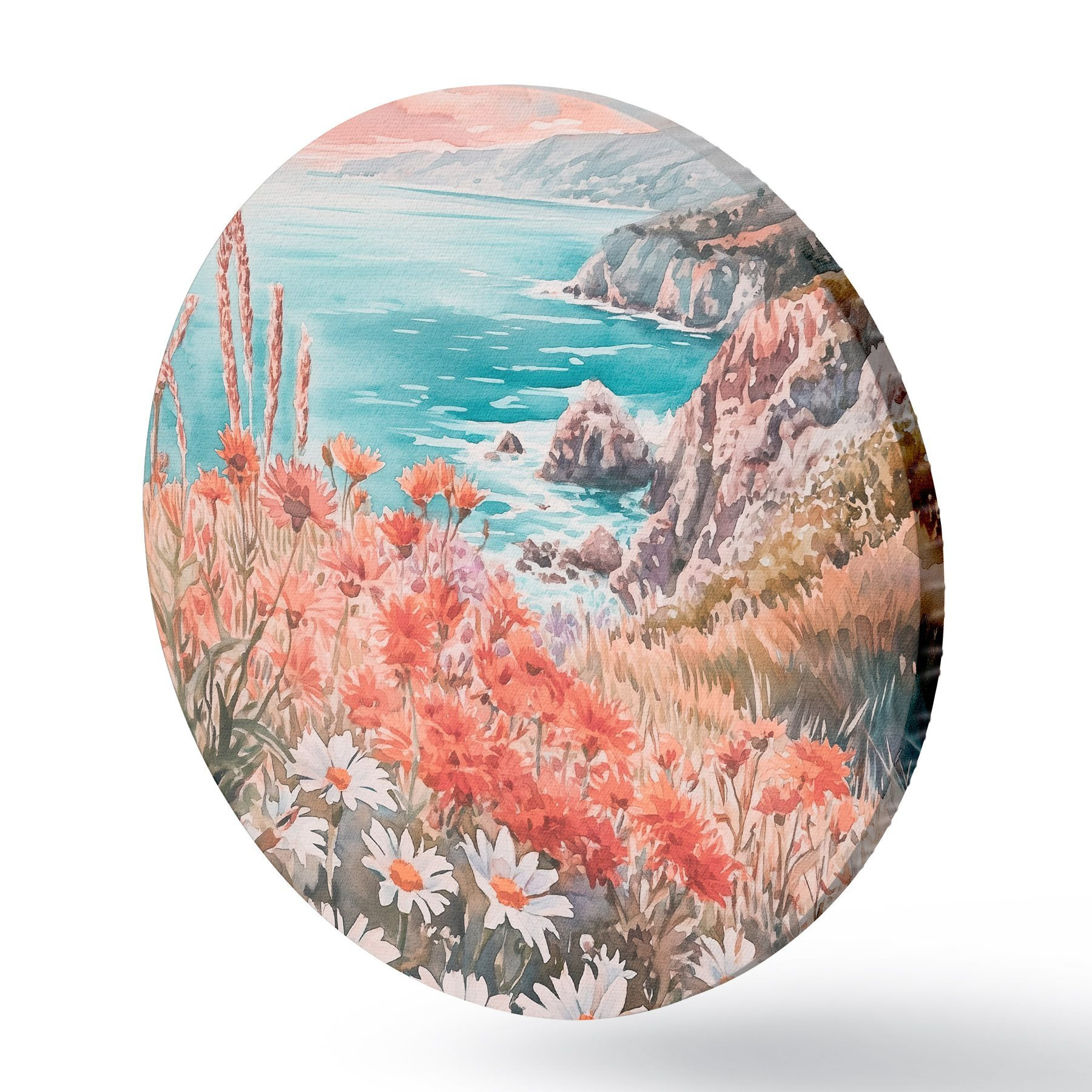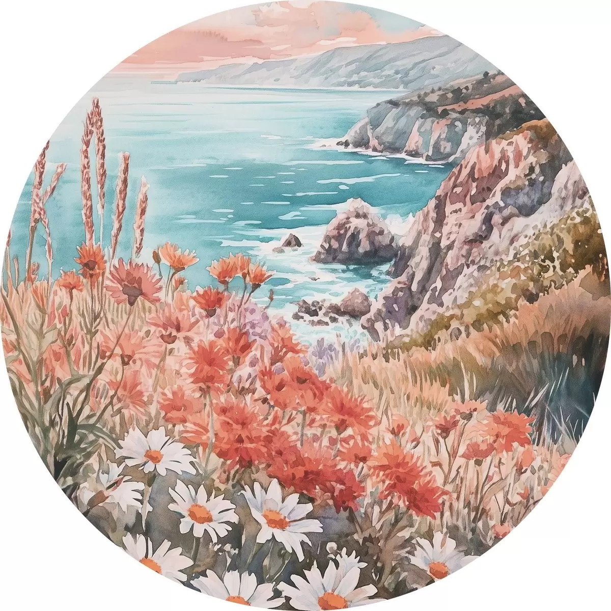 Runde Gemälde Portugal Ozean Küste auf den Sonnenuntergang, Wiese Blumen r44612