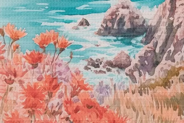 Bild Portugal Ozean Küste auf den Sonnenuntergang, Wiese Blumen Nr r44612