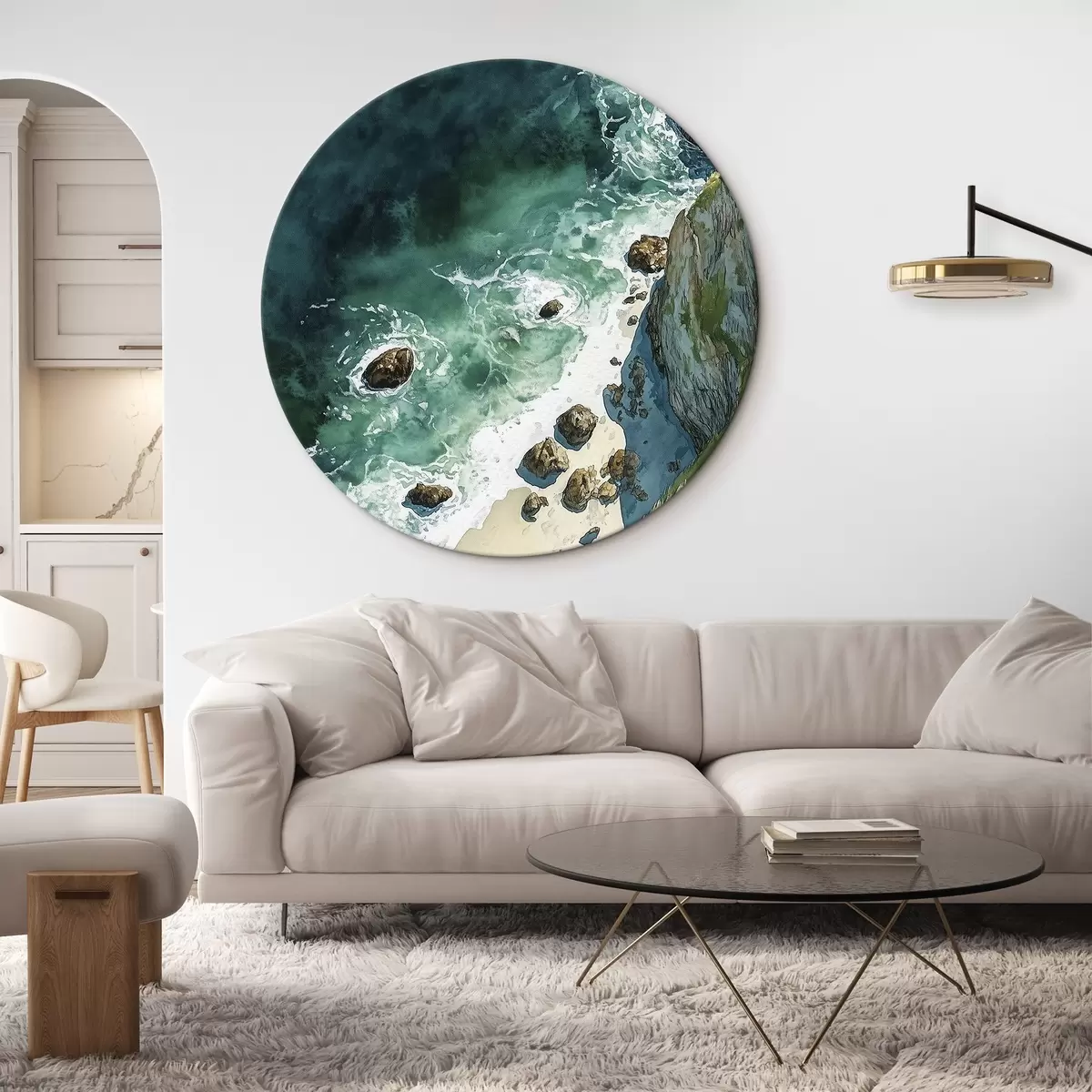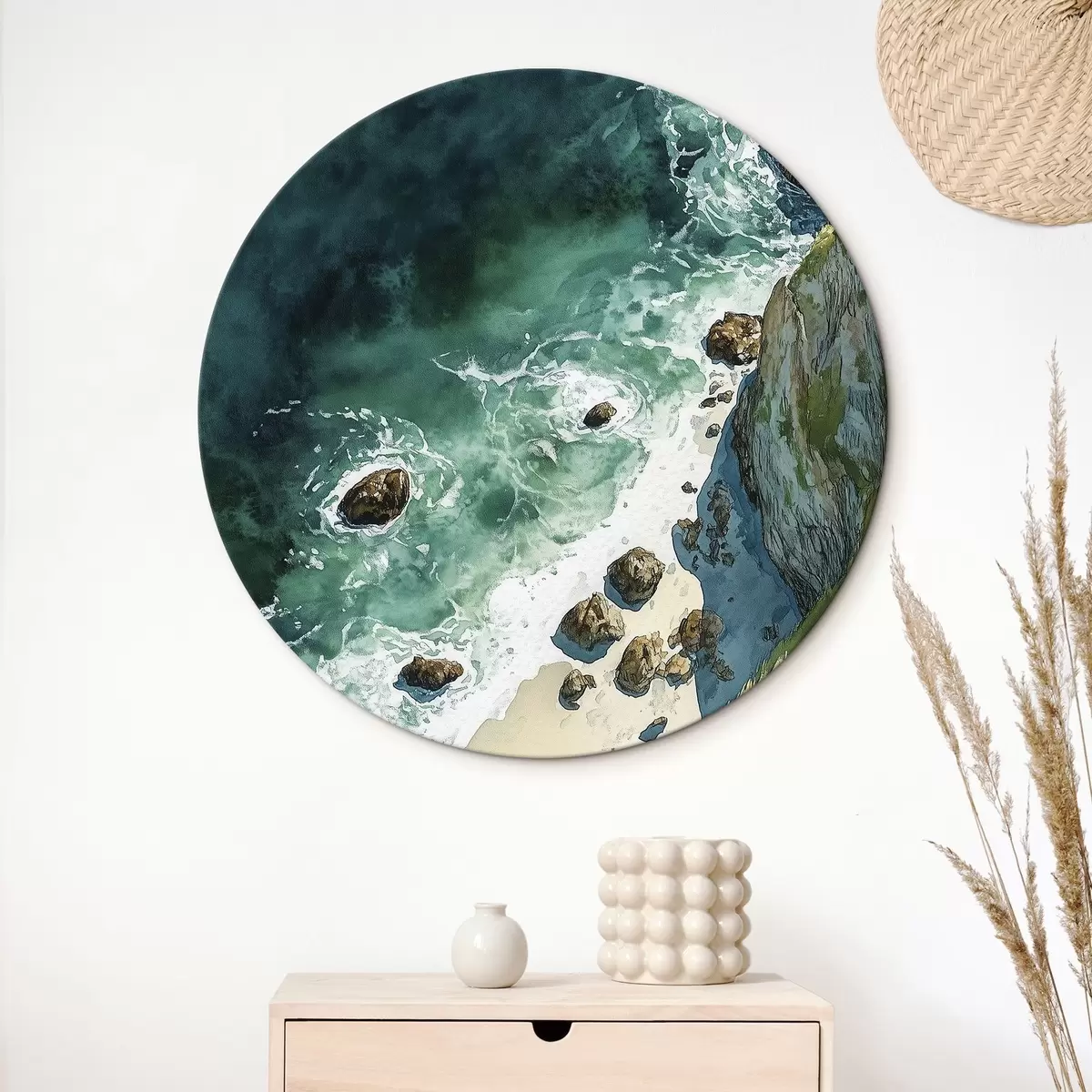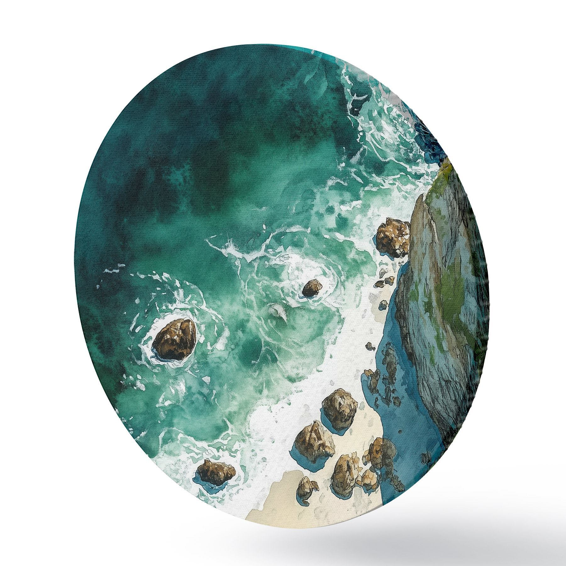 Runde Gemälde Aquamarinblaues Wasser, Ozean, Felsklippen, Portugal r44617