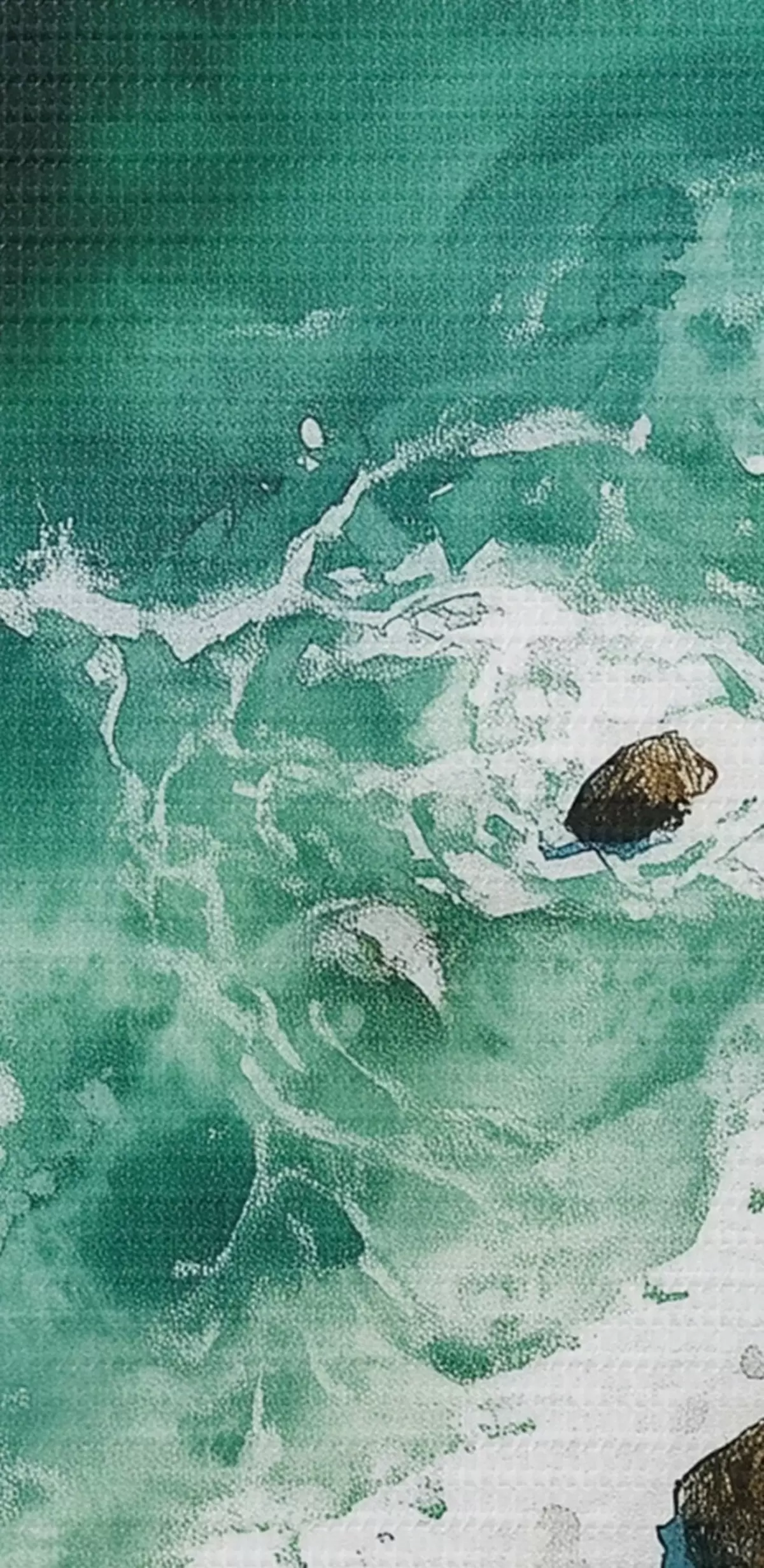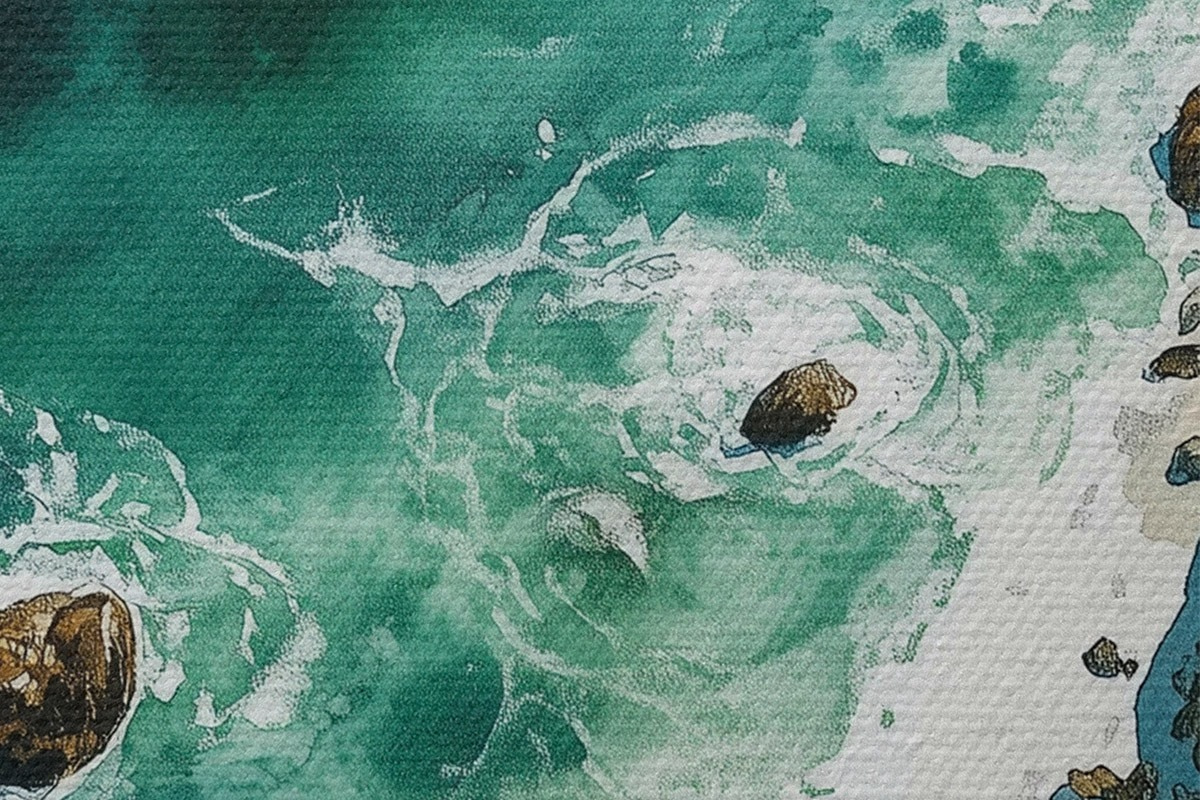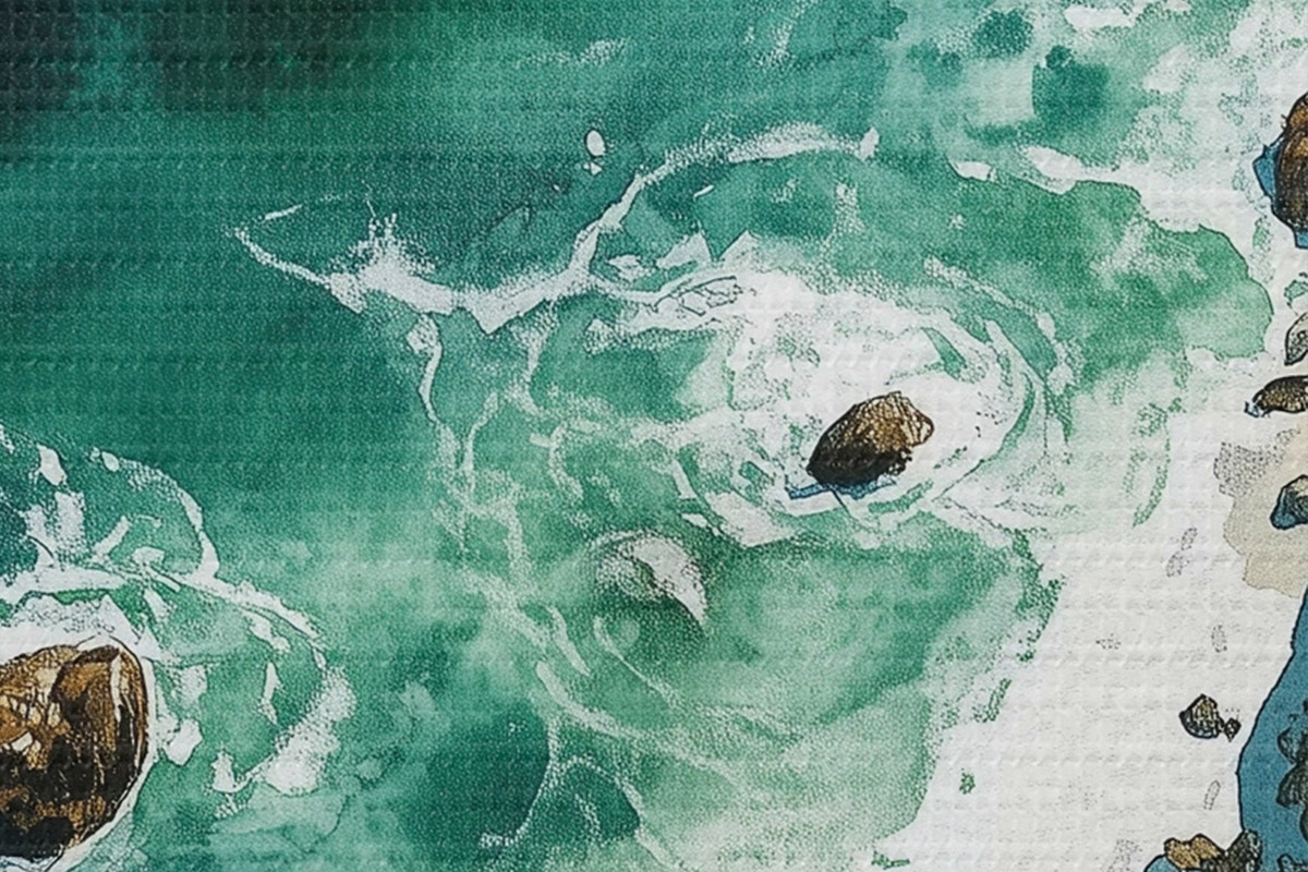 Runde Gemälde Aquamarinblaues Wasser, Ozean, Felsklippen, Portugal r44617