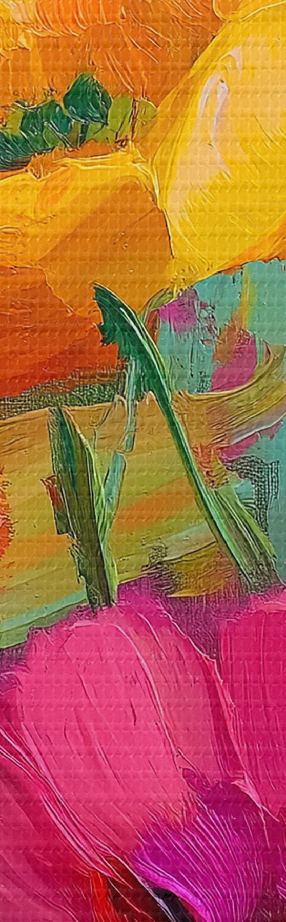 Drei Materialtypen stehen zur Verfügung: Economic Canvas - ein dichtes und haltbares Material für den Digitaldruck, identisch mit Malerleinwand, wasserfeste Oberfläche, realistische Wiedergabe von Details, mittelkörniges Material. Premium Canvas - die Textur ähnelt der einer Malerleinwand (verwobene kleine Fäden). Weiche, detaillierte Wiedergabe des Bildes auf einer matten Oberfläche. Eco-Premium - hochwertiges Gewebe aus 100% Baumwolle. Dank der natürlichen Baumwollfasern ist das Material langlebig und verschleißfest. Hervorragende Farbwiedergabe und Detailtreue.