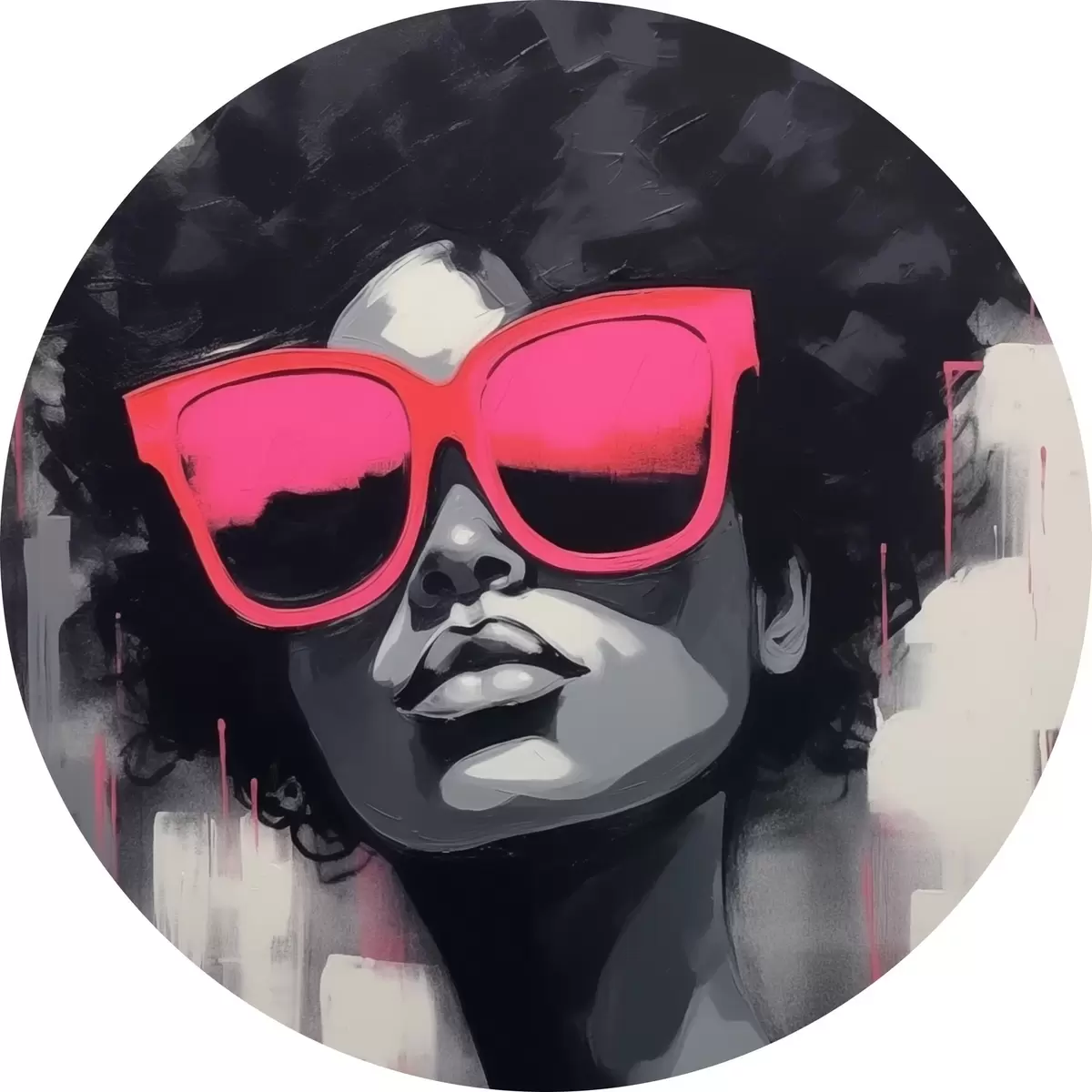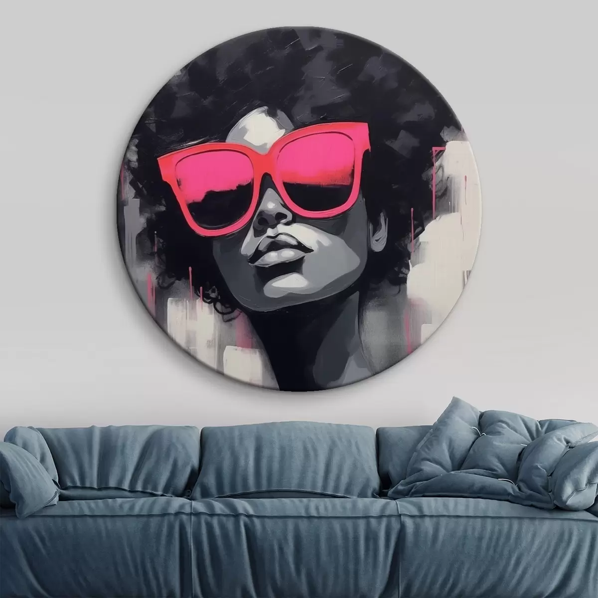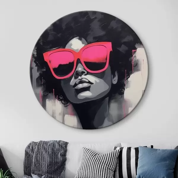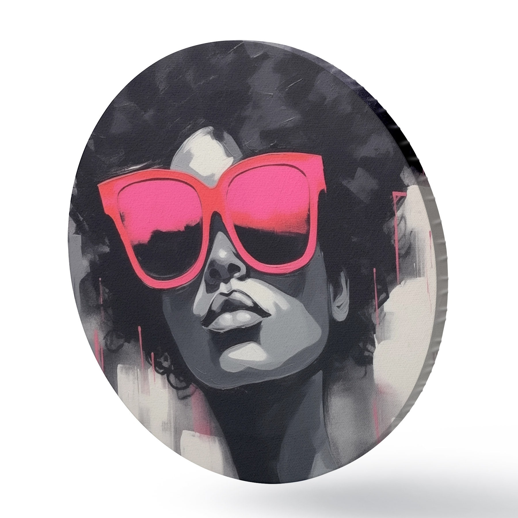 Runde Gemälde Mädchen mit rosa Brille, schwarzer und weißer Stil r44624