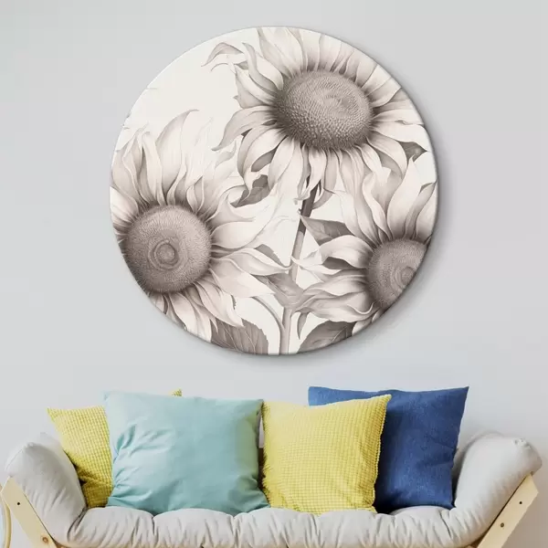 Runde Gemälde Sonnenblumen, grafischer Stil r44626