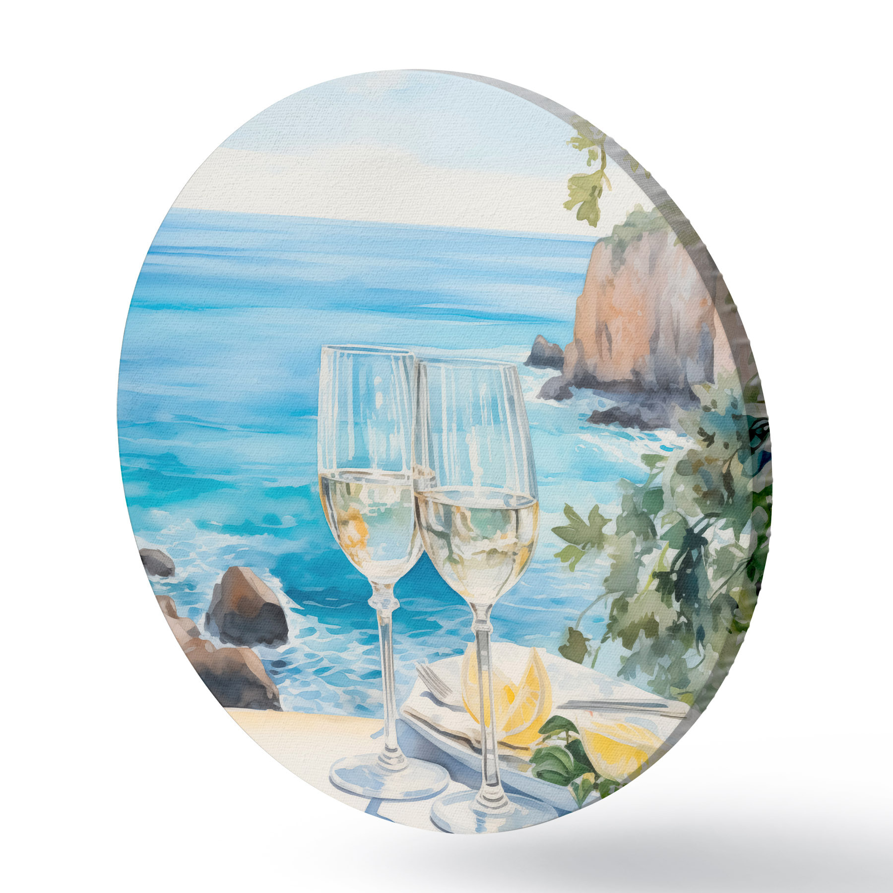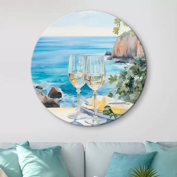 Runde Gemälde Gläser mit Wein am Meer r44644