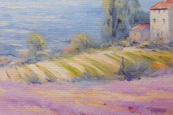 Das feine Fadengeflecht auf dieser Leinwand ähnelt der Oberfläche von professionellen Künstlerleinwänden.