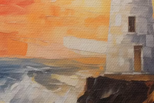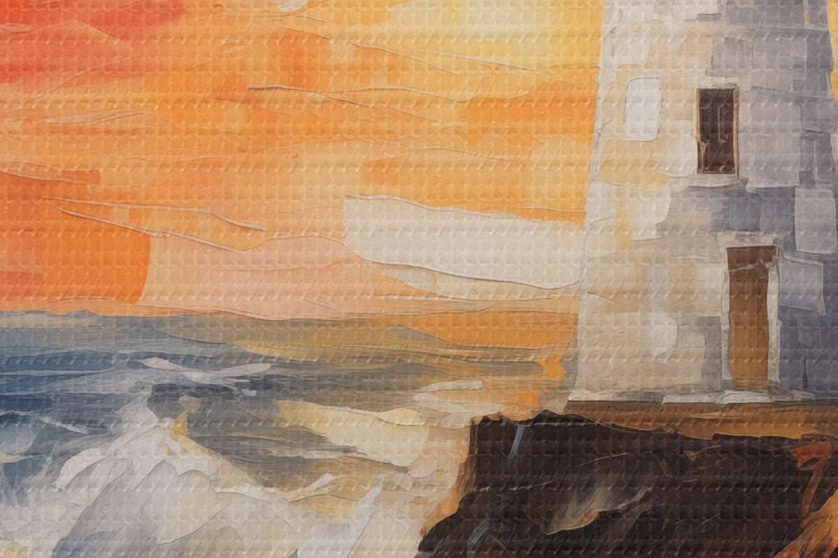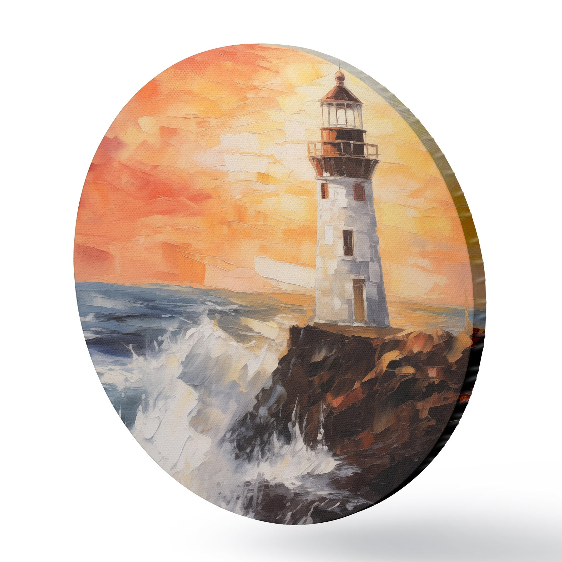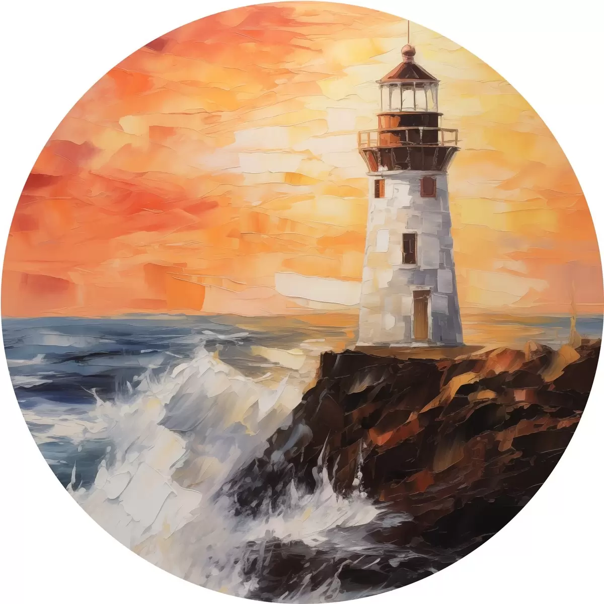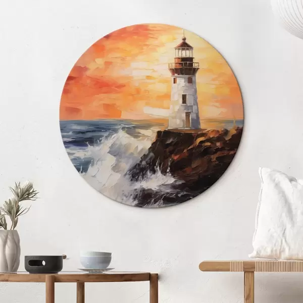 Runde Gemälde Leuchtturm bei Sonnenuntergang r44674
