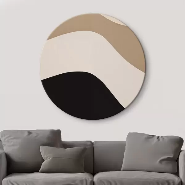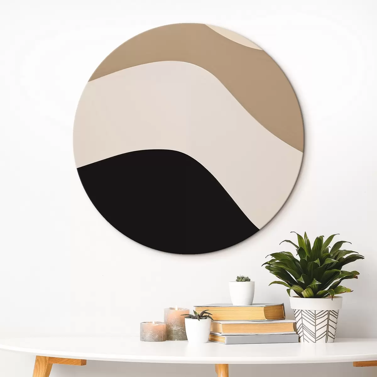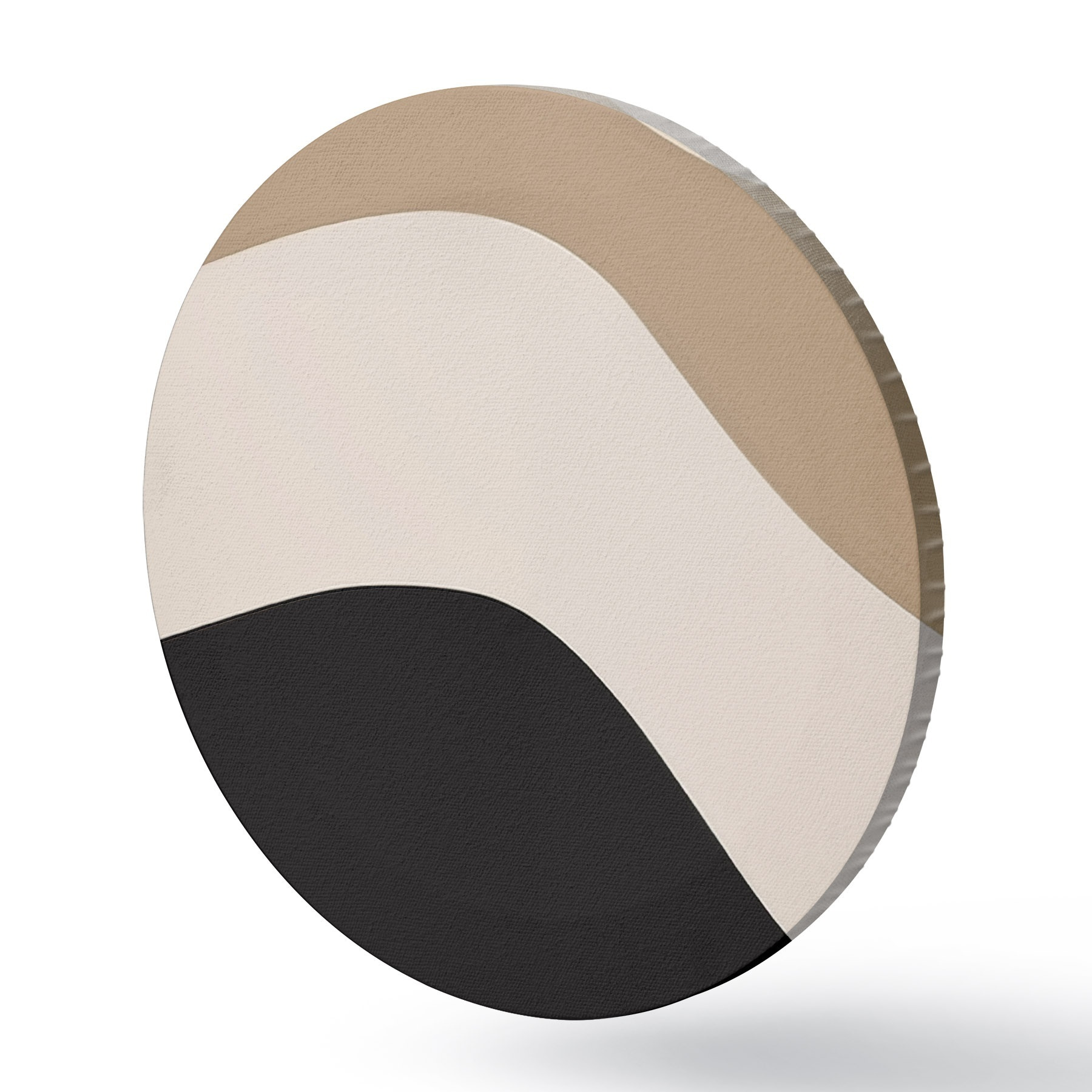 Runde Gemälde Abstrakte Wellen in Beige und Schwarz r44687