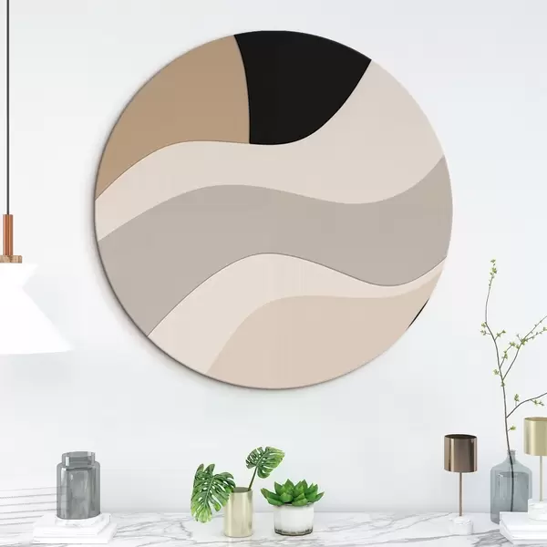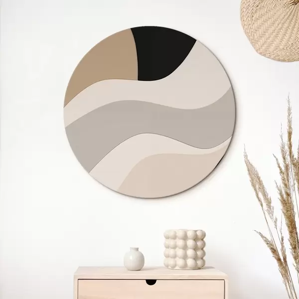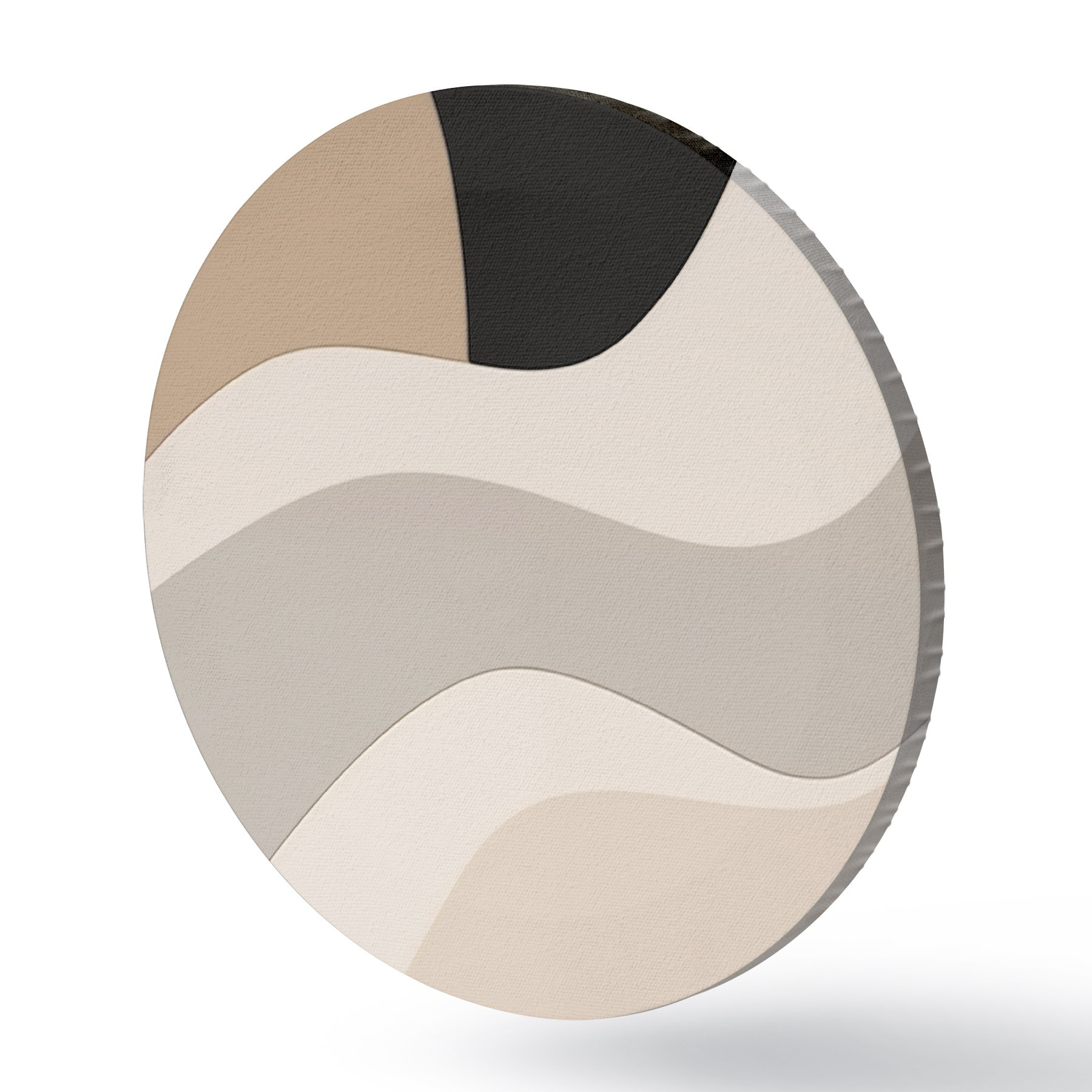 Runde Gemälde Abstrakte Wellen in Beige und Schwarz r44688