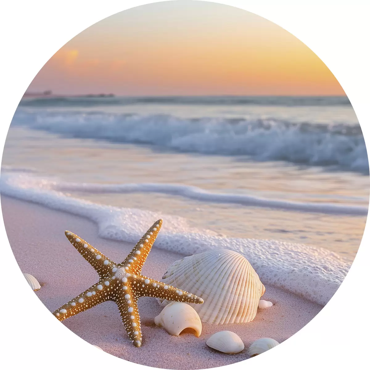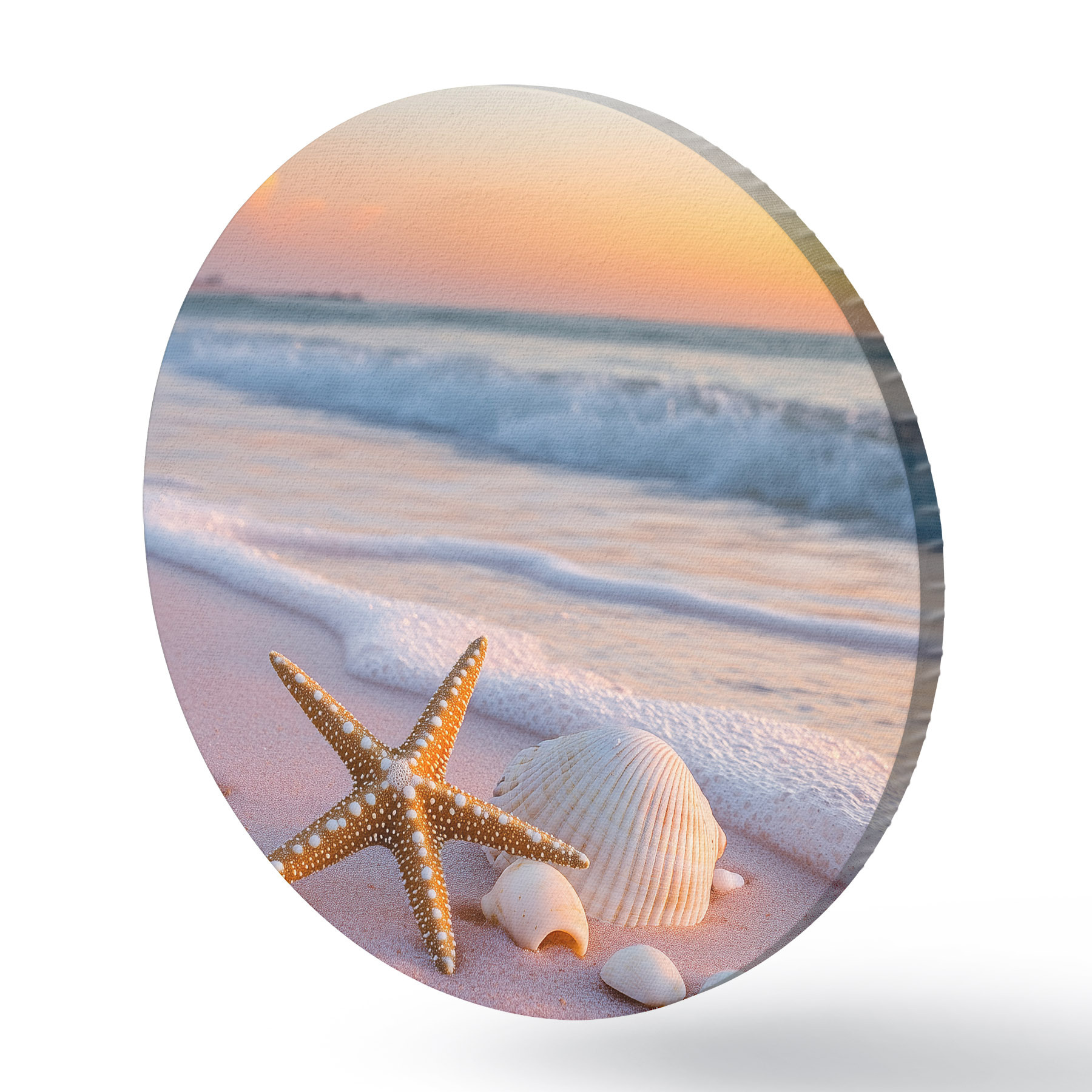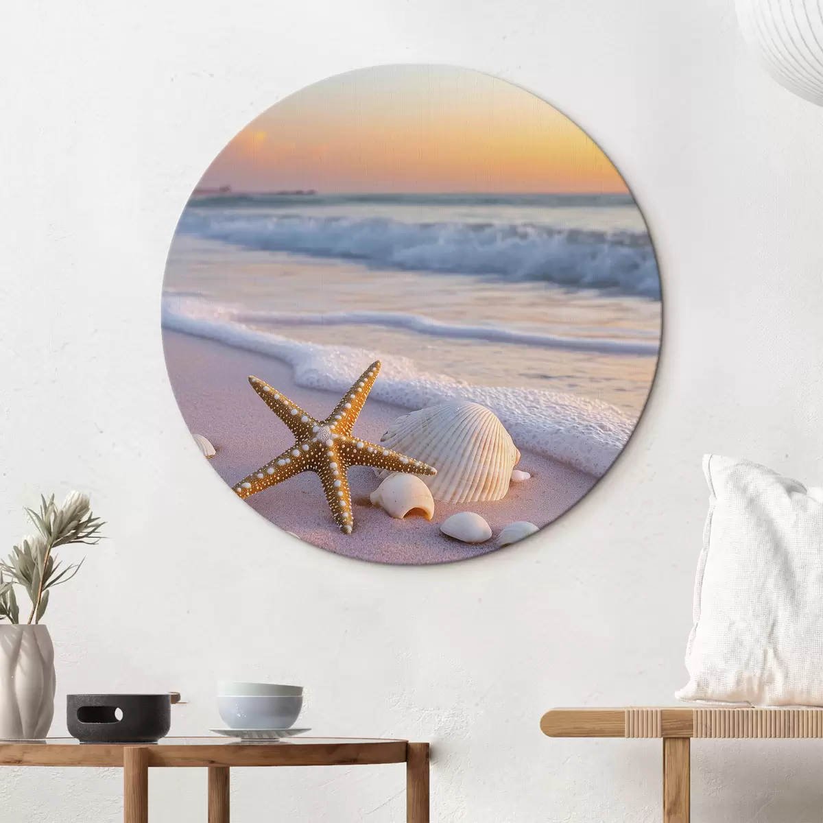 Runde Gemälde Meeresküste mit Seesternen, Muscheln und Wellen r44714