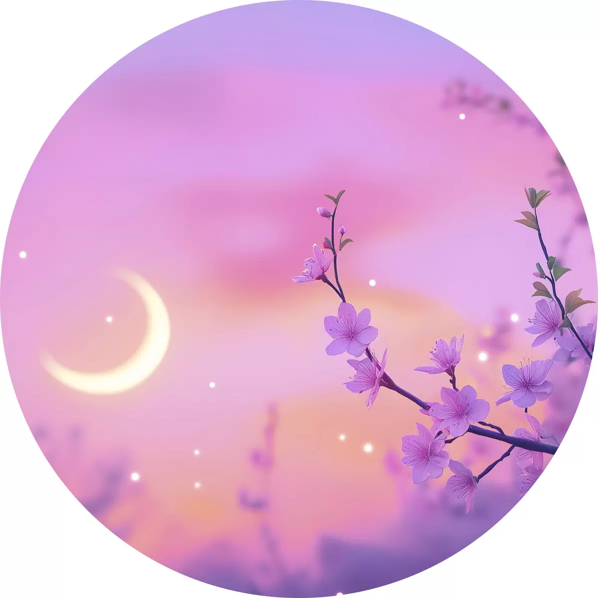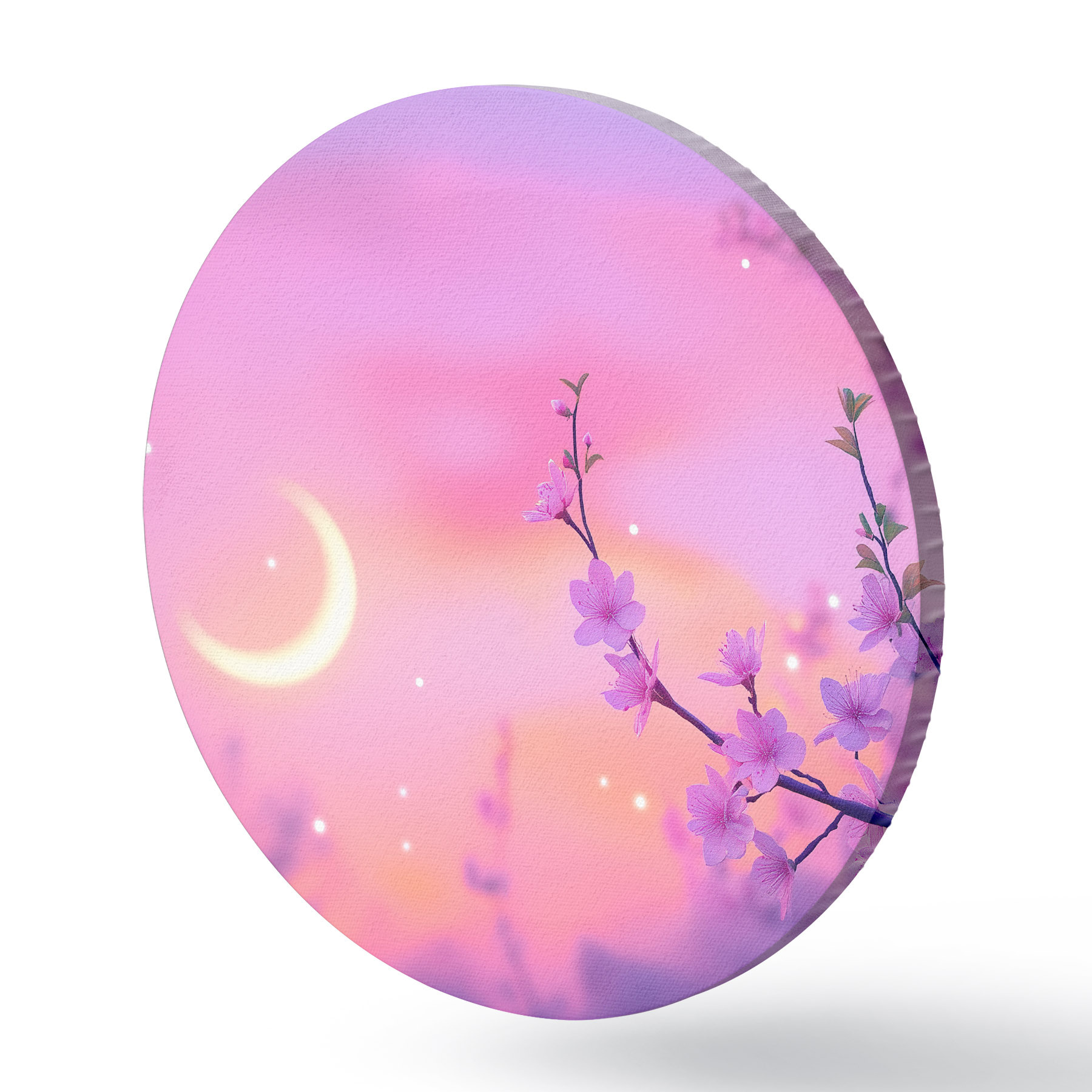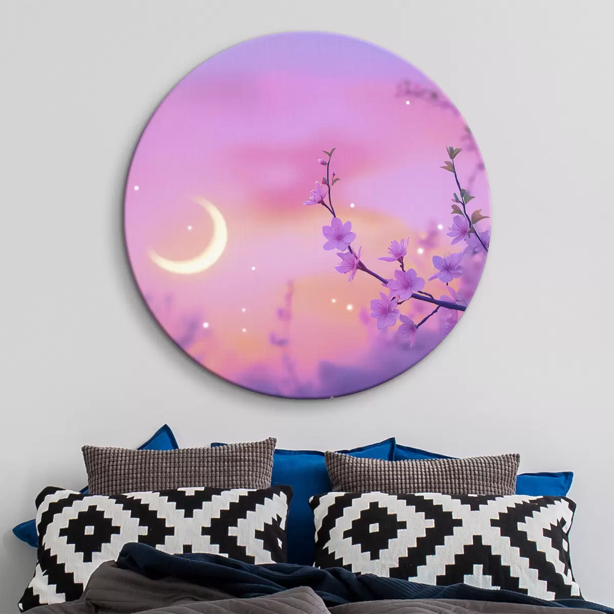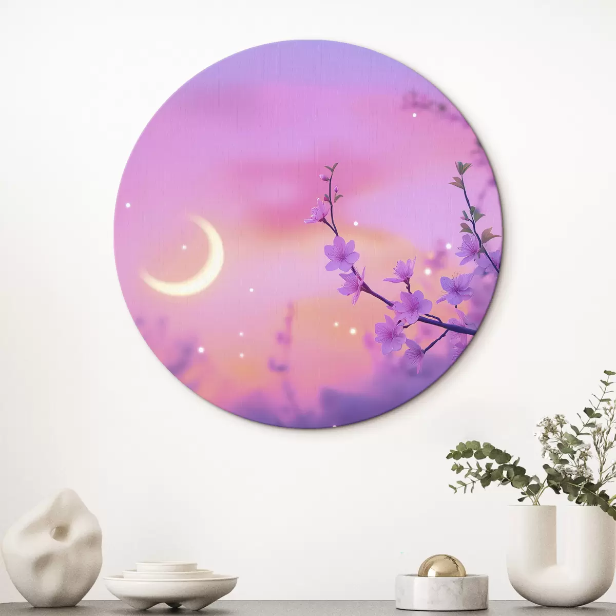 Runde Gemälde Lila Himmel mit Mond und Kirschbäumen r44717