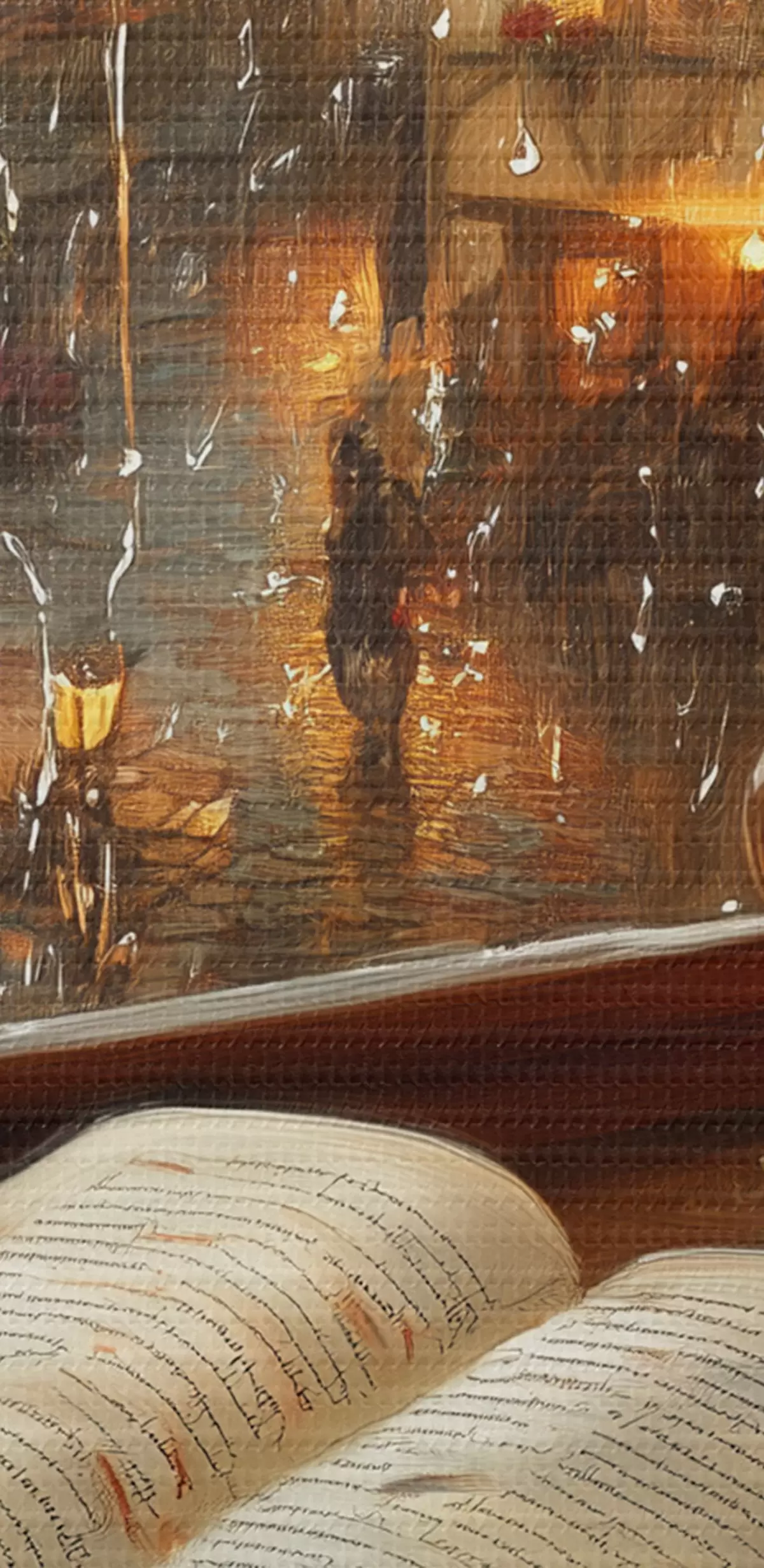 Bild Buch auf der Fensterbank, Kerzen, Regentag, gemütlich Nr r44722