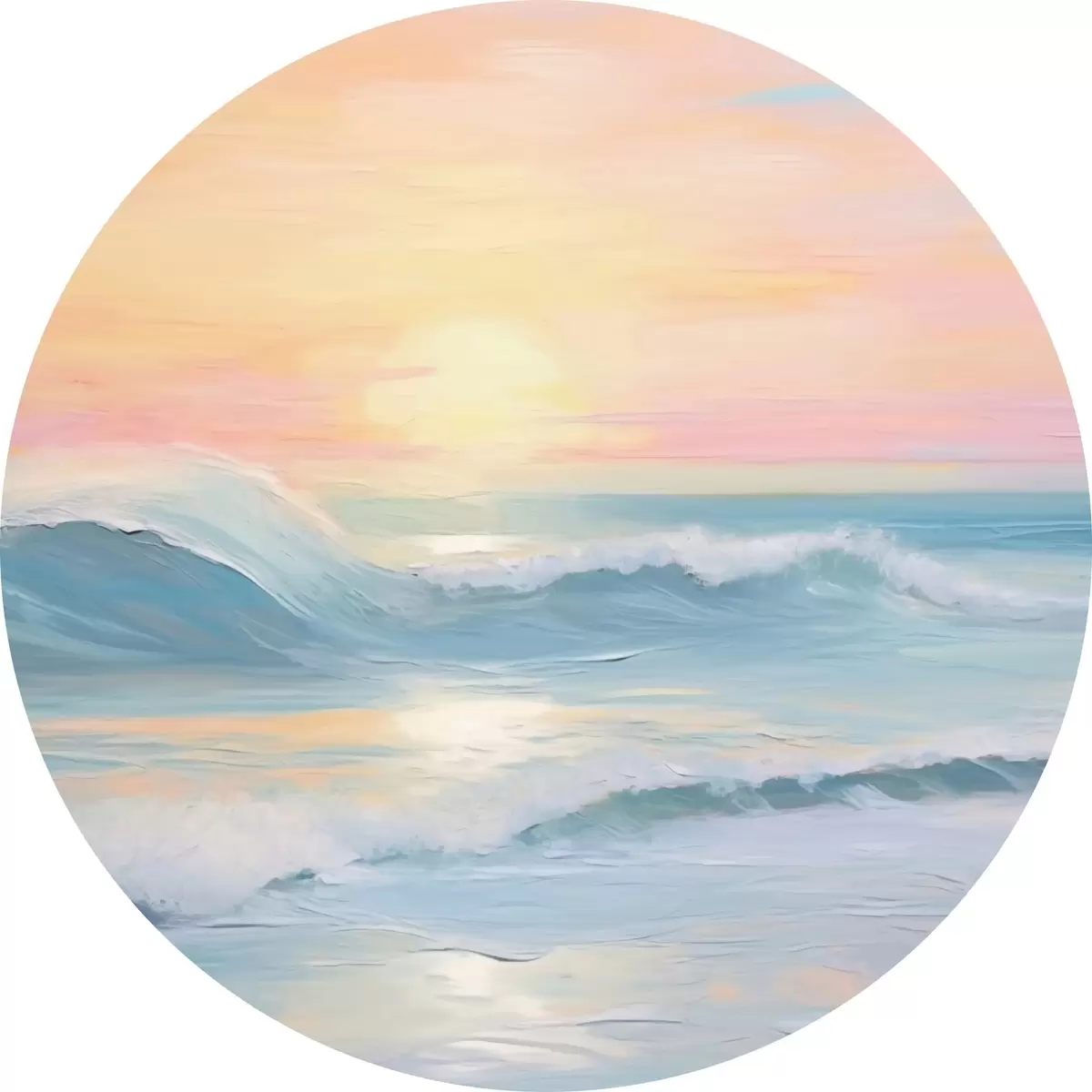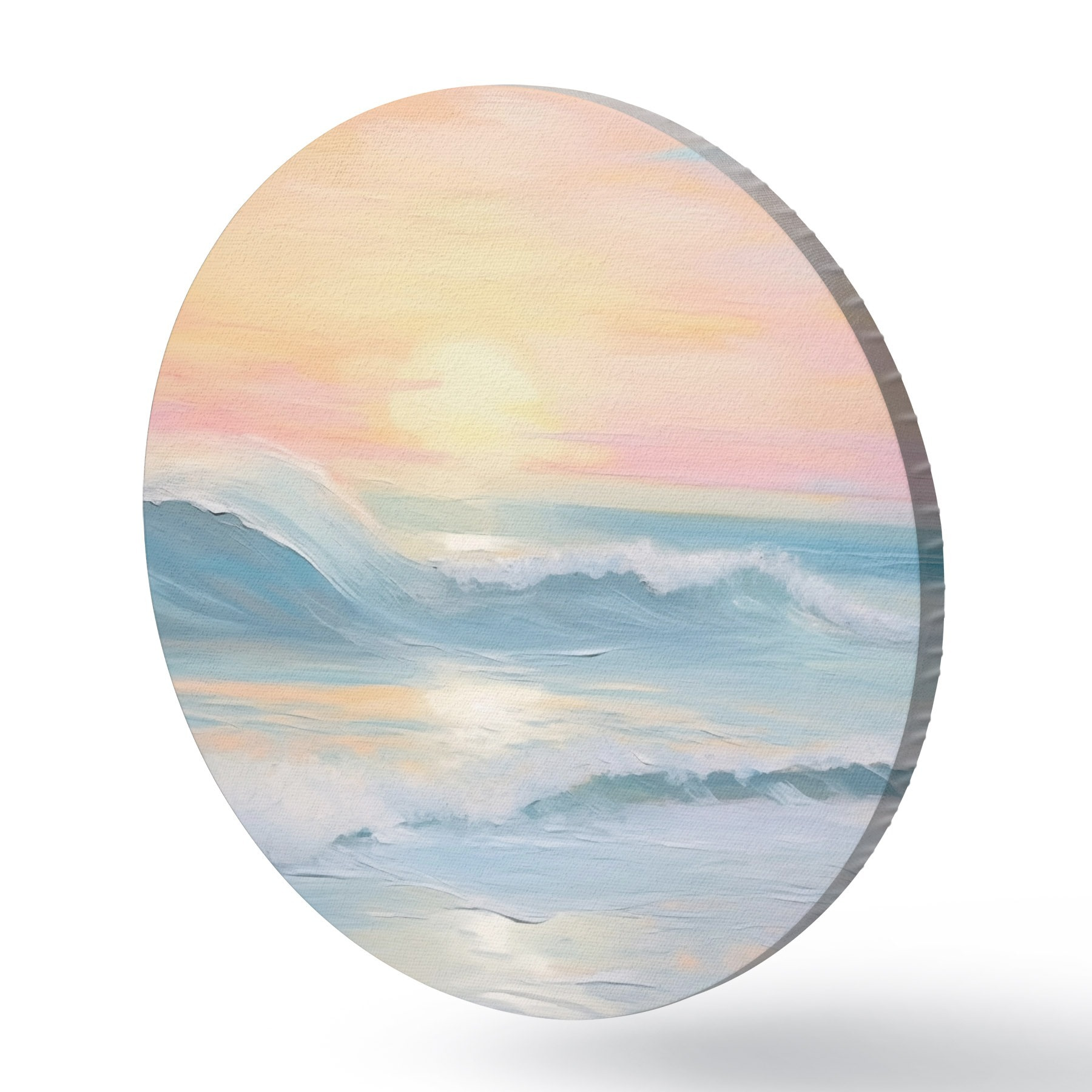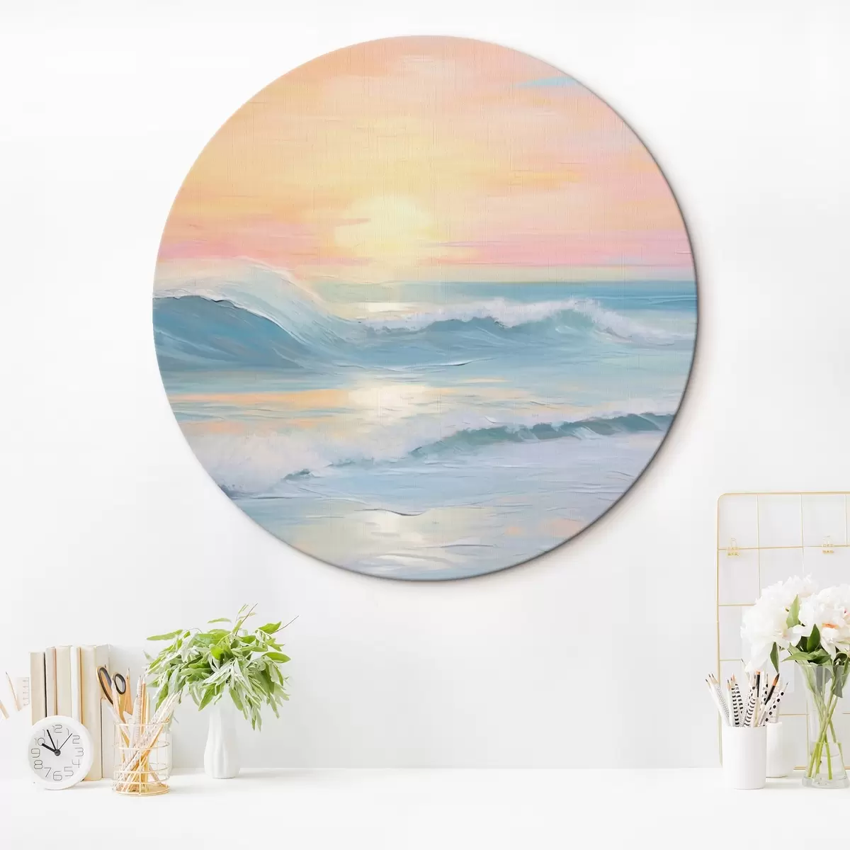 Runde Gemälde Meereswellen auf dem Hintergrund des Sonnenuntergangs r44729