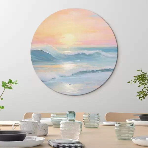 Runde Gemälde Meereswellen auf dem Hintergrund des Sonnenuntergangs r44729