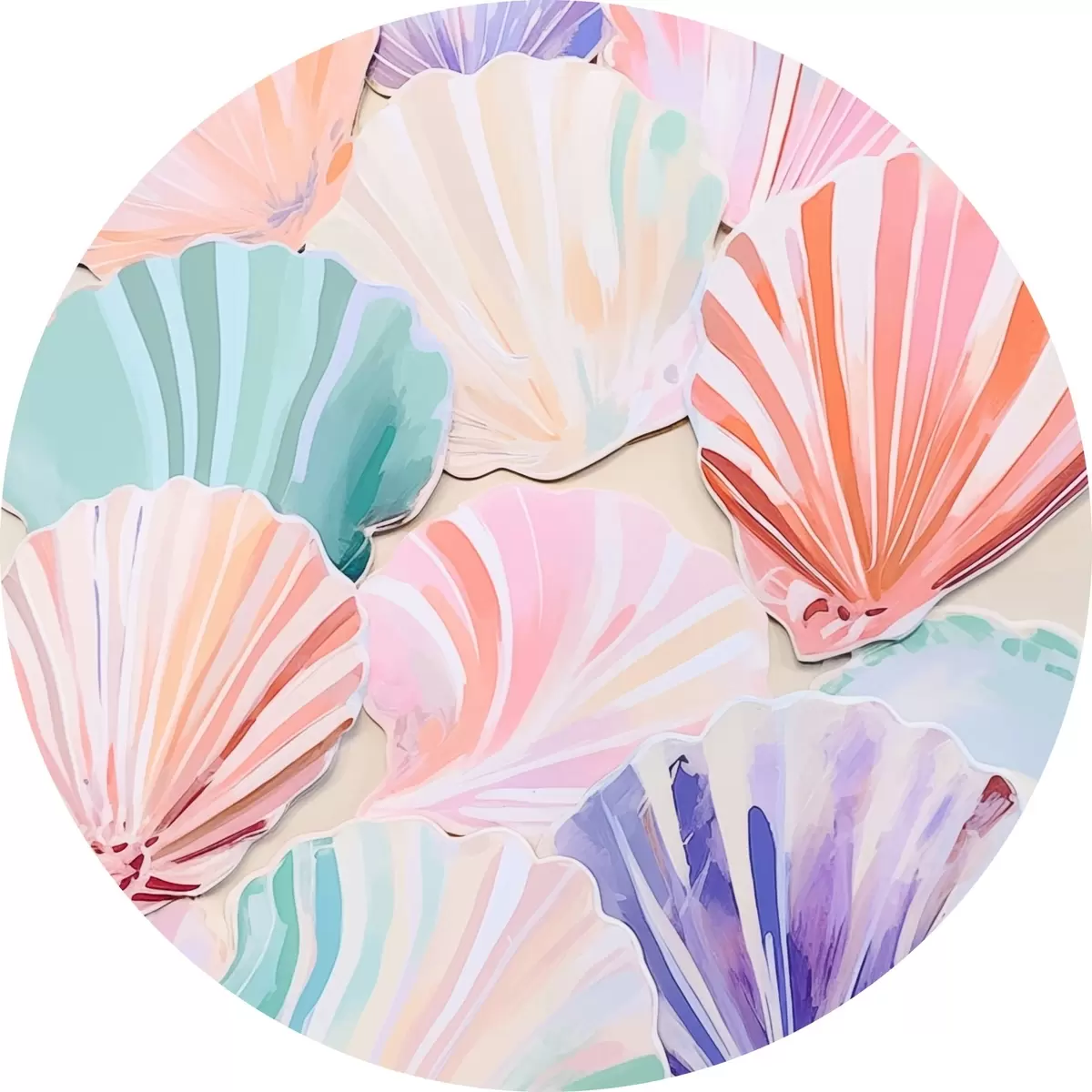 Runde Gemälde Mehrfarbige Muscheln r44736