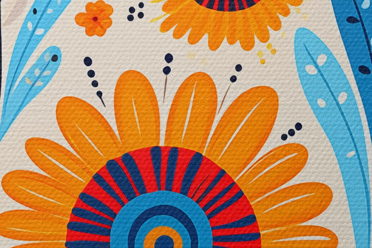 Bild Stilisierte Blumen in blauer und orangefarbener Palette Nr r44761