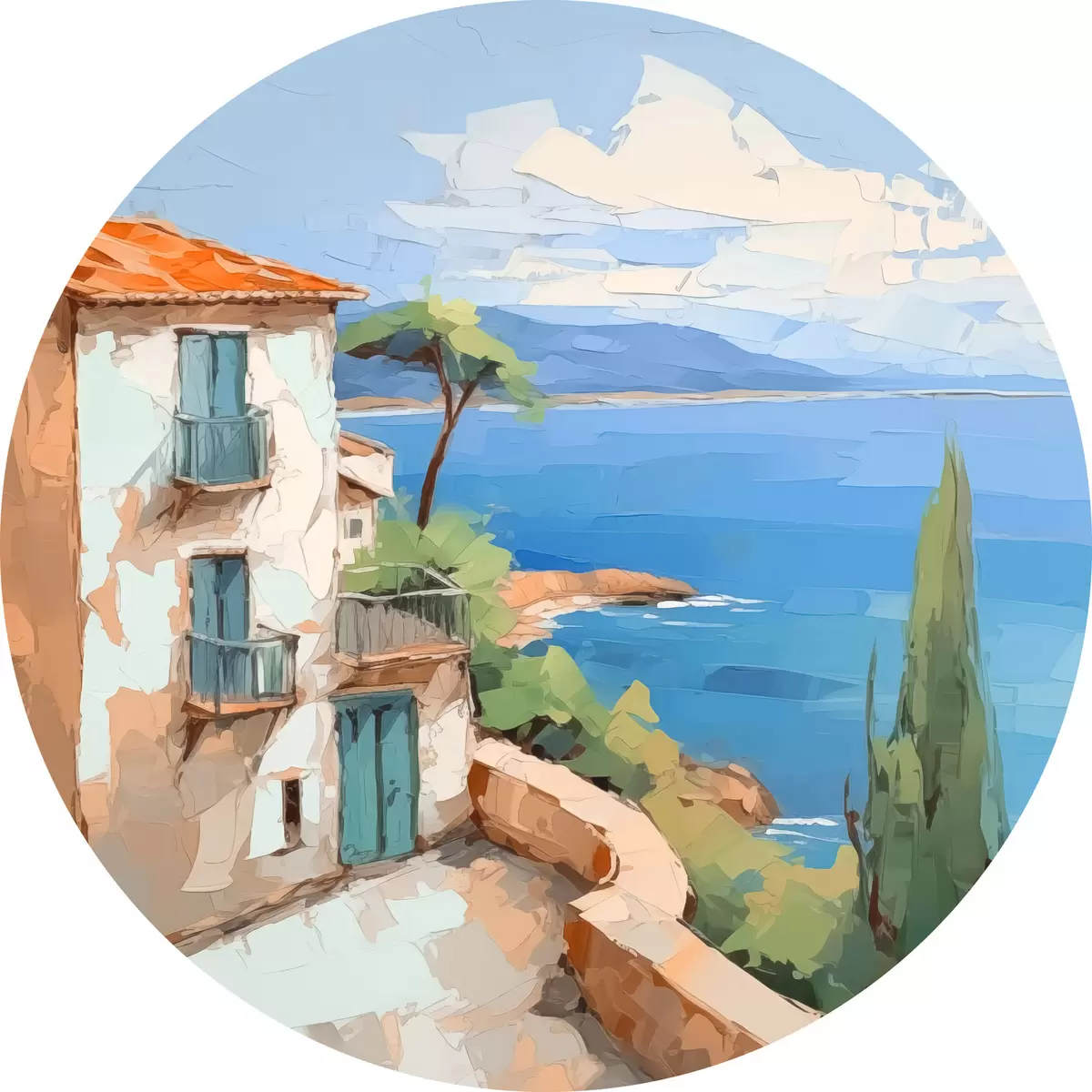 Runde Gemälde Haus am Meer Nachahmung der Malerei r44767