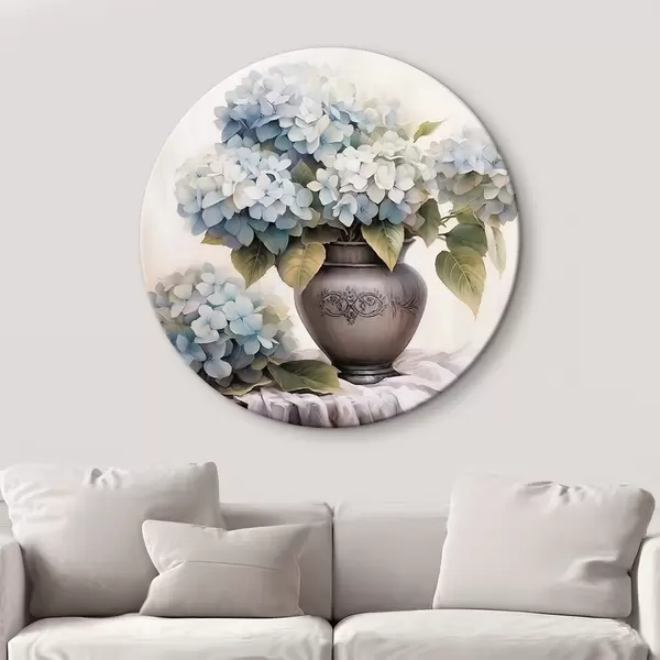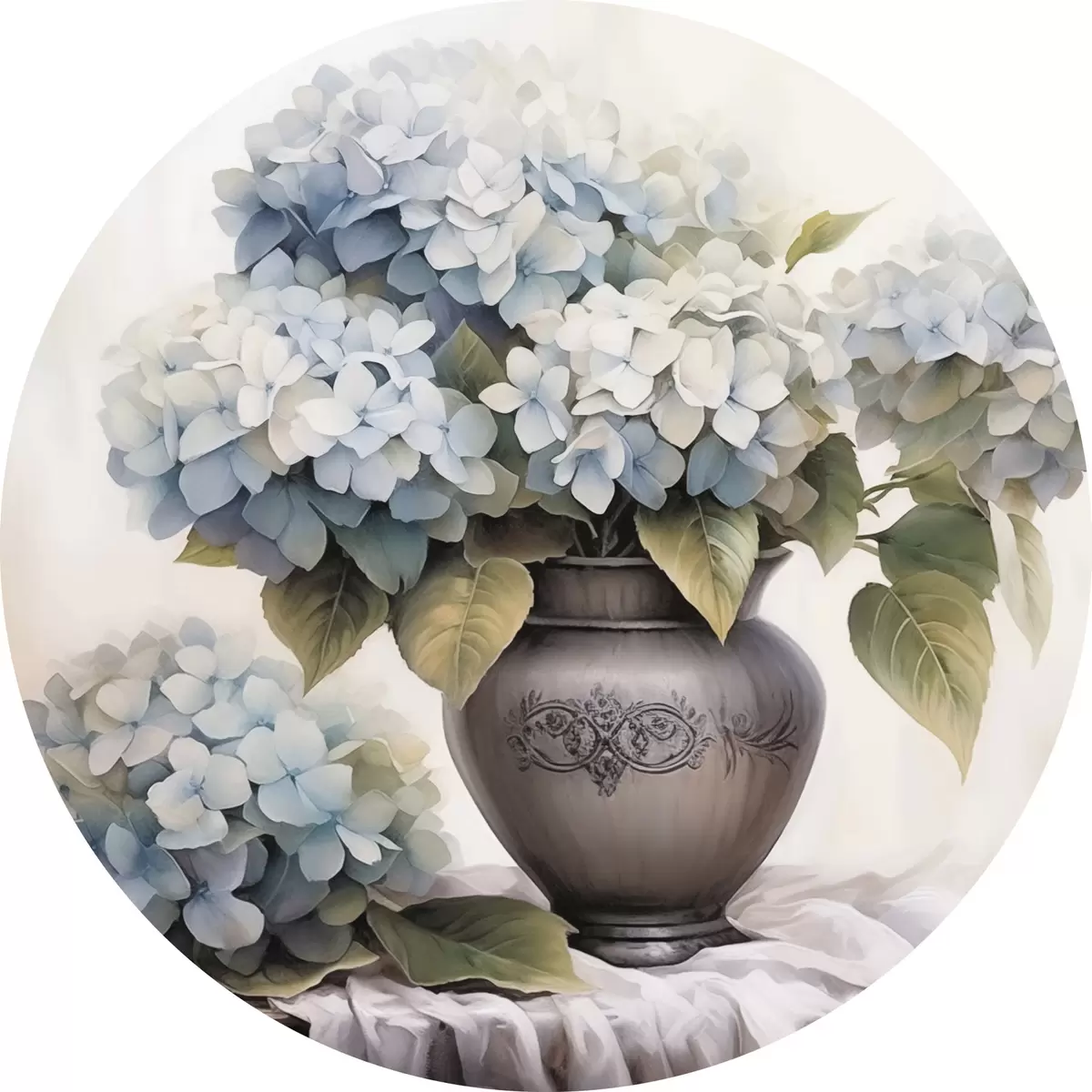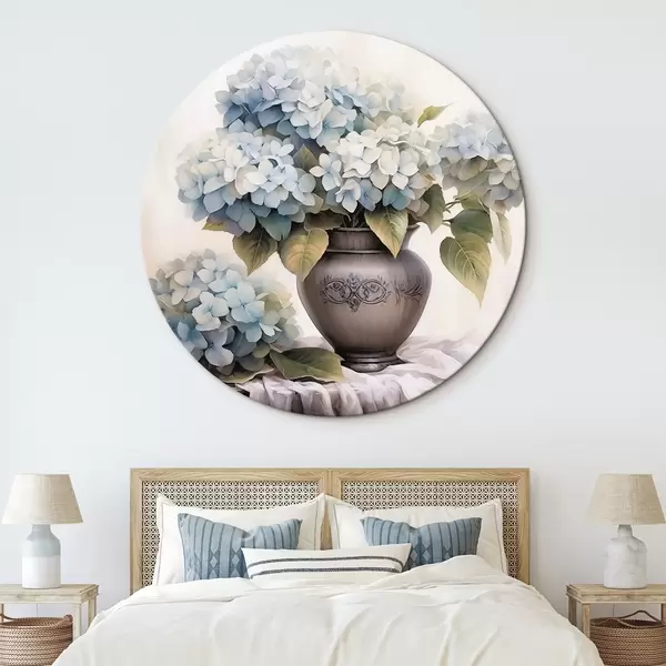 Runde Gemälde Hortensienblüten in einer Vase r44771