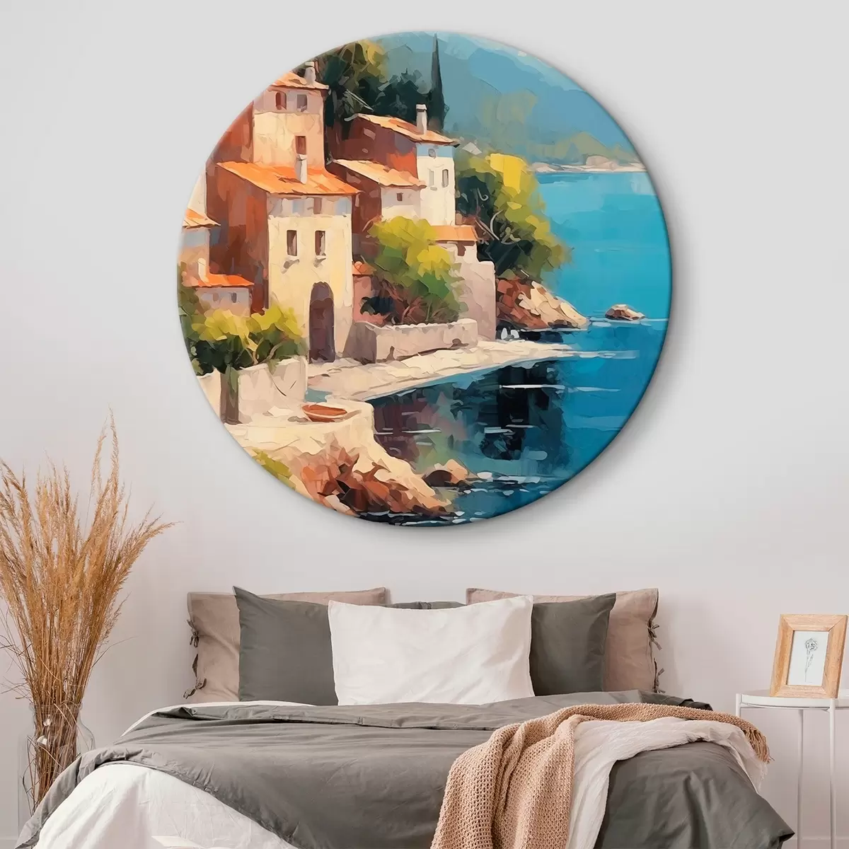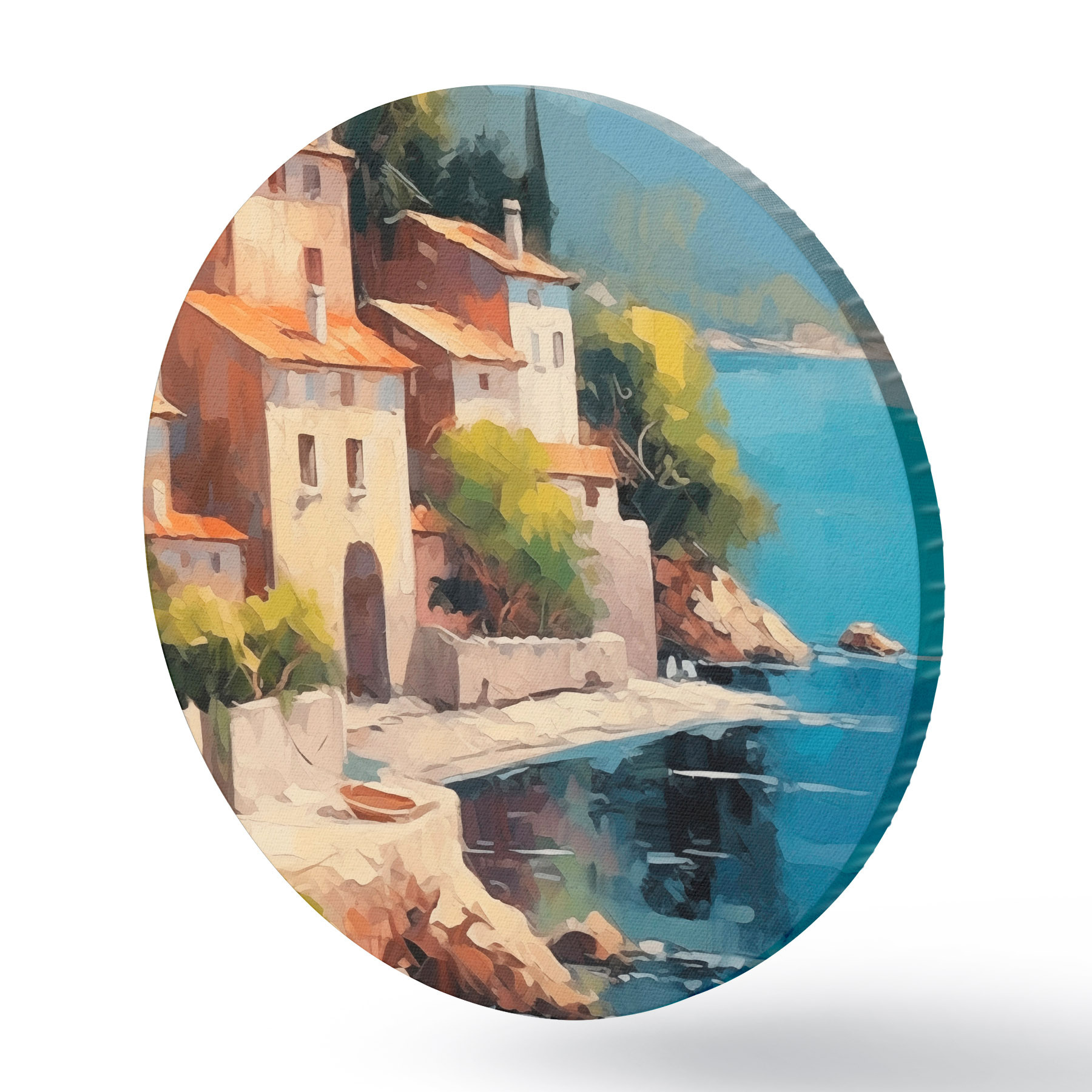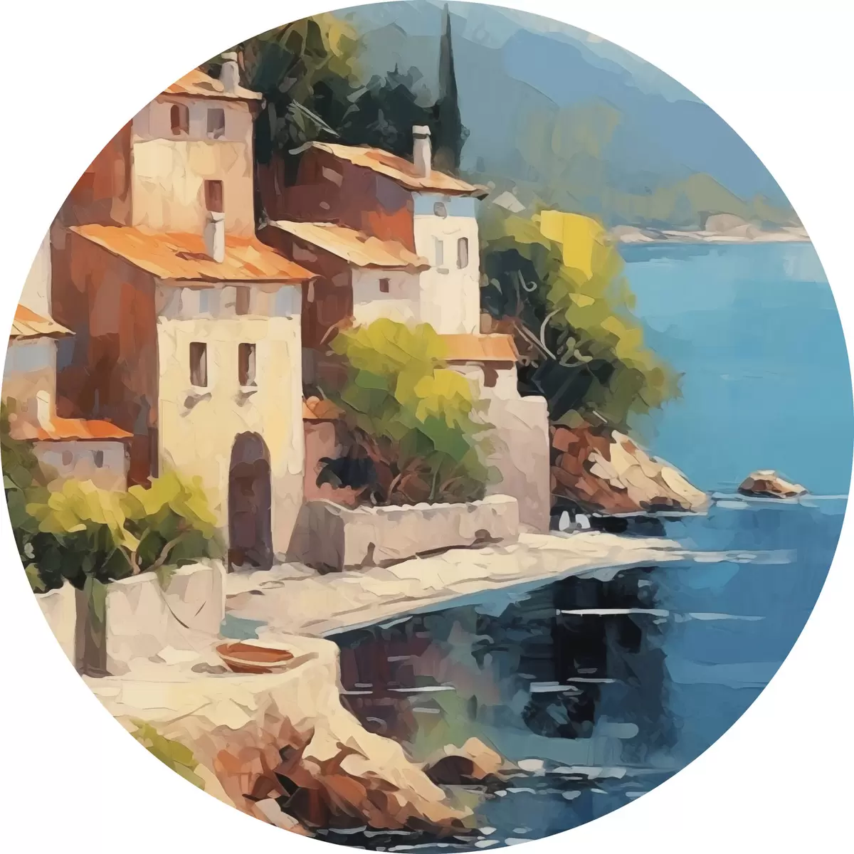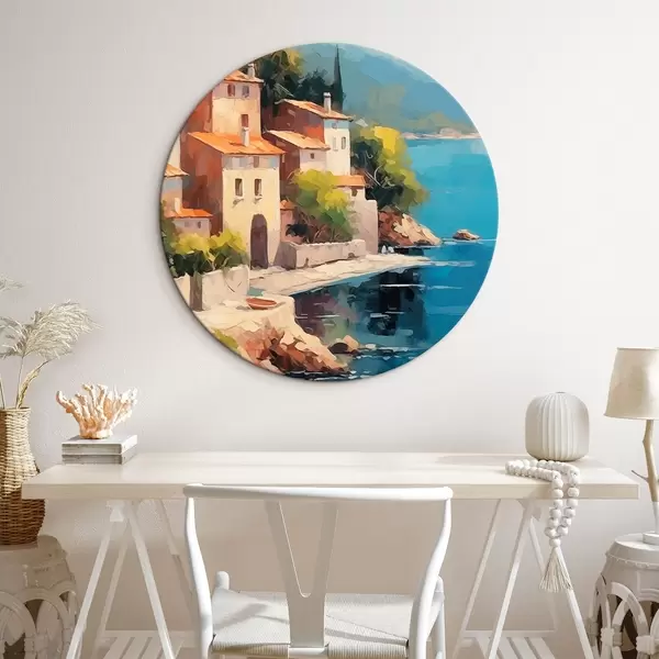 Runde Gemälde Häuser an der Bucht Nachahmung der Malerei r44773
