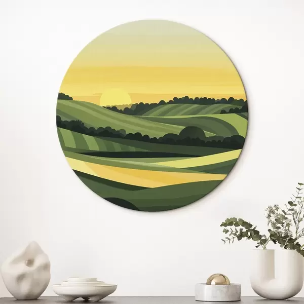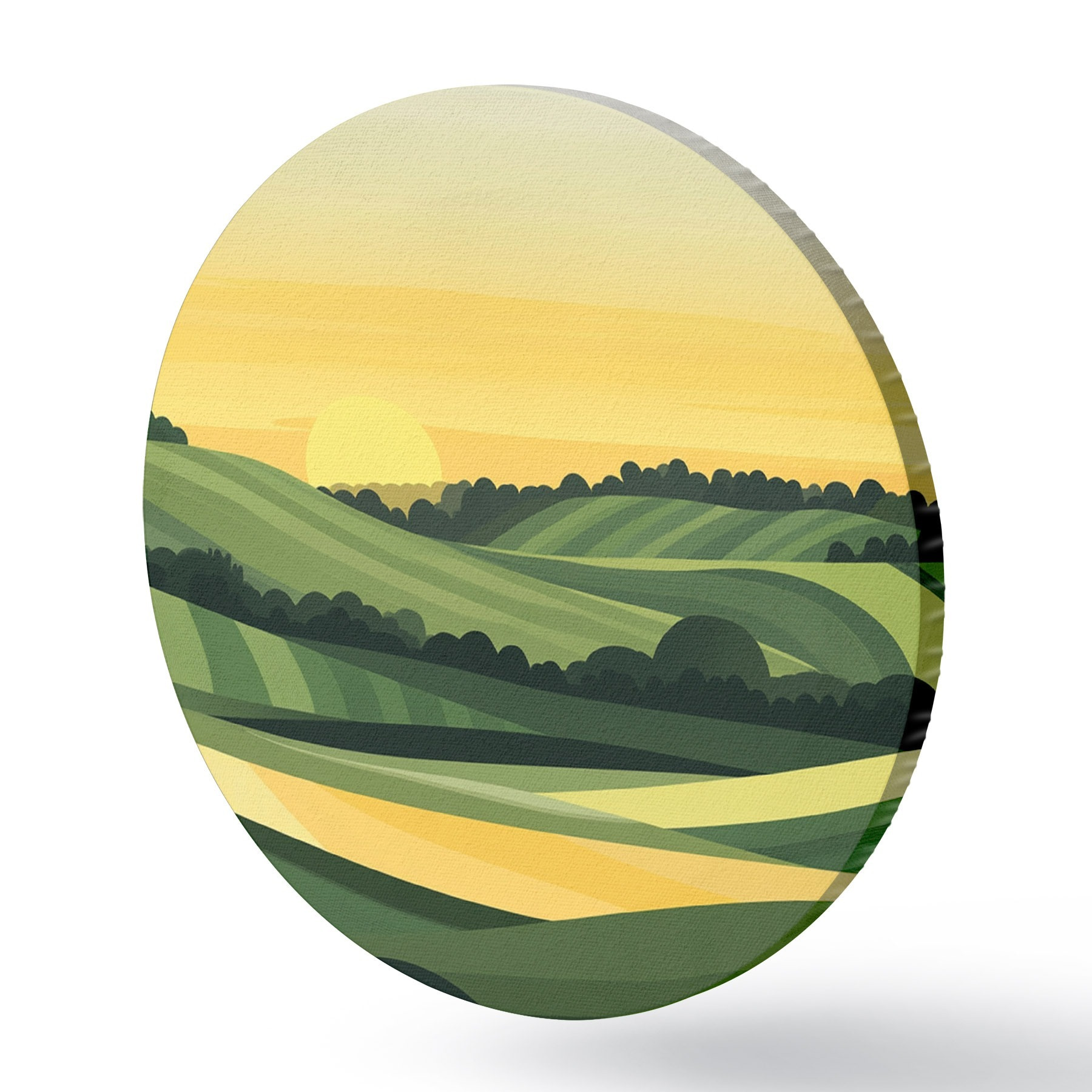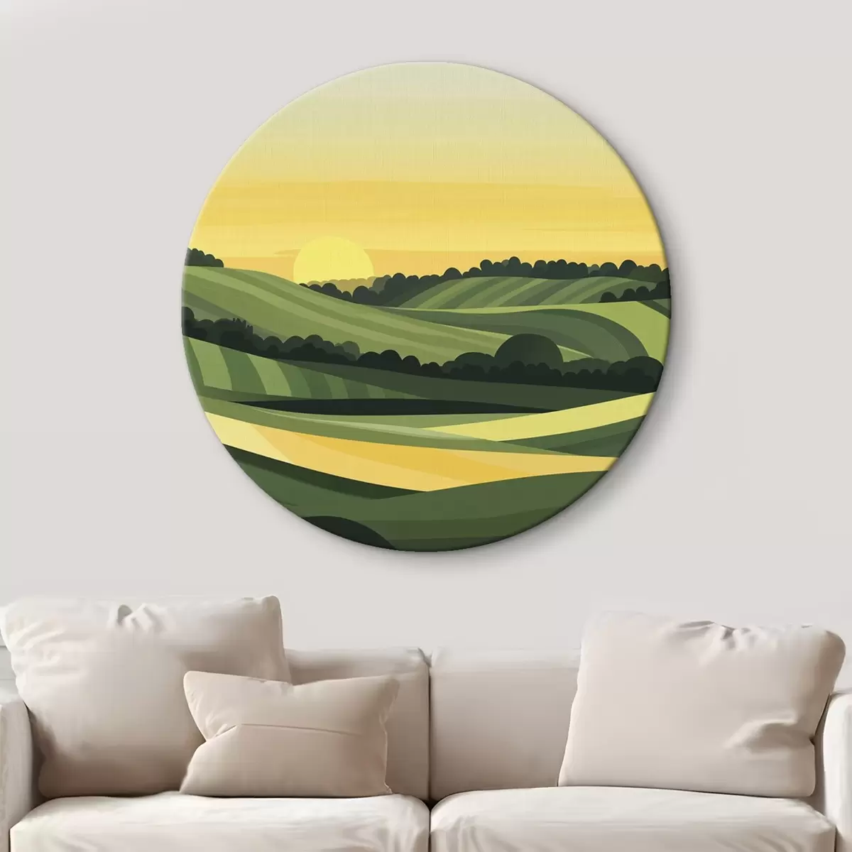 Runde Gemälde Abstrakte Landschaften mit Hügeln und Sonnenuntergang r44785