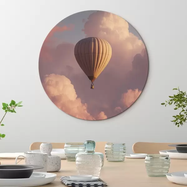 Runde Gemälde Luftballon in den Sonnenuntergang Himmel mit Wolken r44790