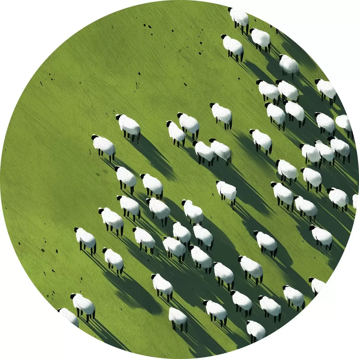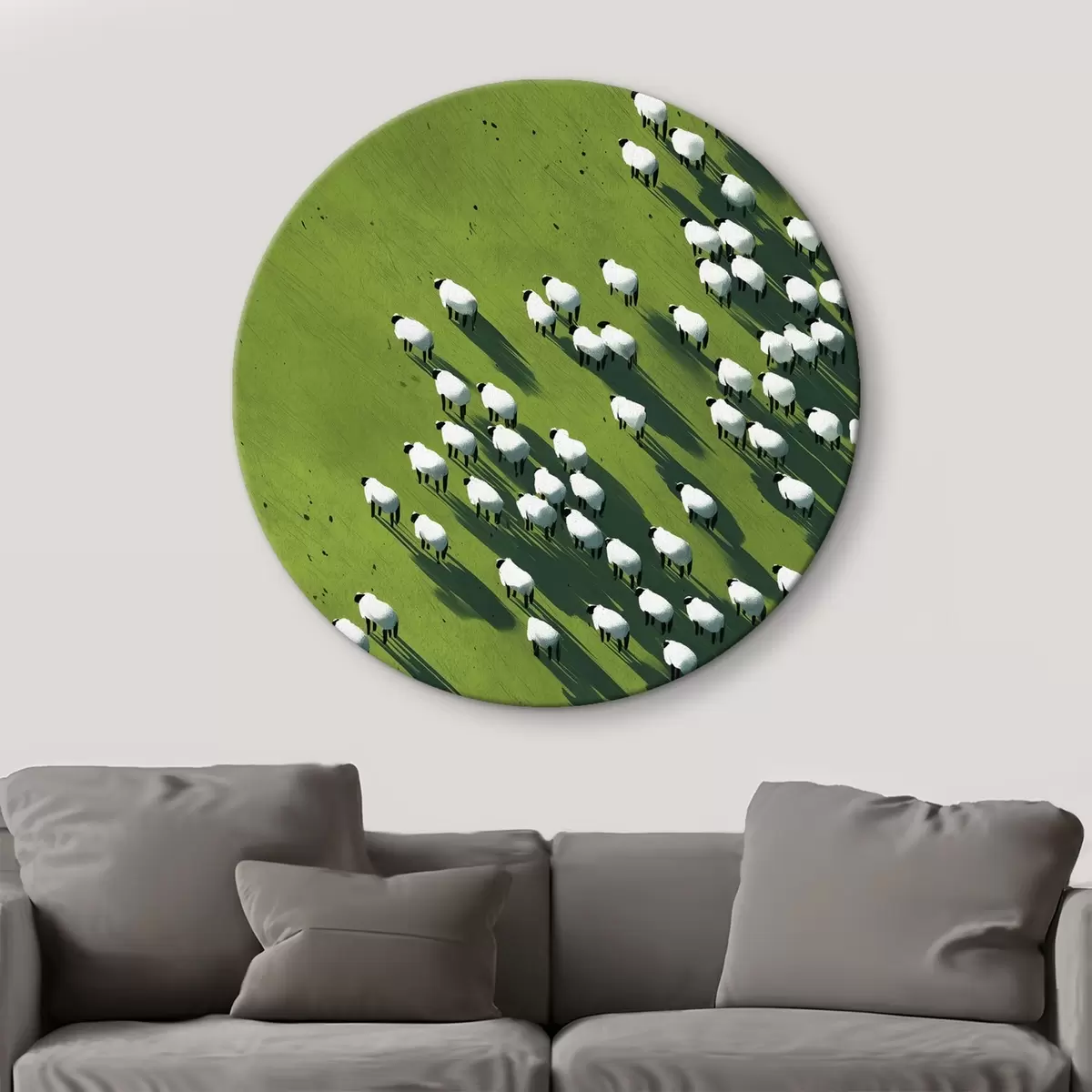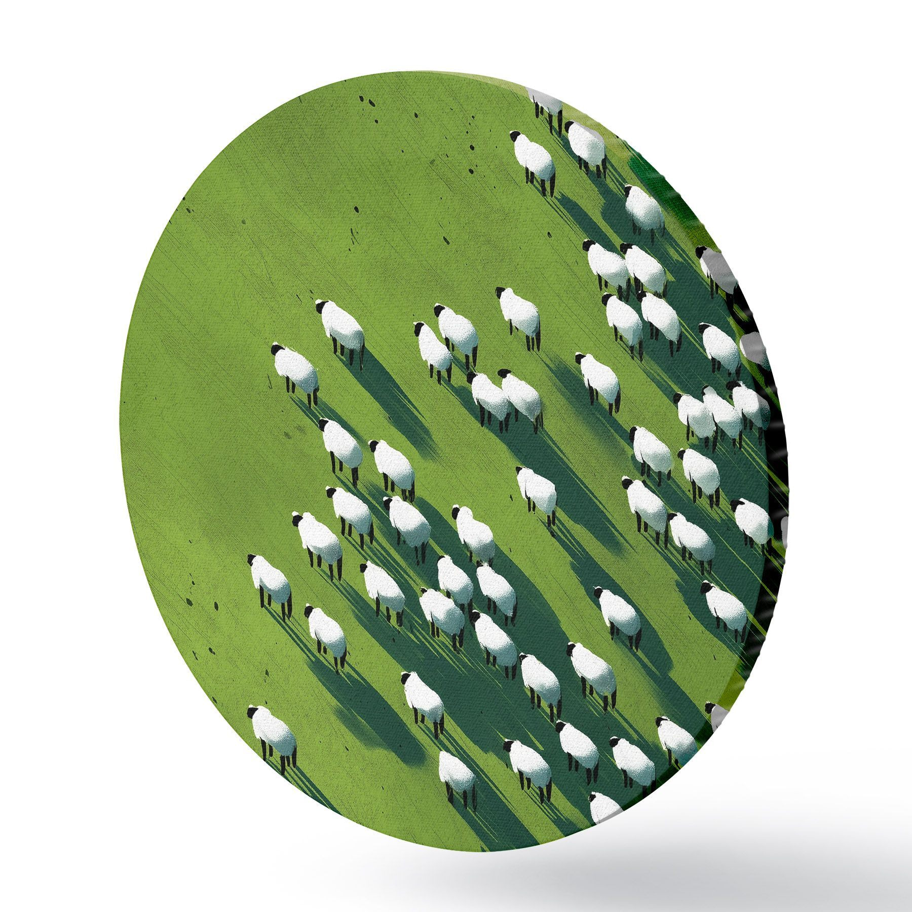 Runde Gemälde Grünes Feld mit einer Schafherde, Abstraktion, Luftaufnahme r44793
