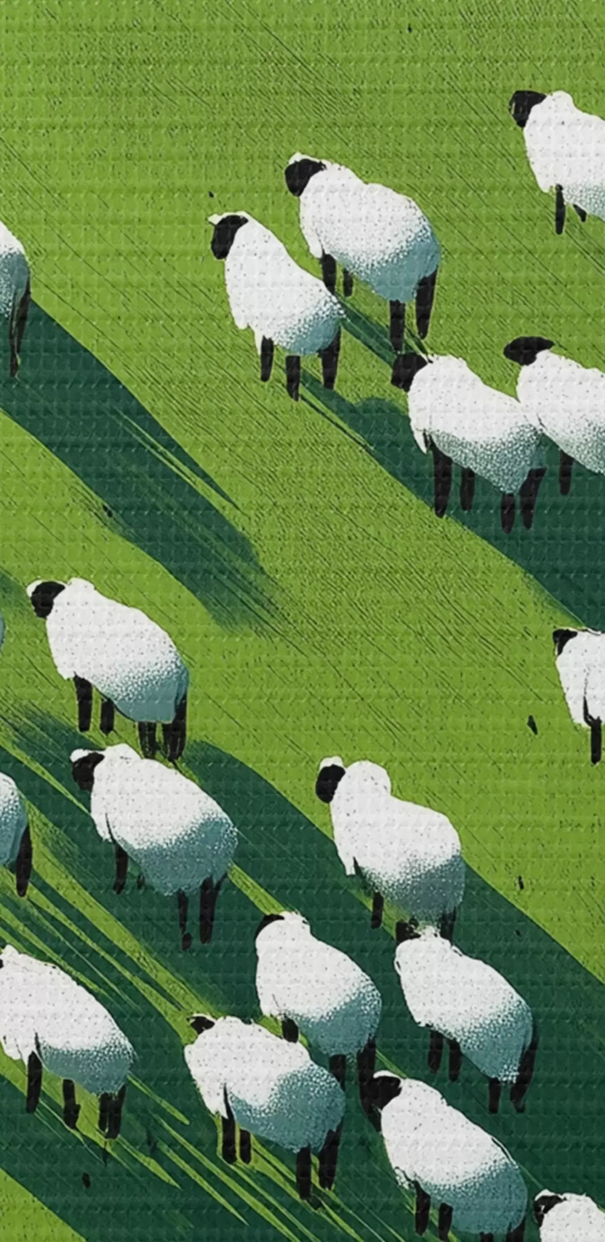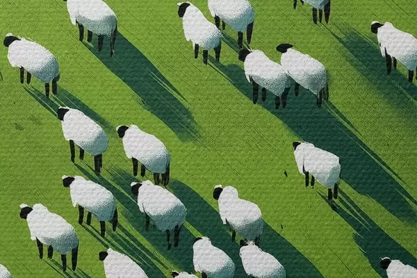 Bild Grünes Feld mit einer Schafherde, Abstraktion, Luftaufnahme Nr r44793