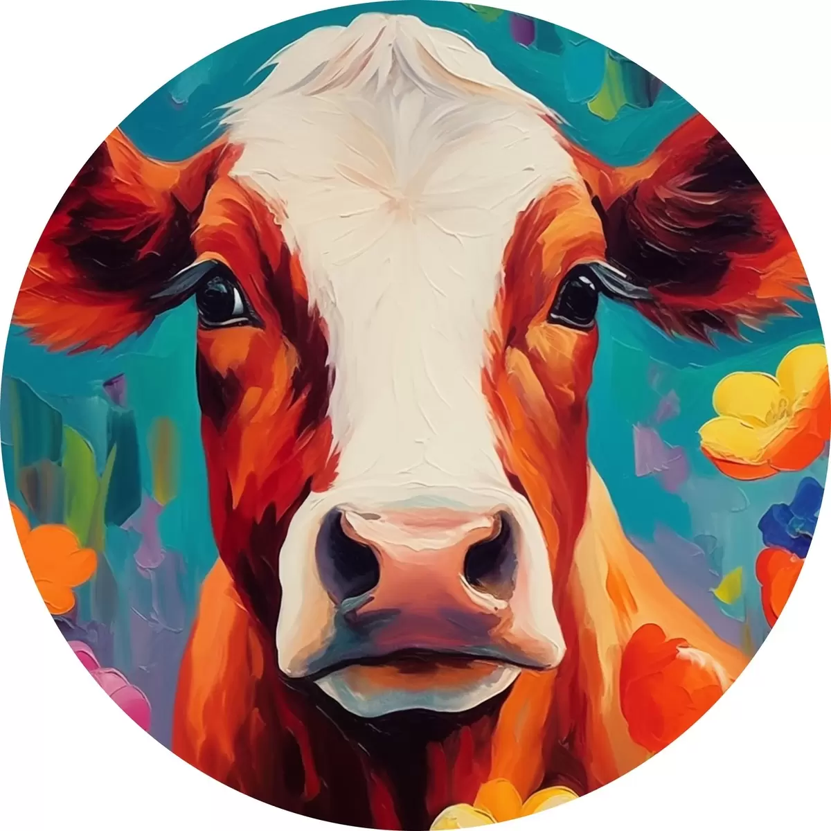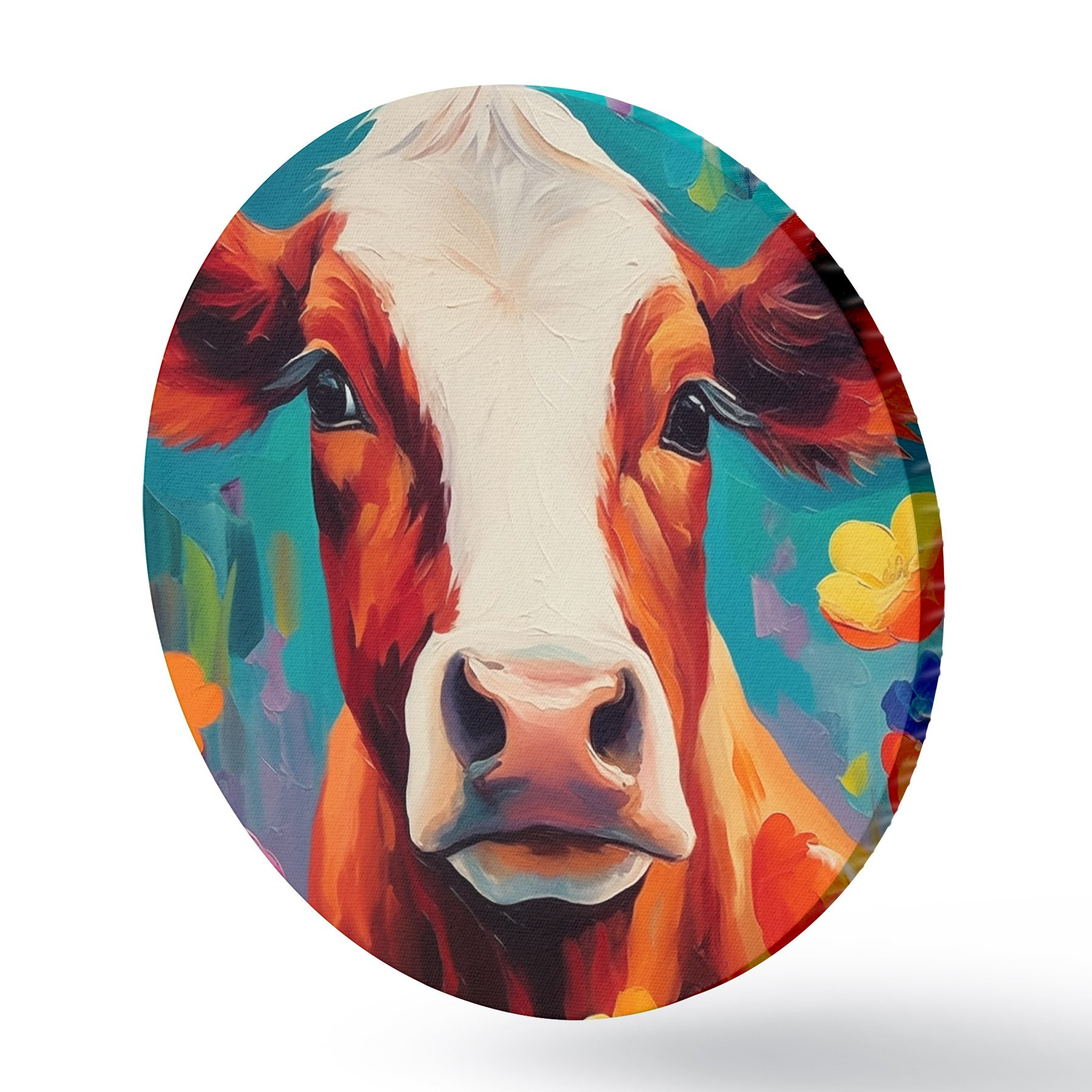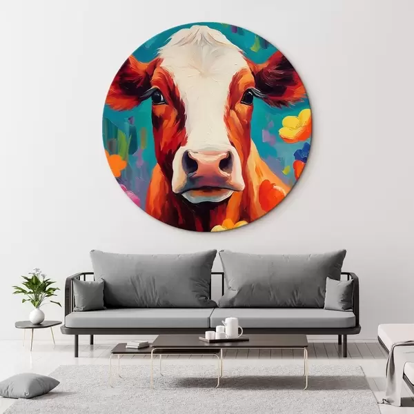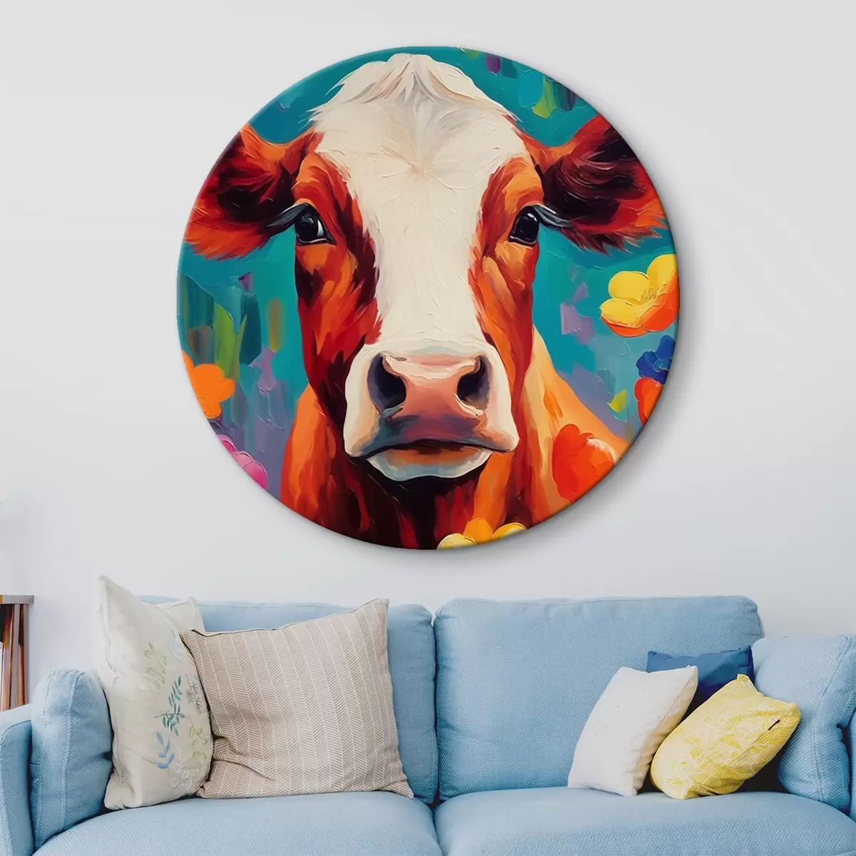 Runde Gemälde Kuh inmitten von Blumen r44803