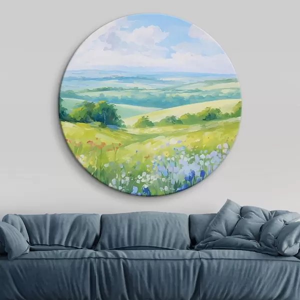 Runde Gemälde Blühender Hügel mit Sommerblick r44813
