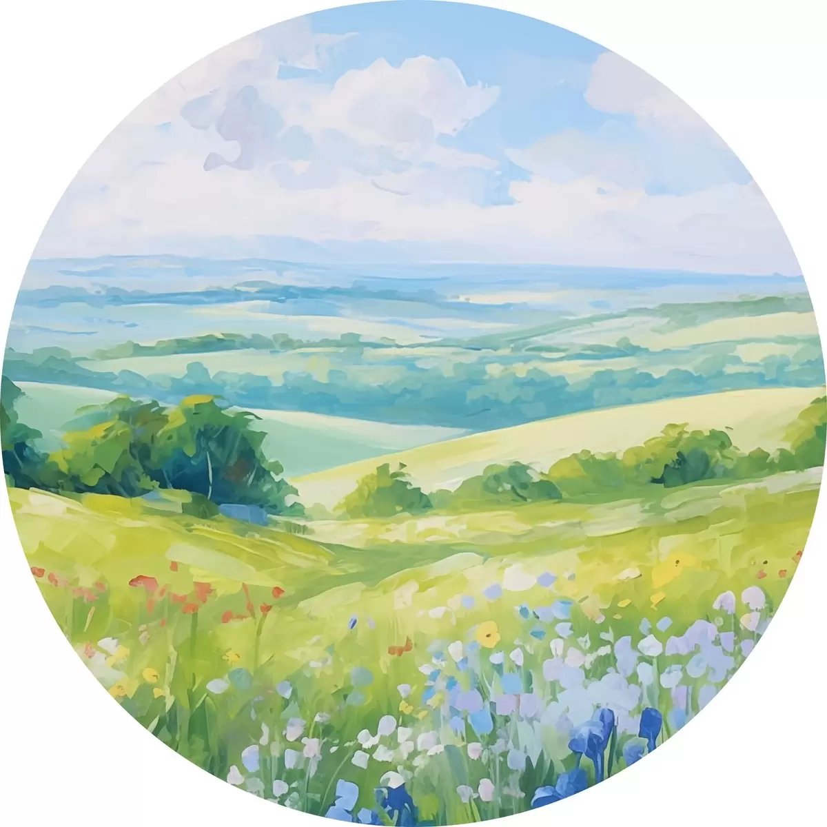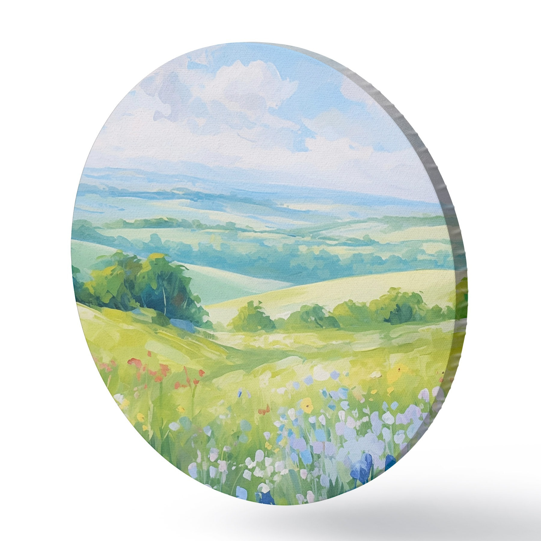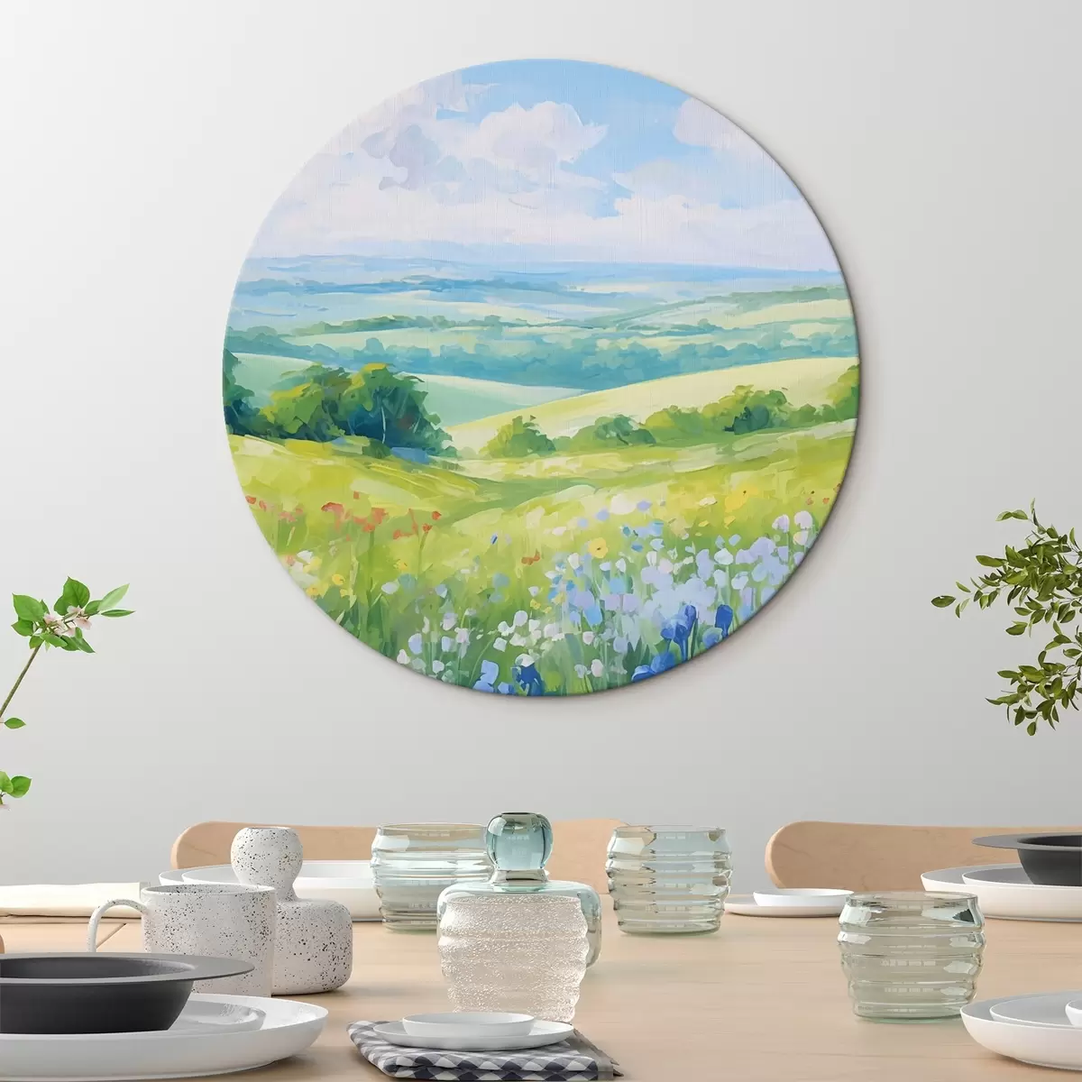Runde Gemälde Blühender Hügel mit Sommerblick r44813