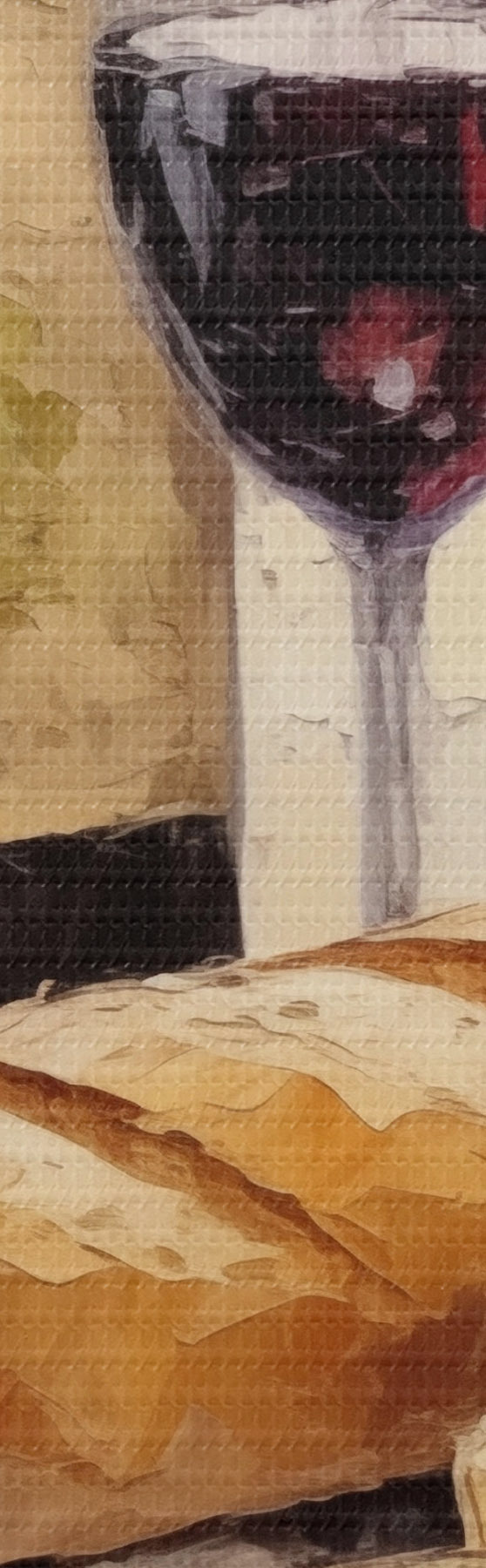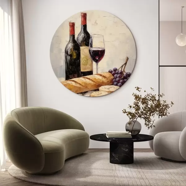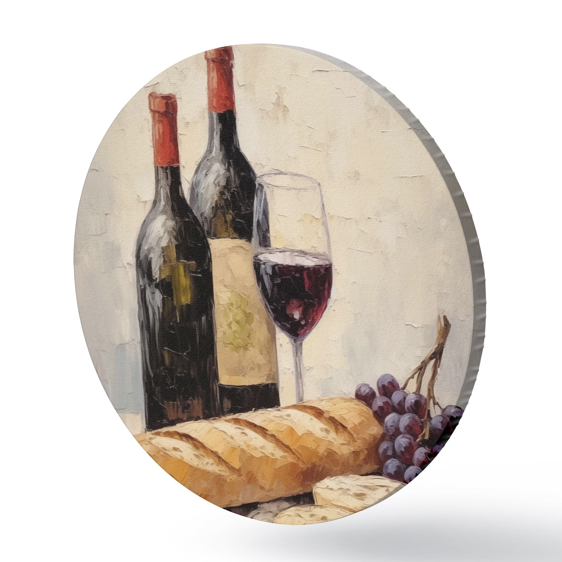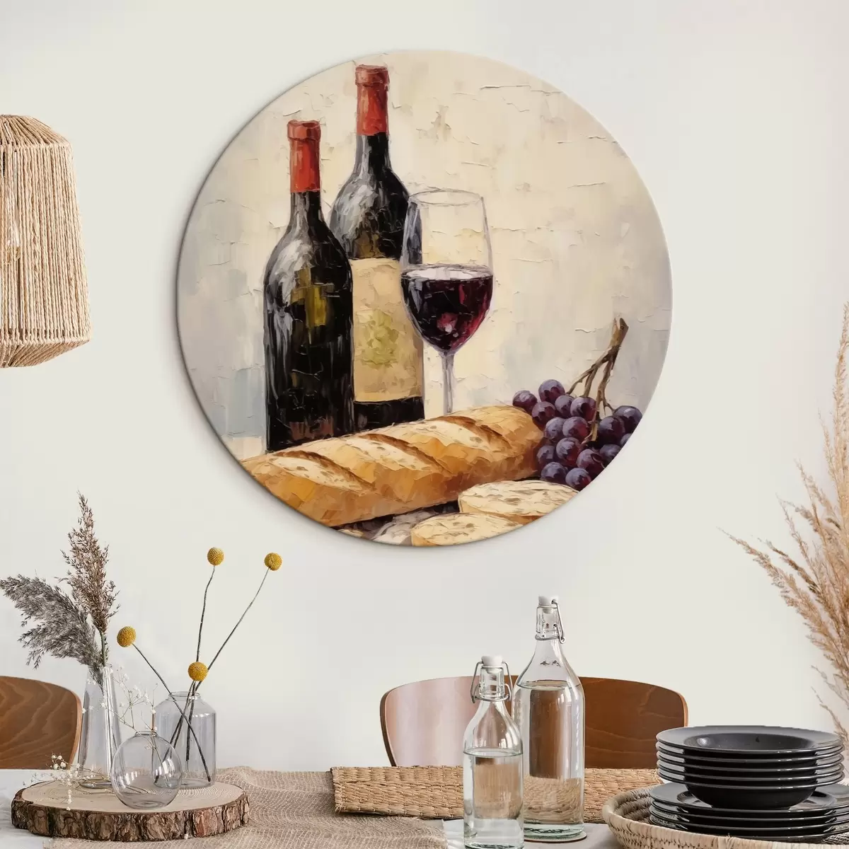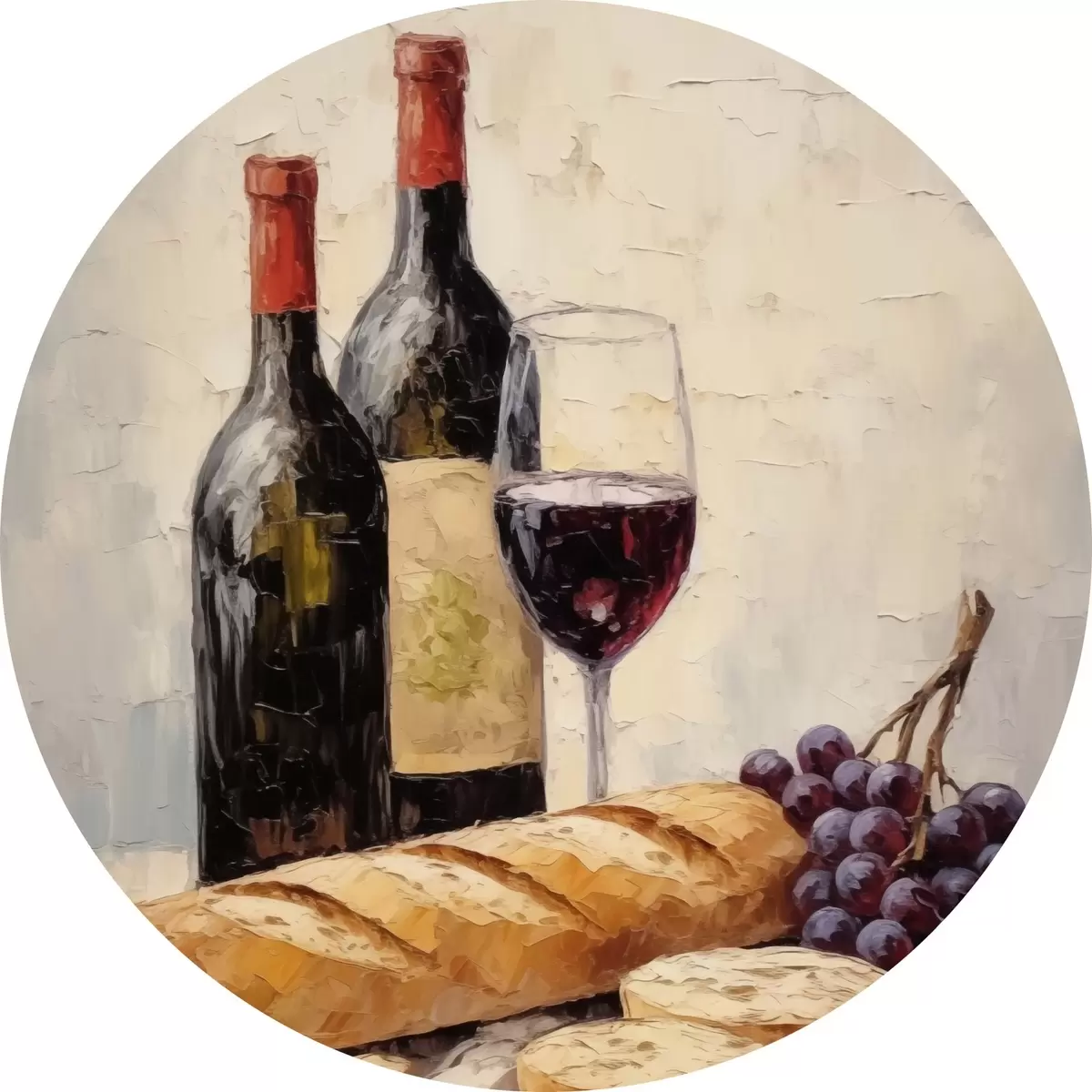 Runde Gemälde Wein, Baguette und Weintrauben r44815