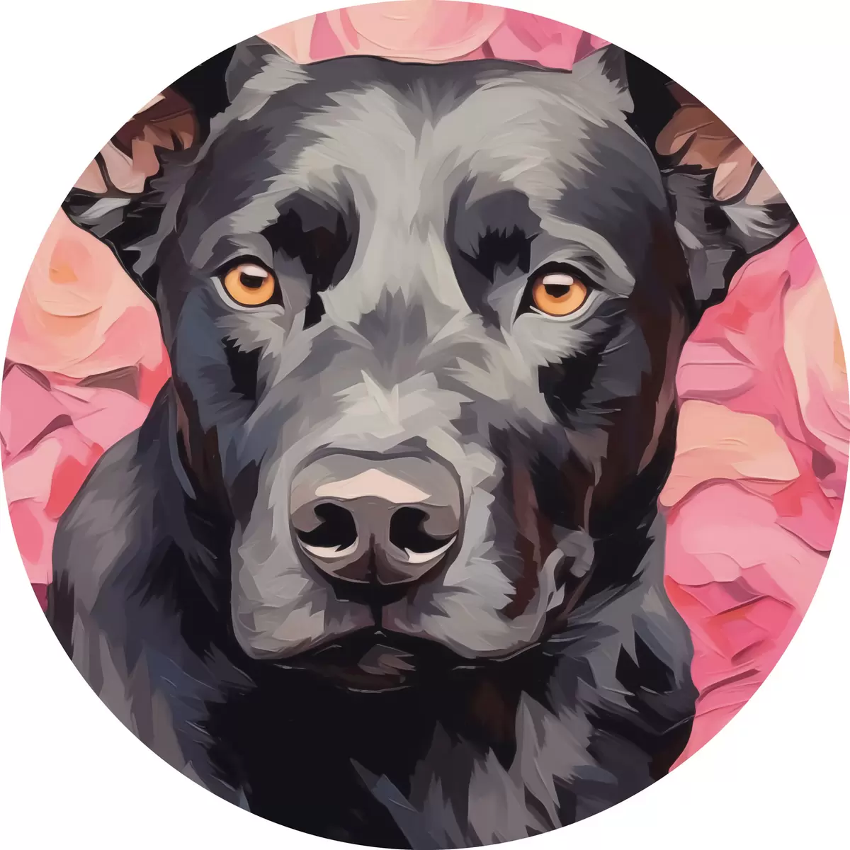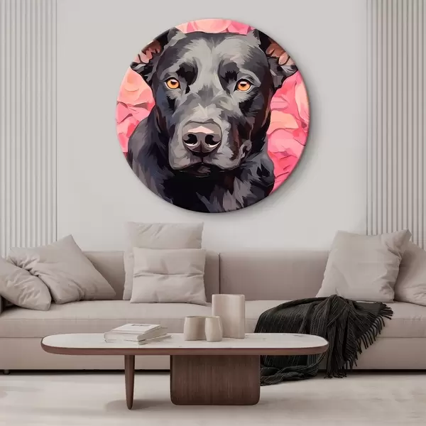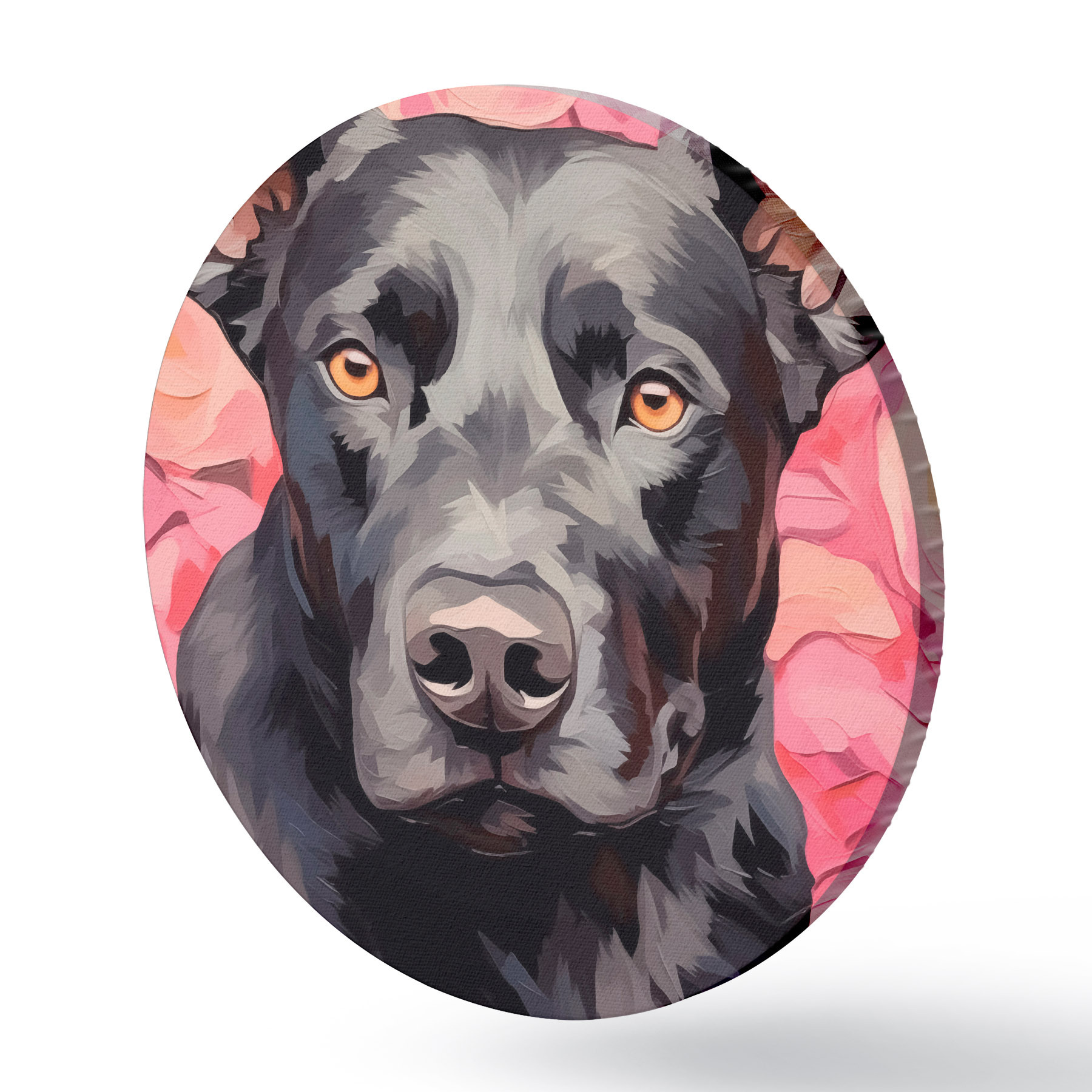 Runde Gemälde Schwarzer Hund auf abstrakte Rosen Hintergrund r44817