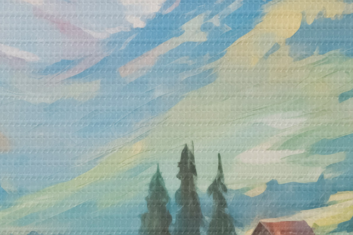 Drei Materialtypen stehen zur Verfügung: Economic Canvas - ein dichtes und haltbares Material für den Digitaldruck, identisch mit Malerleinwand, wasserfeste Oberfläche, realistische Wiedergabe von Details, mittelkörniges Material. Premium Canvas - die Textur ähnelt der einer Malerleinwand (verwobene kleine Fäden). Weiche, detaillierte Wiedergabe des Bildes auf einer matten Oberfläche. Eco-Premium - hochwertiges Gewebe aus 100% Baumwolle. Dank der natürlichen Baumwollfasern ist das Material langlebig und verschleißfest. Hervorragende Farbwiedergabe und Detailtreue.