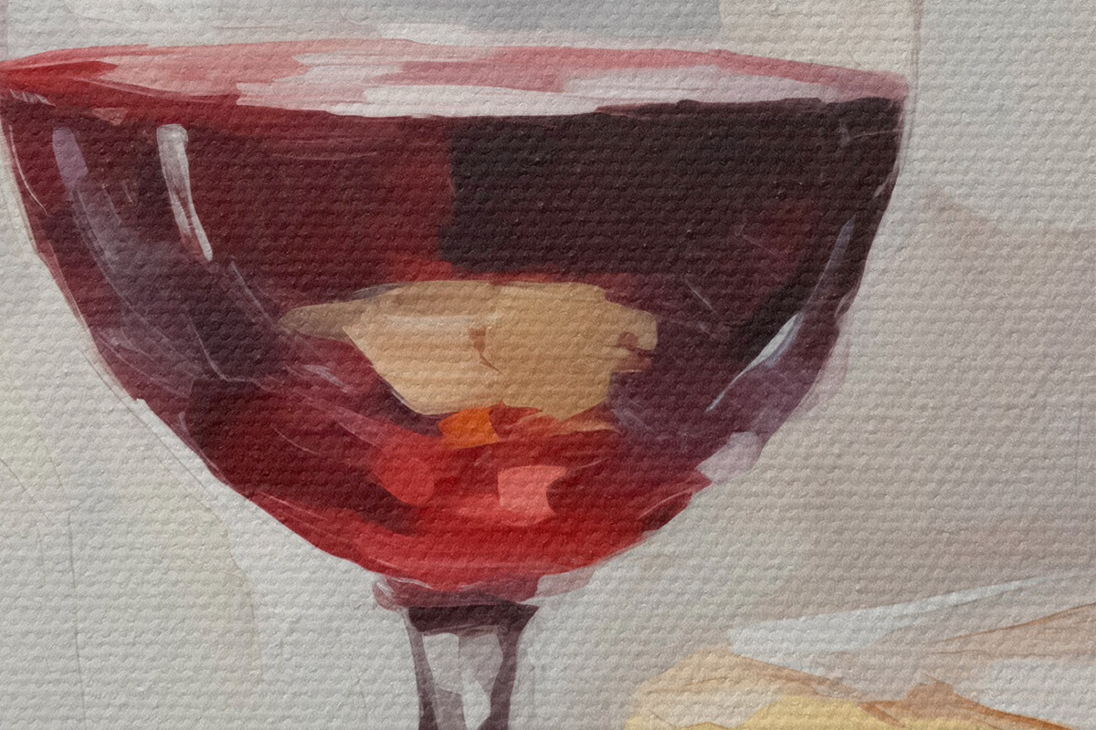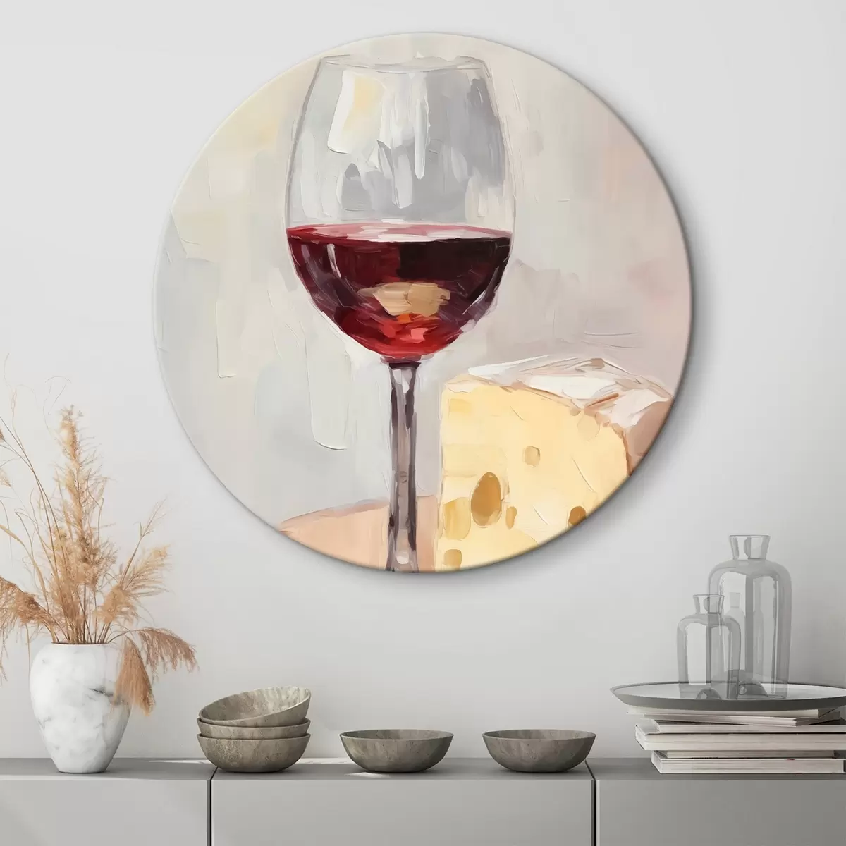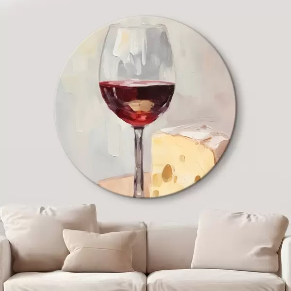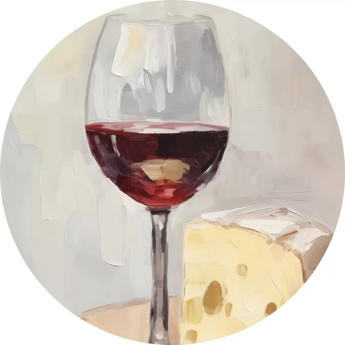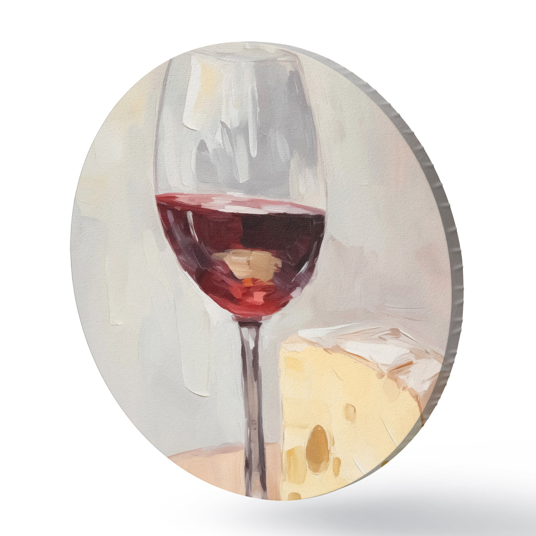 Runde Gemälde Ein Glas Wein beim Käse r44829