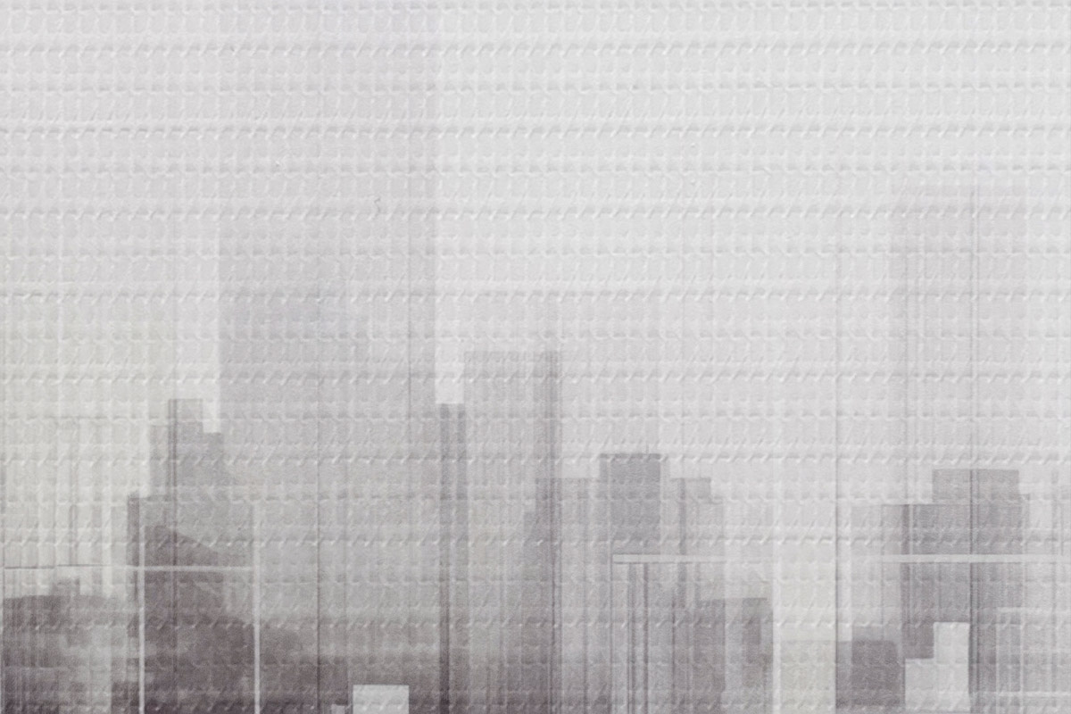 Bild Texturierte minimalistische Stadtlandschaft mit hohen Gebäuden und Wolkenkratzern, die sich gegen einen weißen Himmel abheben Nr r44863
