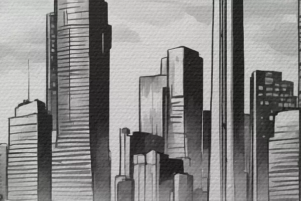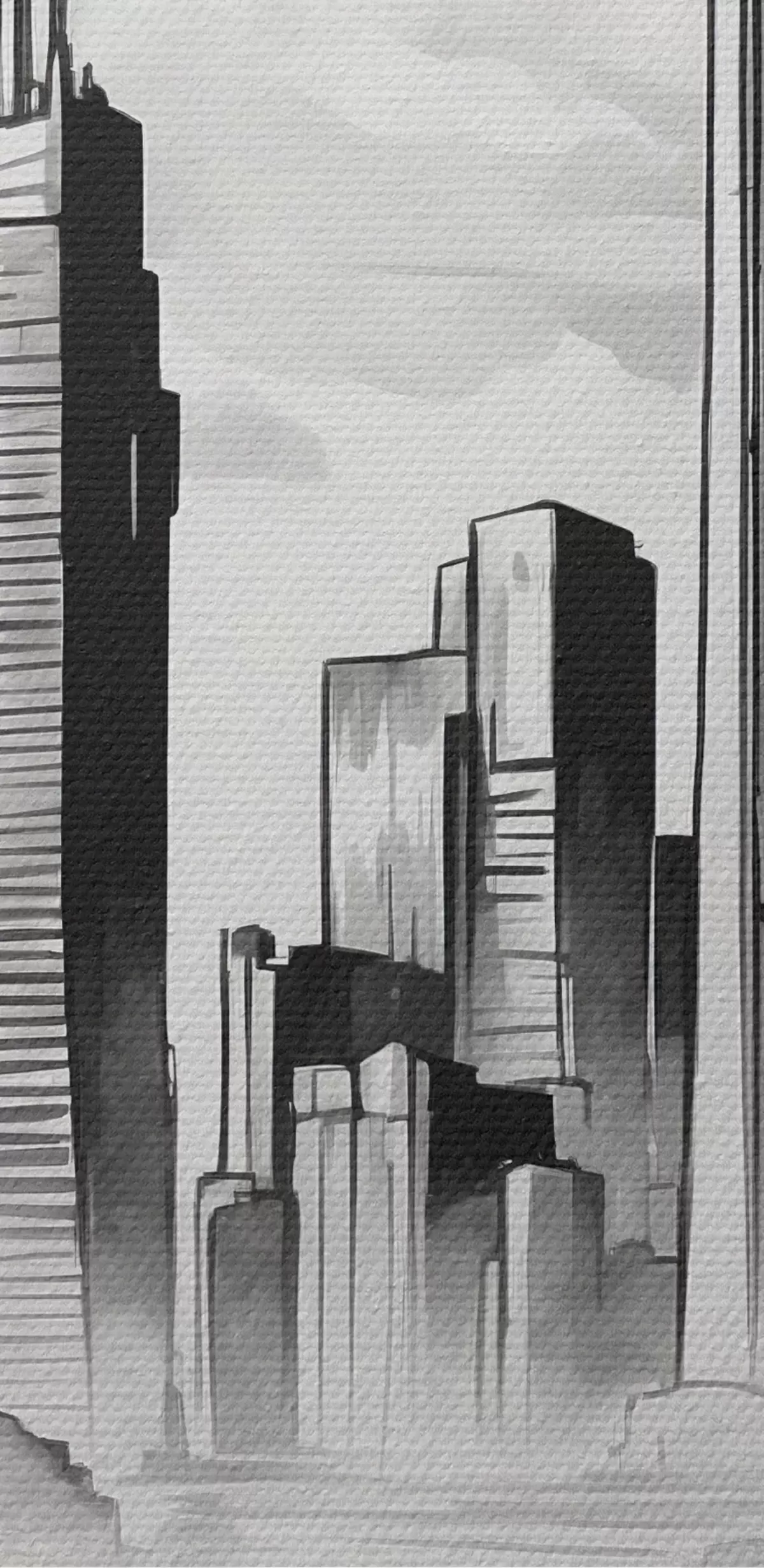 Bild Retro-Auto auf dem Hintergrund der monochromen Stadt mit Wolkenkratzern Nr r44871