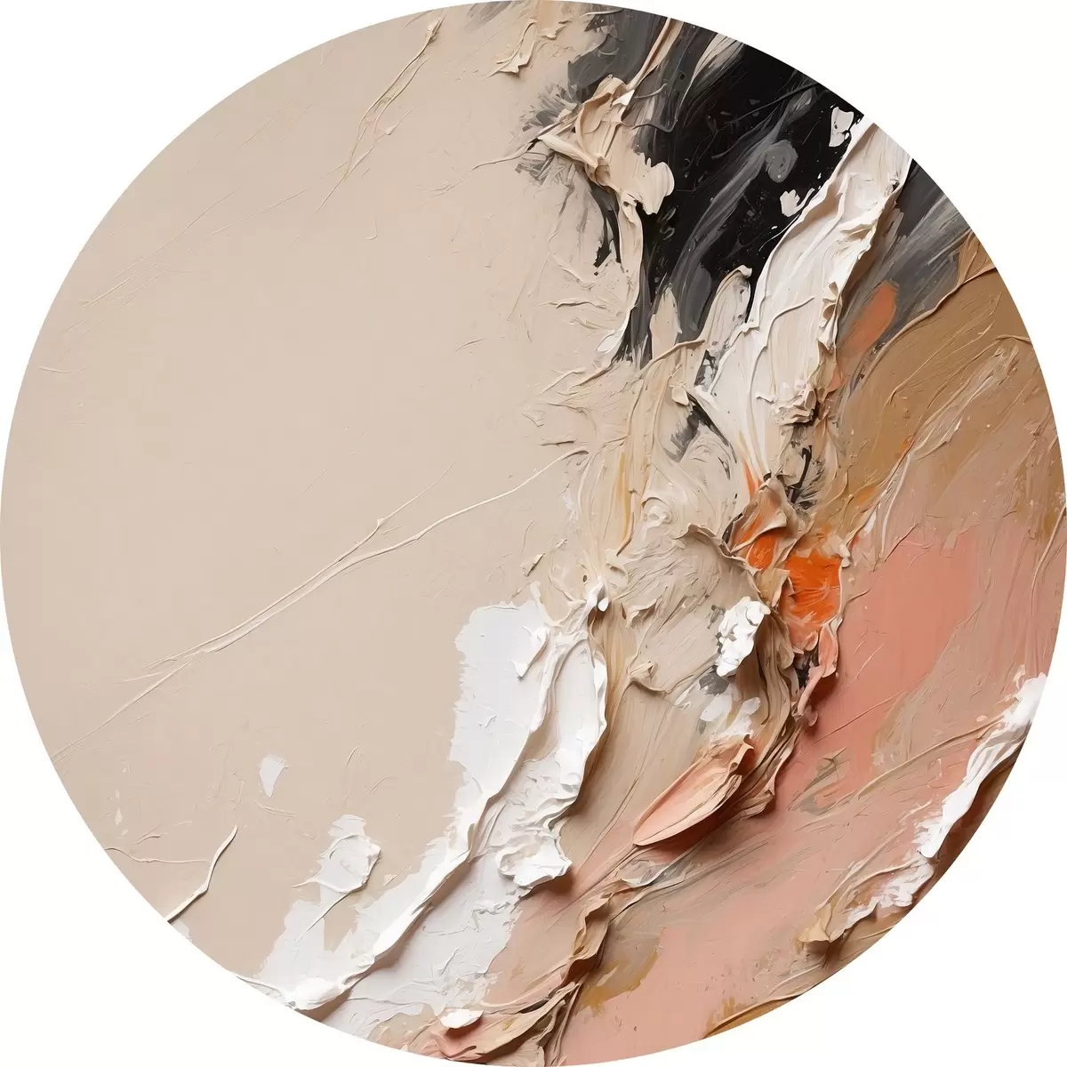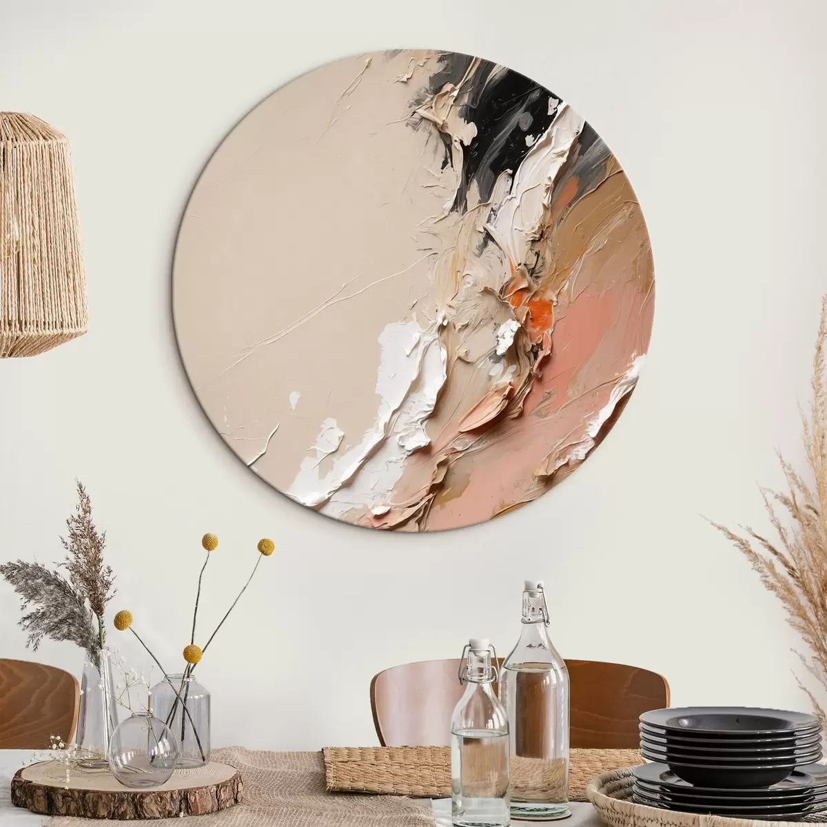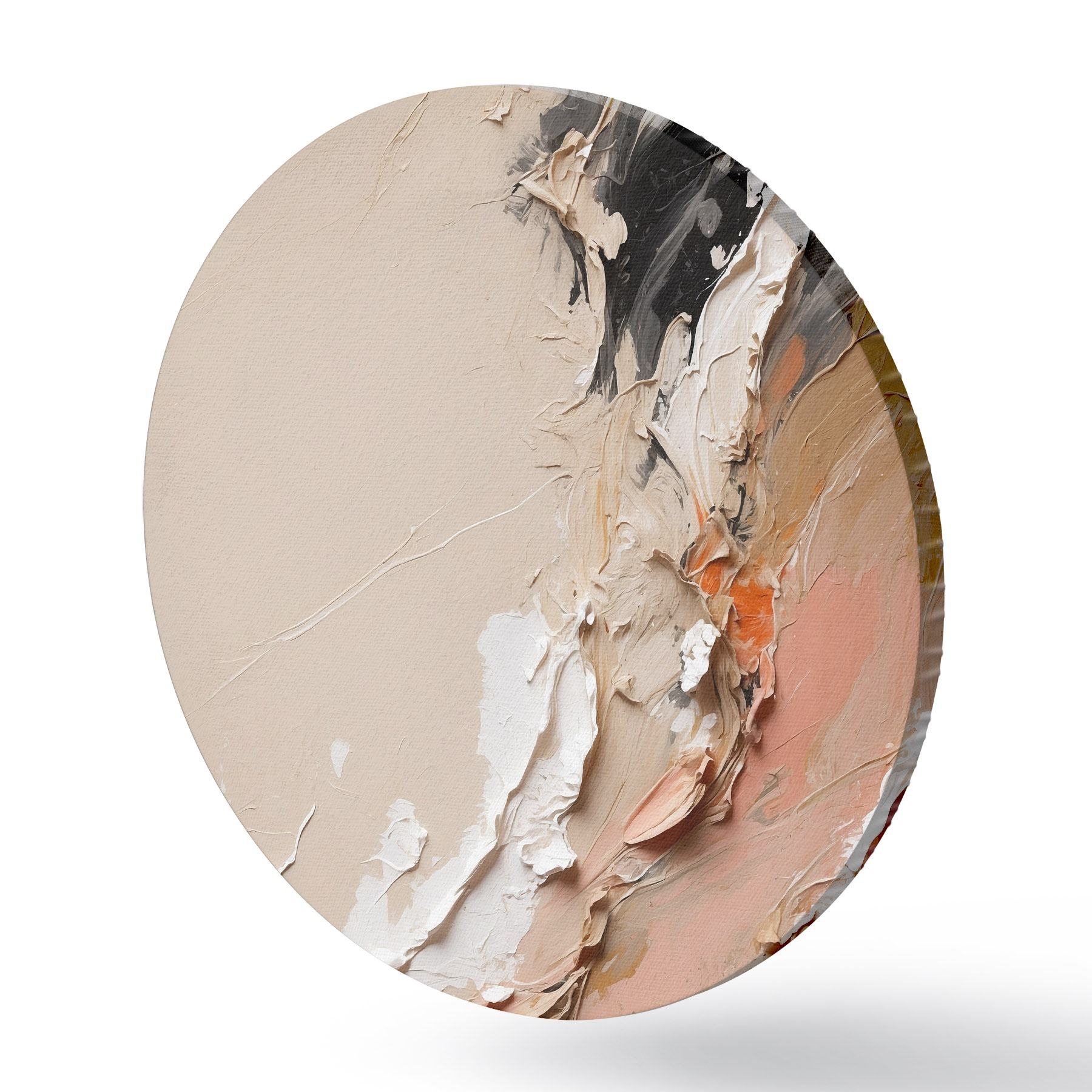 Runde Gemälde Beige-schwarze Abstraktion mit Akzenten in Rosa und Weiß r44875