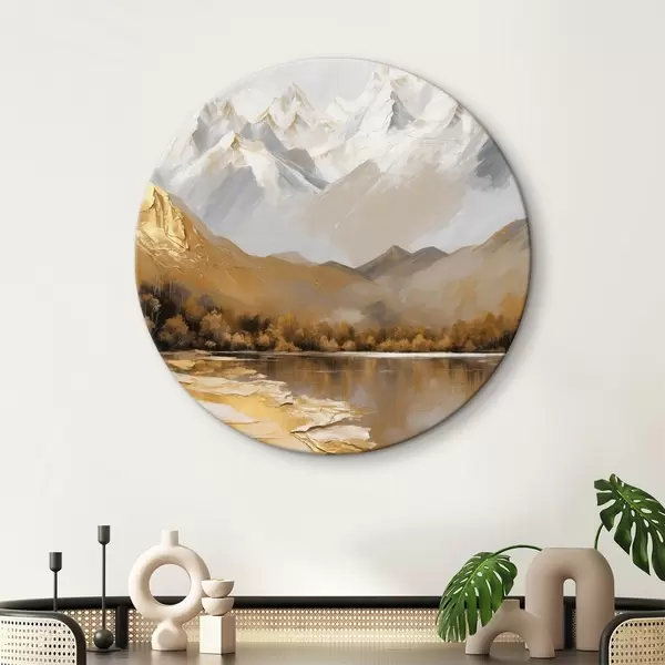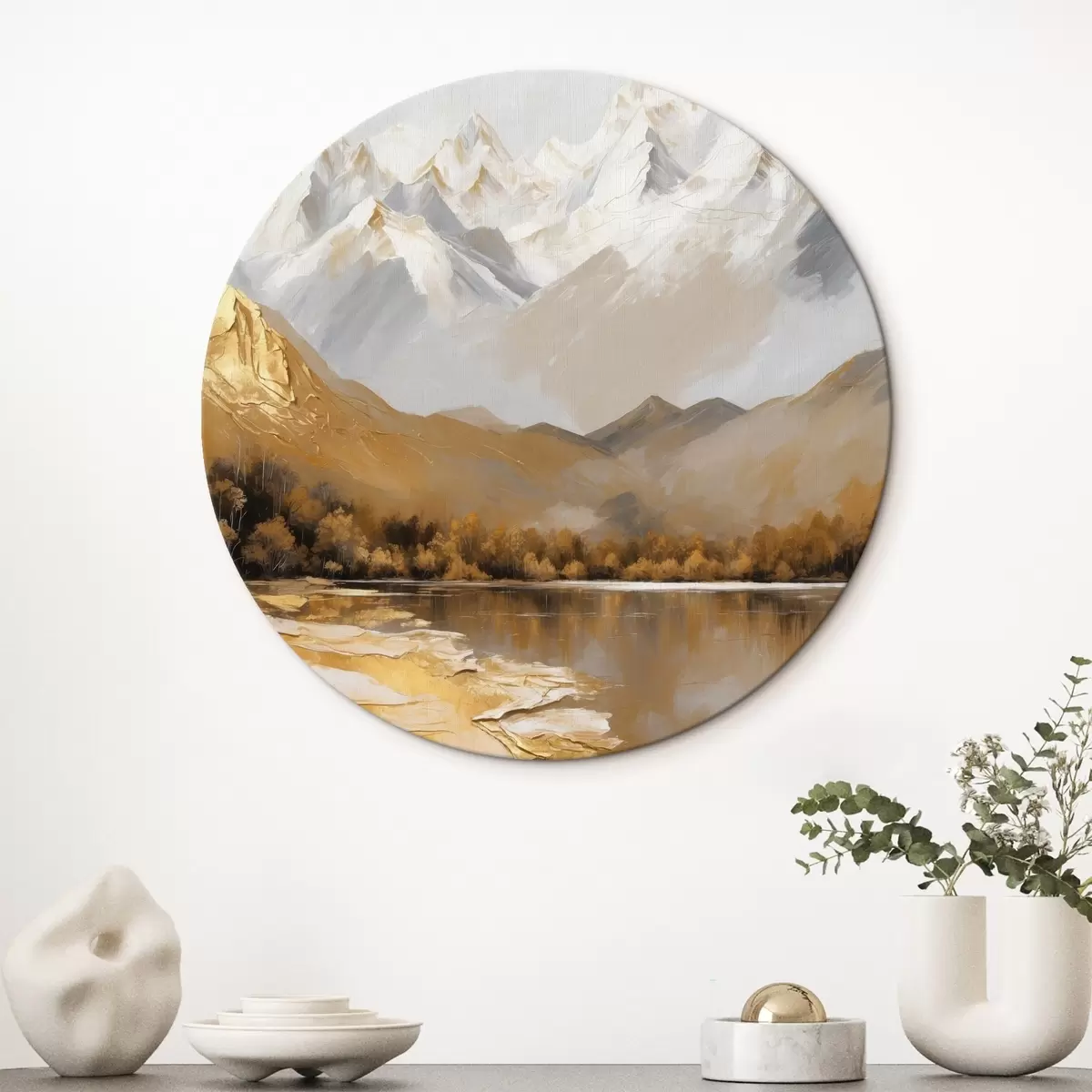 Runde Gemälde Berglandschaft mit einem See in warmen Farben r44877