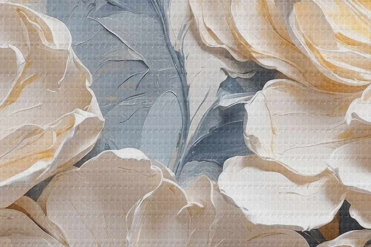 Bild Volumetrische cremefarbene Pfingstrosen auf einem hellblauen Hintergrund Nr r44880