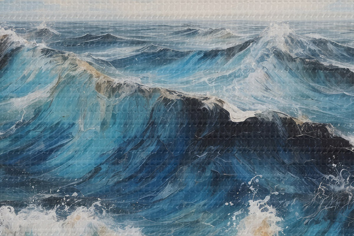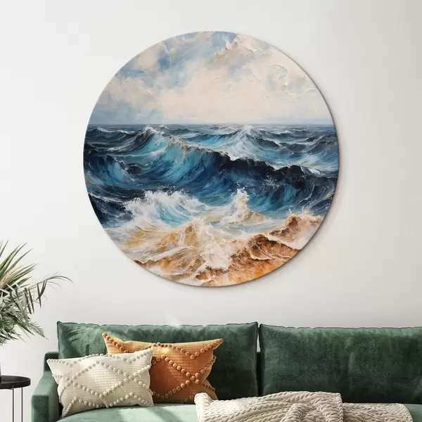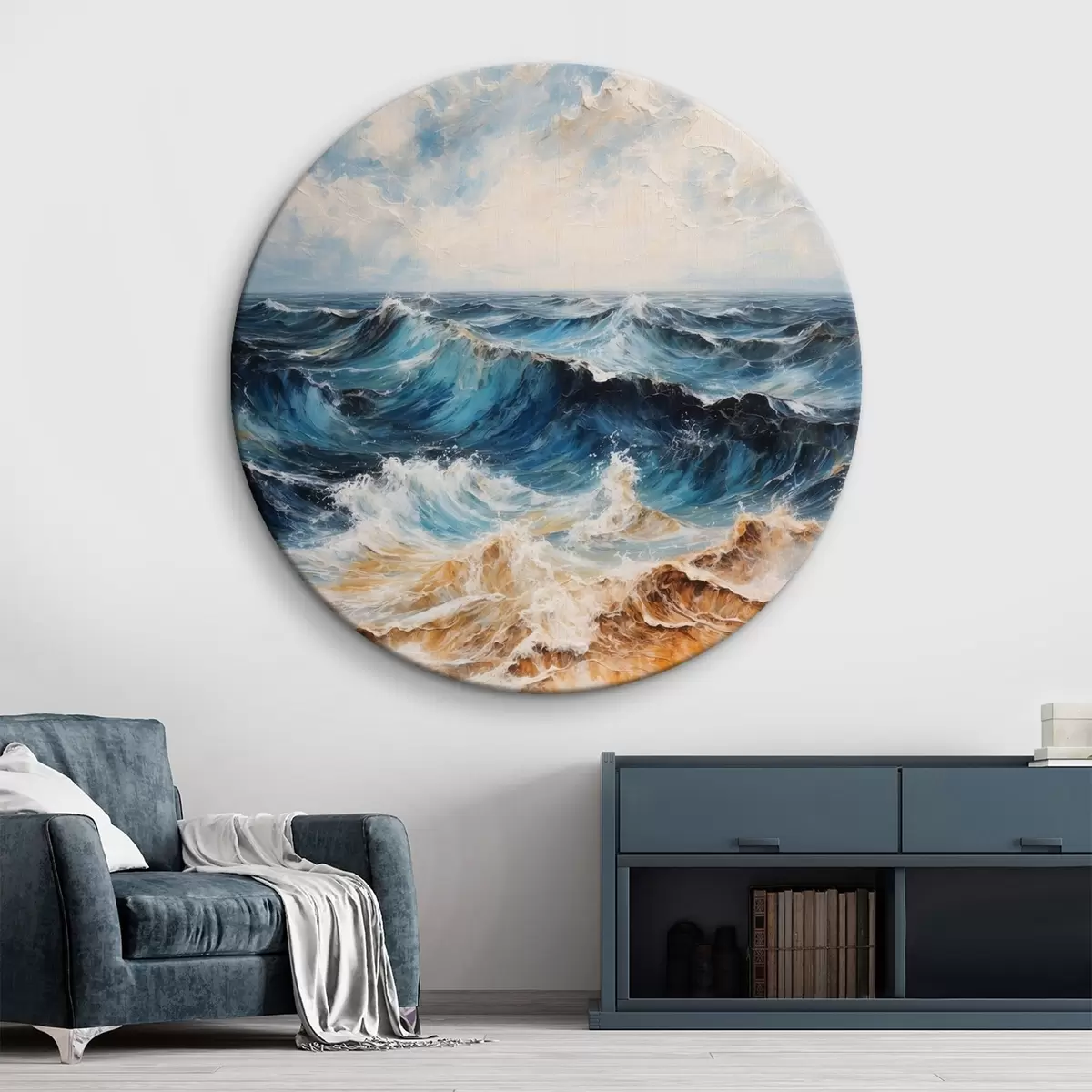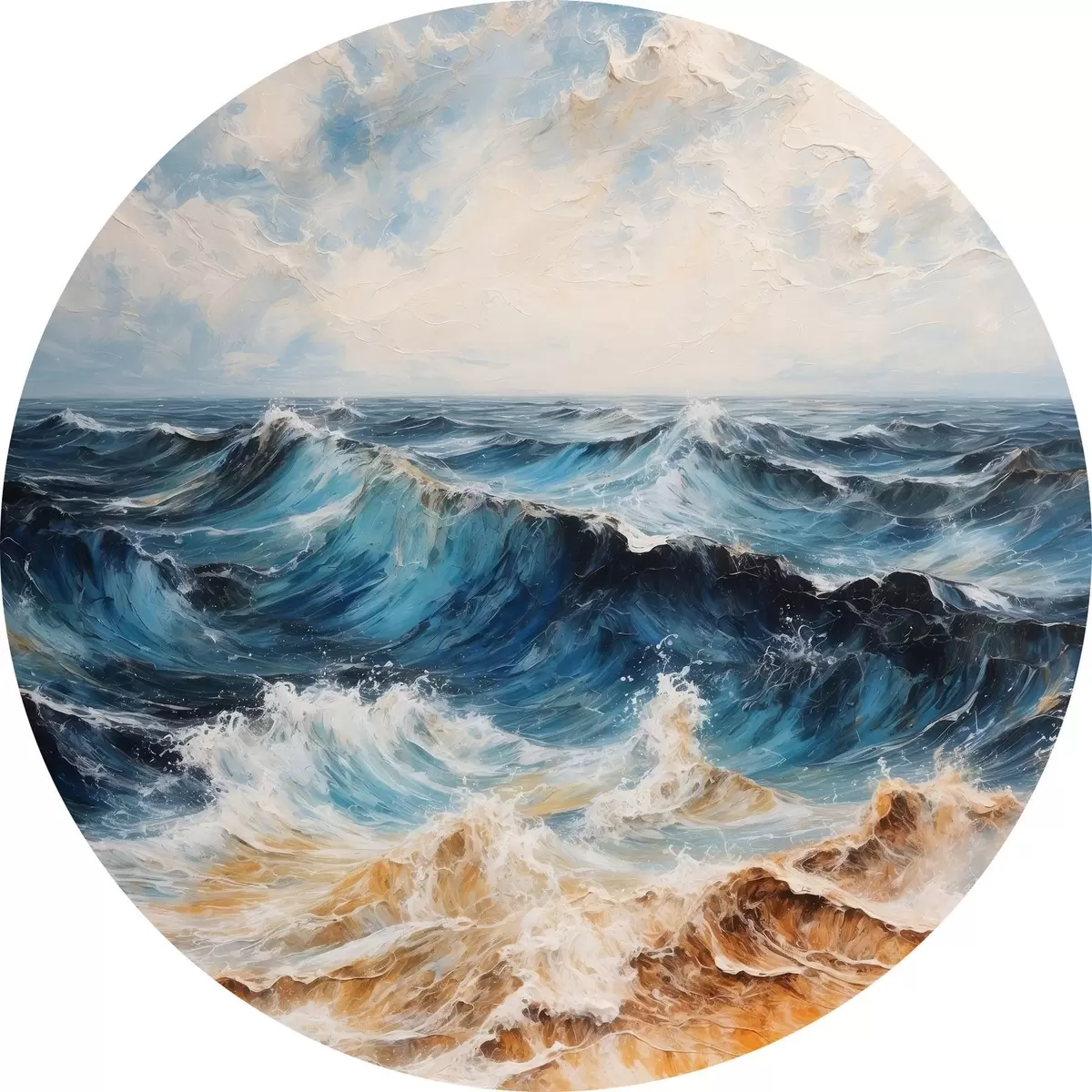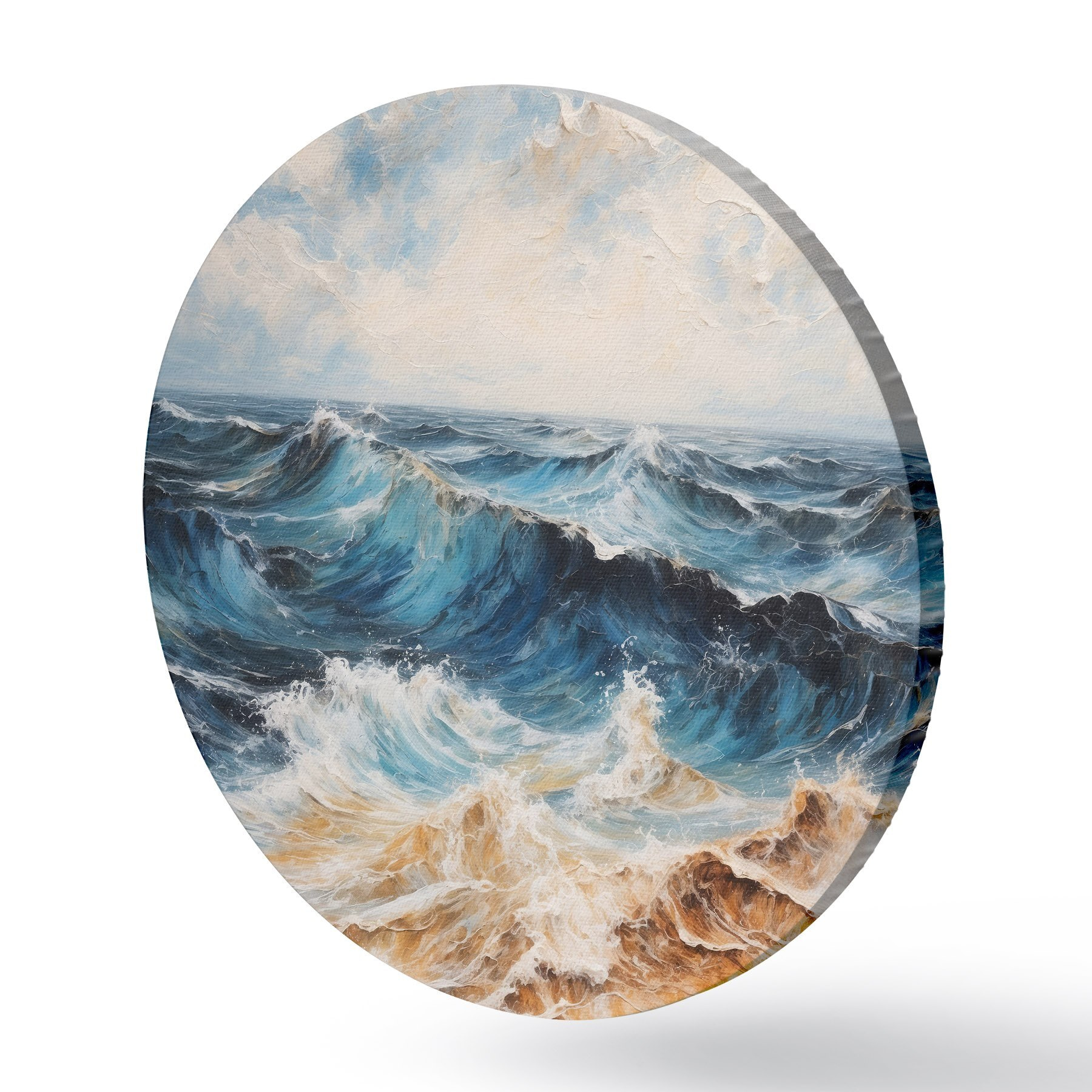 Runde Gemälde Raue See mit Wellen unter einem klaren Himmel r44881
