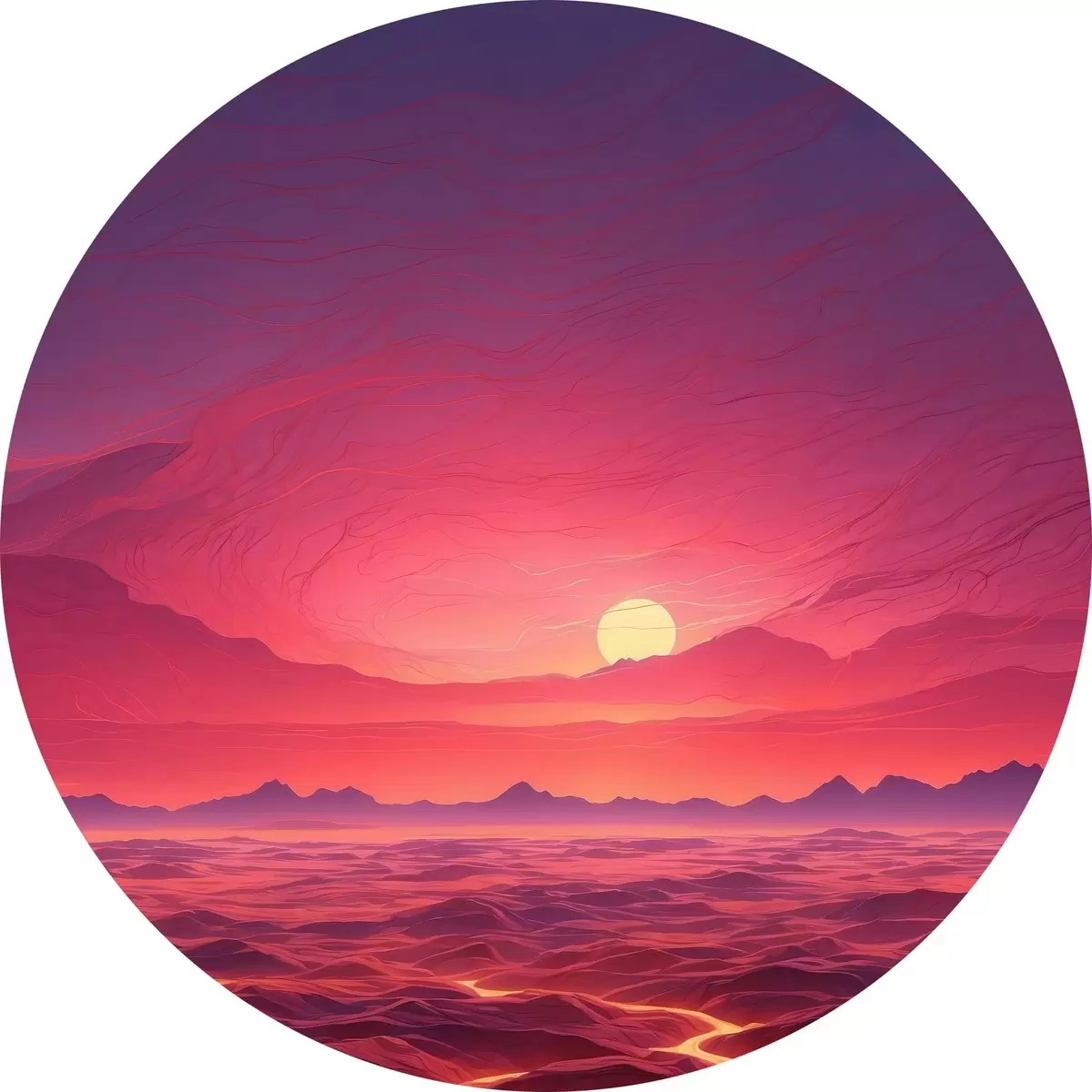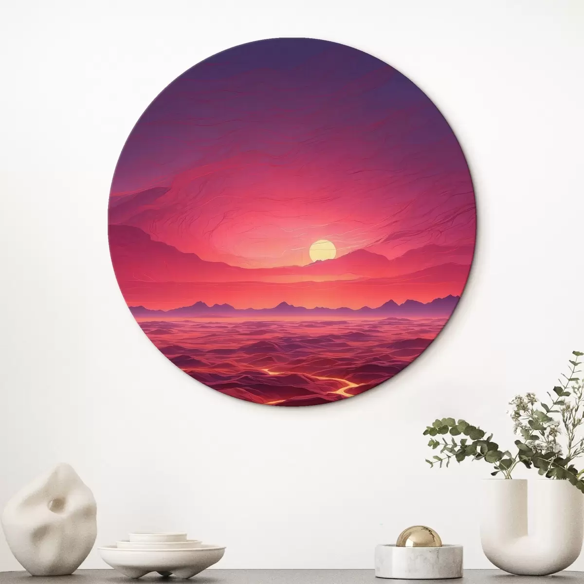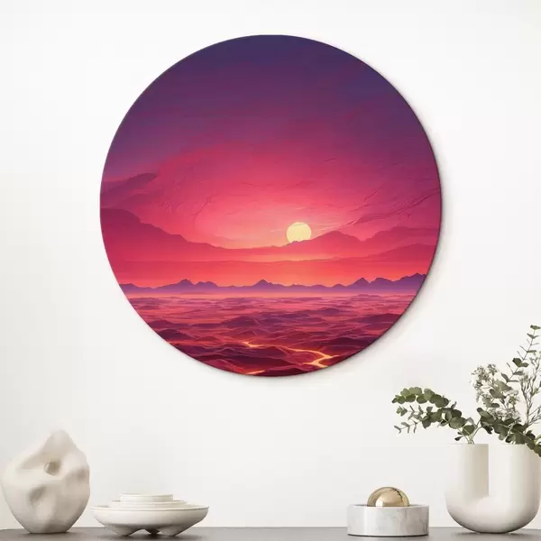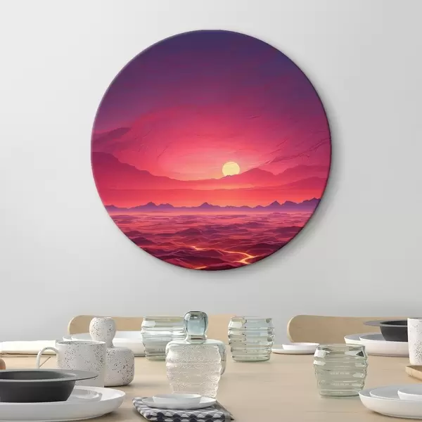 Runde Gemälde Heiße Landschaft mit Lavaströmen unter einem roten Himmel r44886