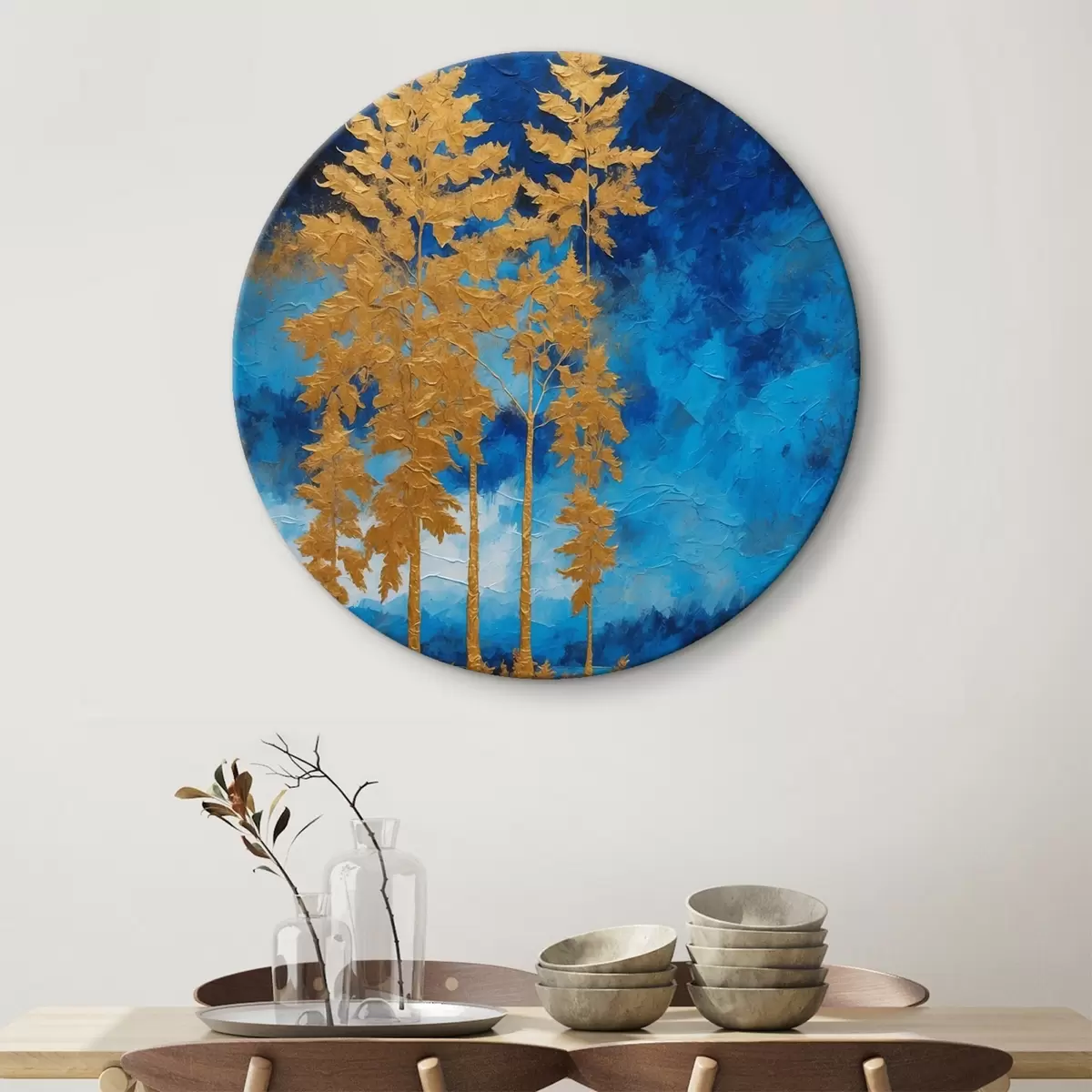 Runde Gemälde Bäume auf dem Hintergrund des Nachthimmels in Blautönen r44888