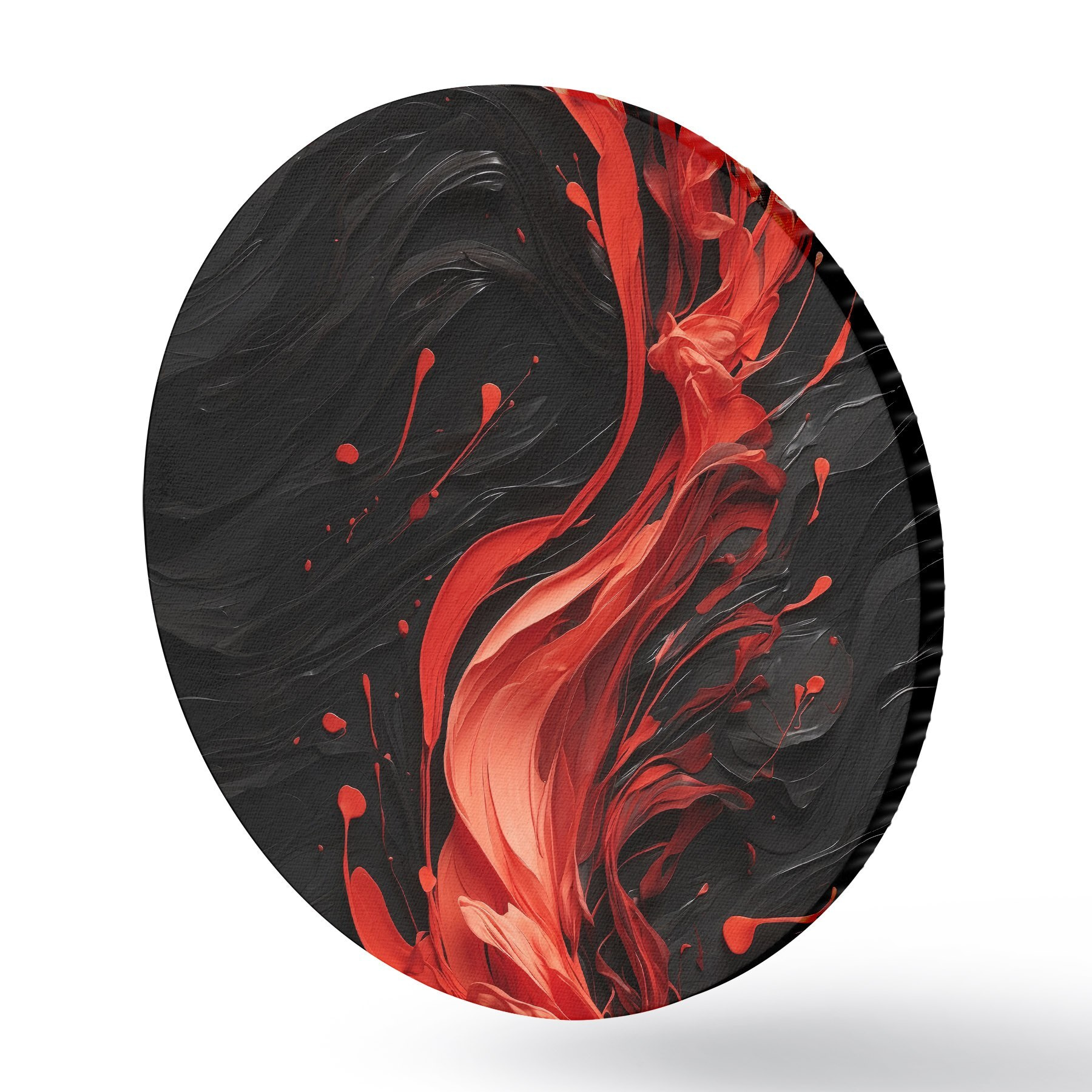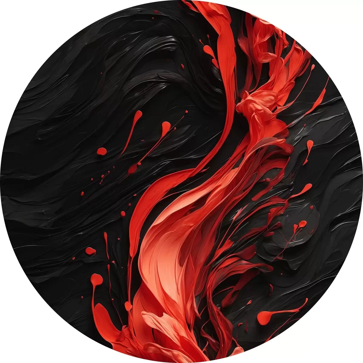 Runde Gemälde Roter Farbstrahl auf schwarzem abstraktem Hintergrund r44889