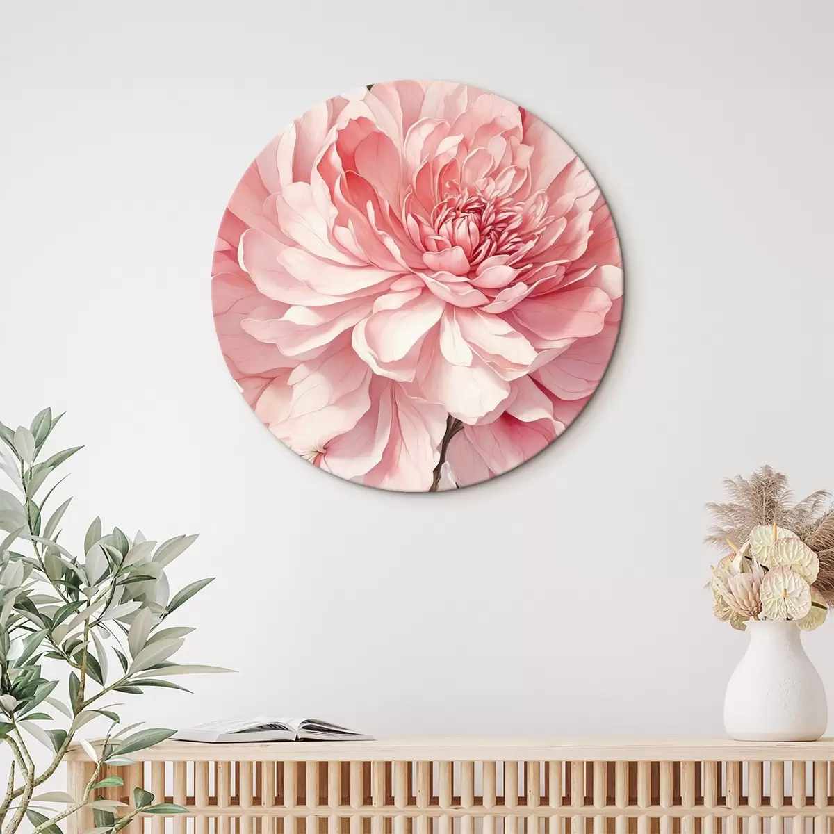 Runde Gemälde Rosa Pfingstrose Nahaufnahme mit weicher Beleuchtung r44891