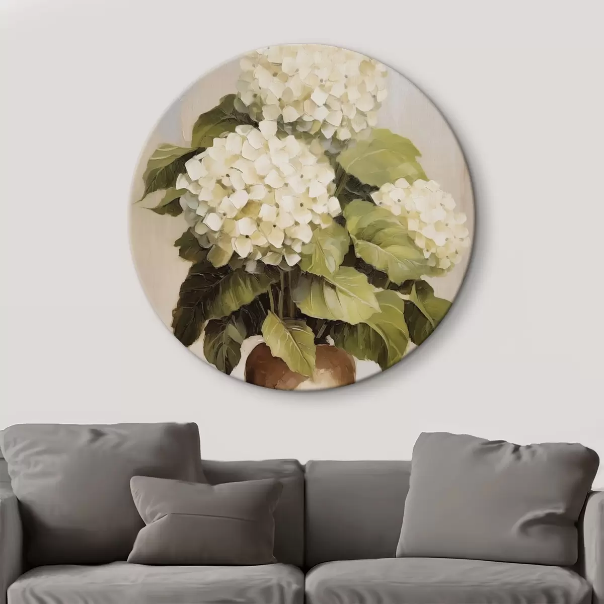 Runde Gemälde Hortensien in einer Vase r44907